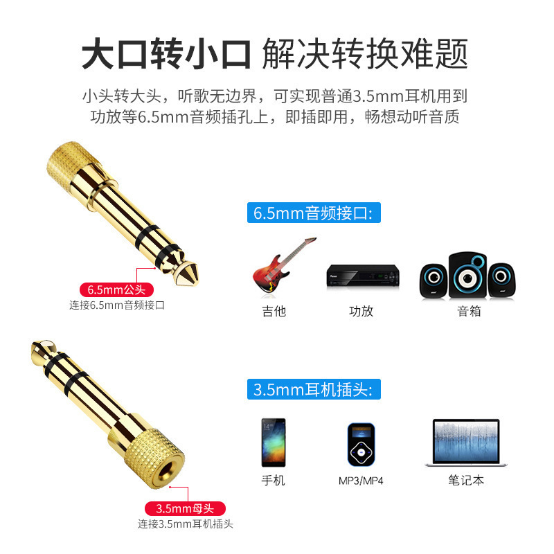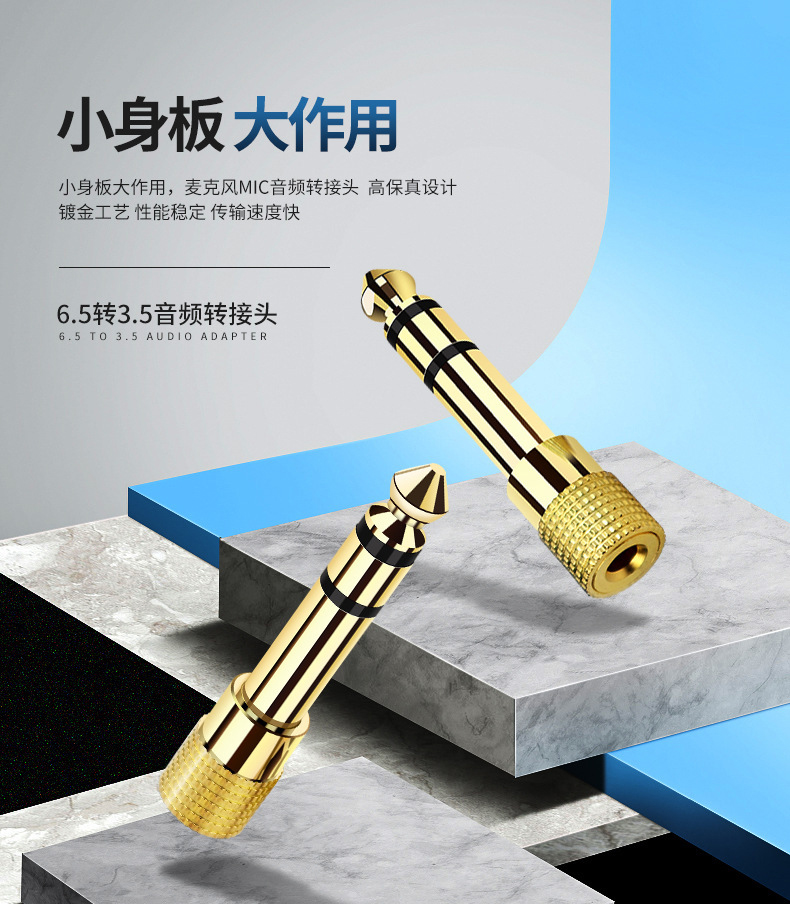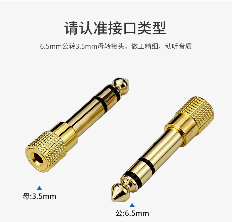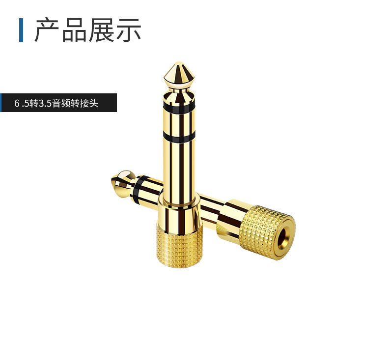 严选镀金耳机话筒转接头6.5转3.5音频插头6.5mm公对3.5mm母转接头1个