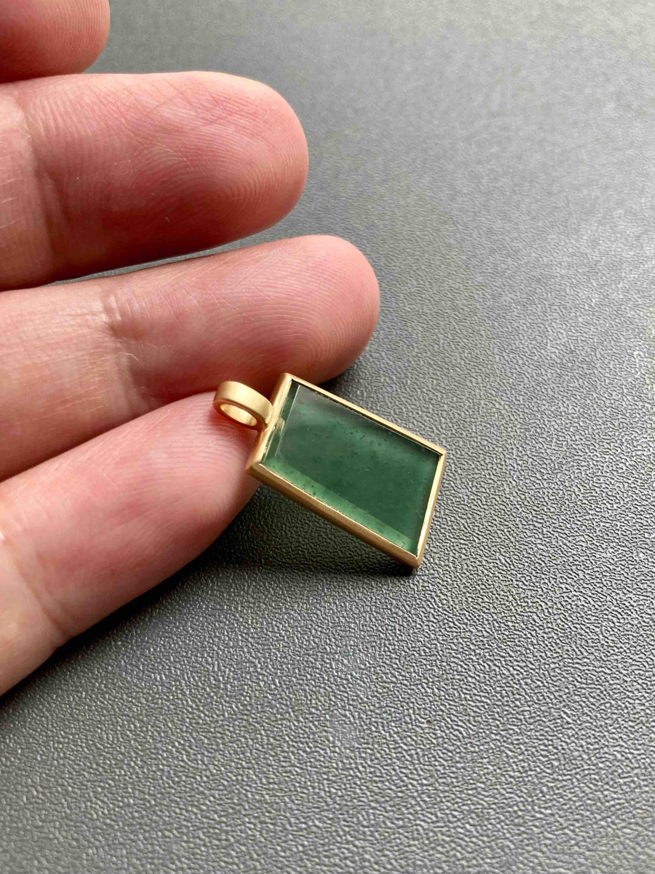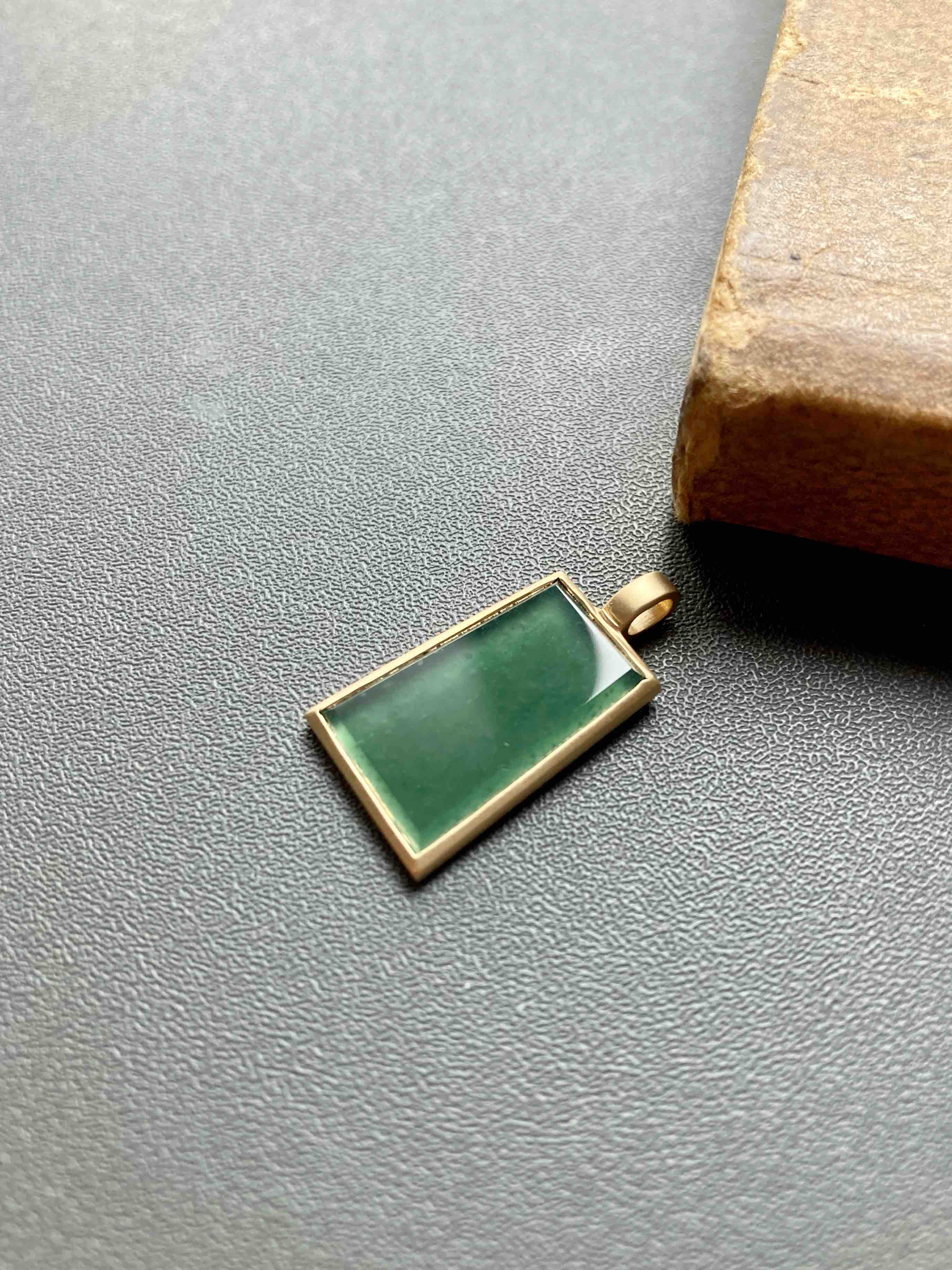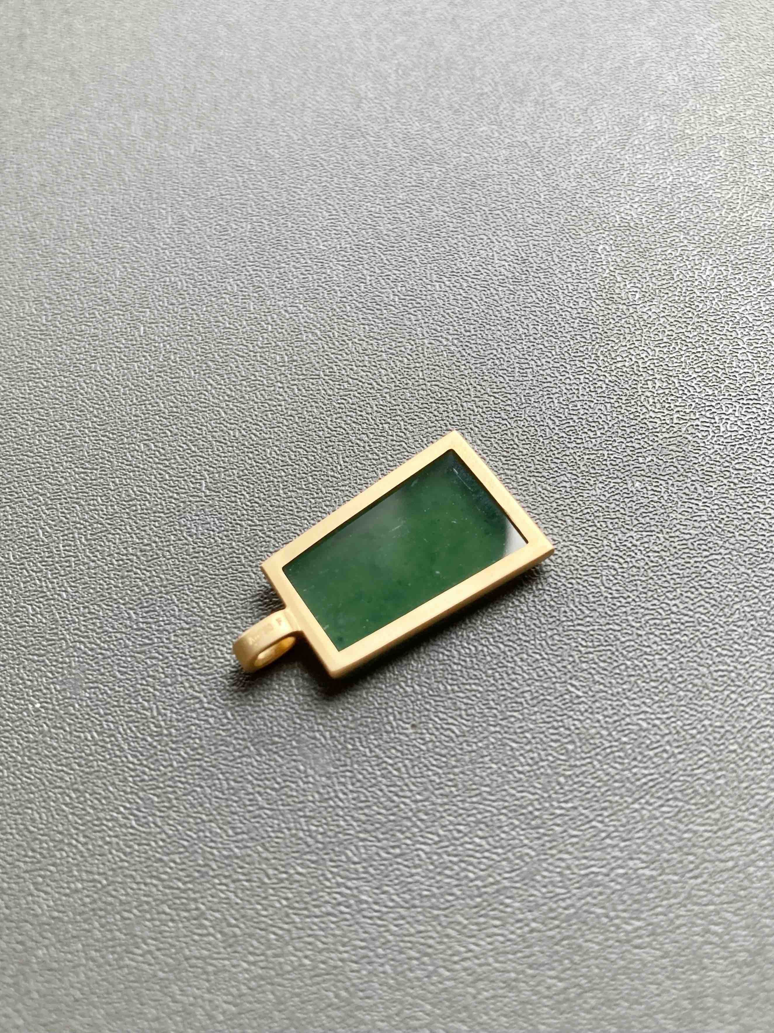 稀有的高冰种晴水绿翡翠平安无事牌,保平安之物,种水晶莹剔透,荧光四射,绿色漂亮,种气极老,雪花棉,18k黄金镶嵌,磨砂质感,时尚简约,日常百搭,超划算,只要小四价位,镶嵌后22×12×3.5mm