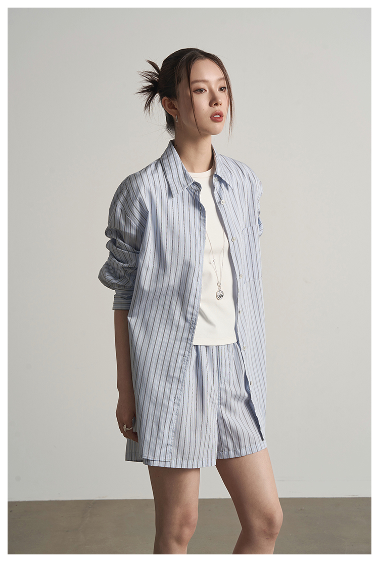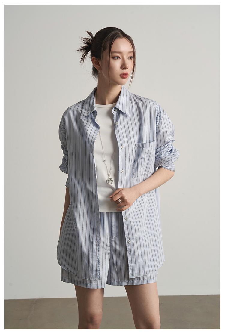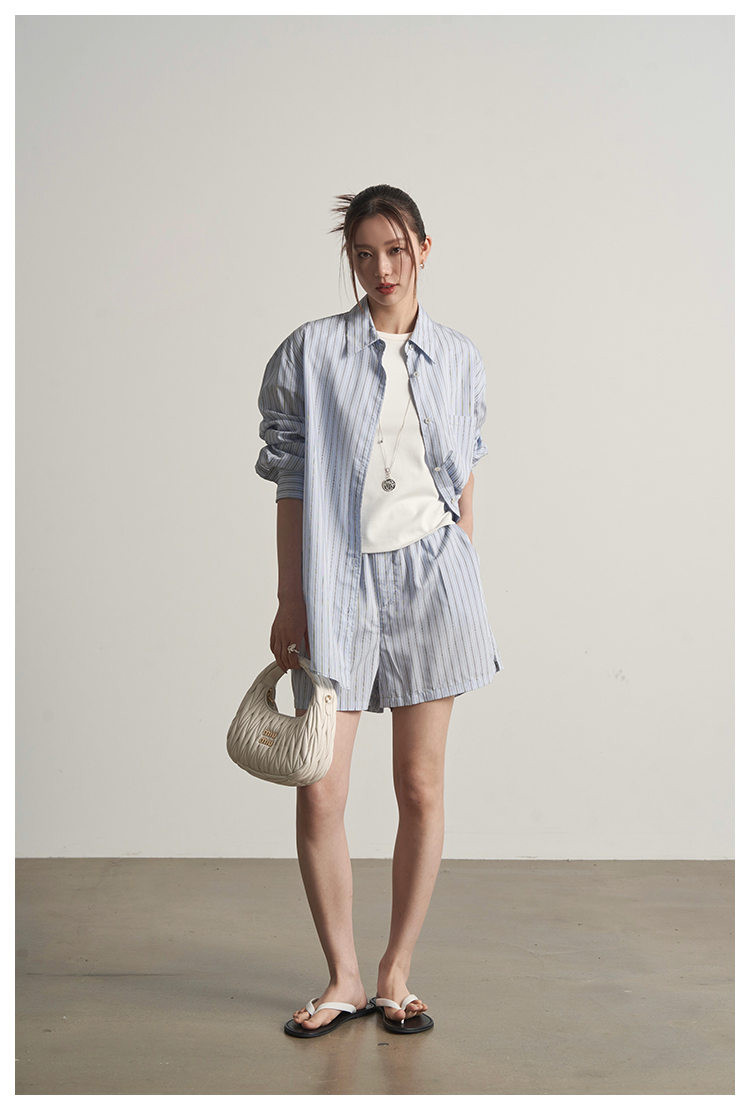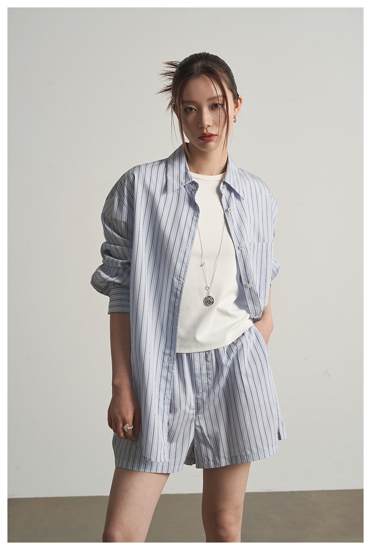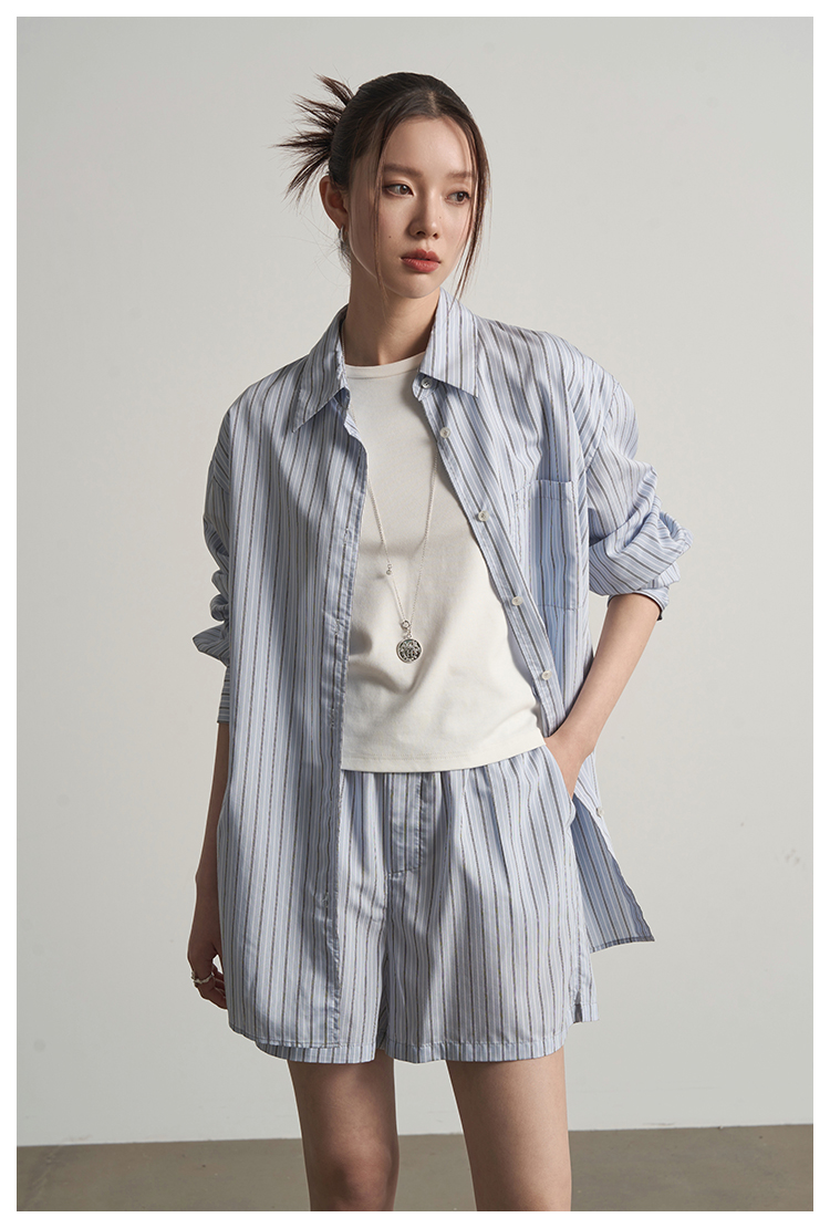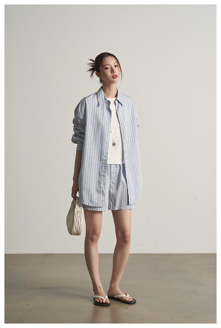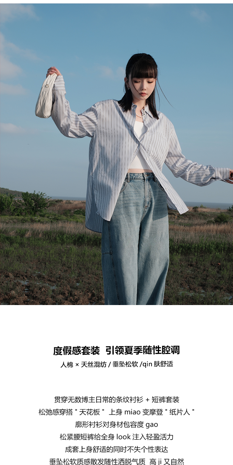 UMILAB【日光】休闲轻度假人棉+天丝垂坠呼吸感衬衫套装E183H