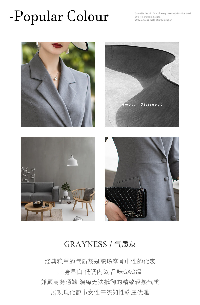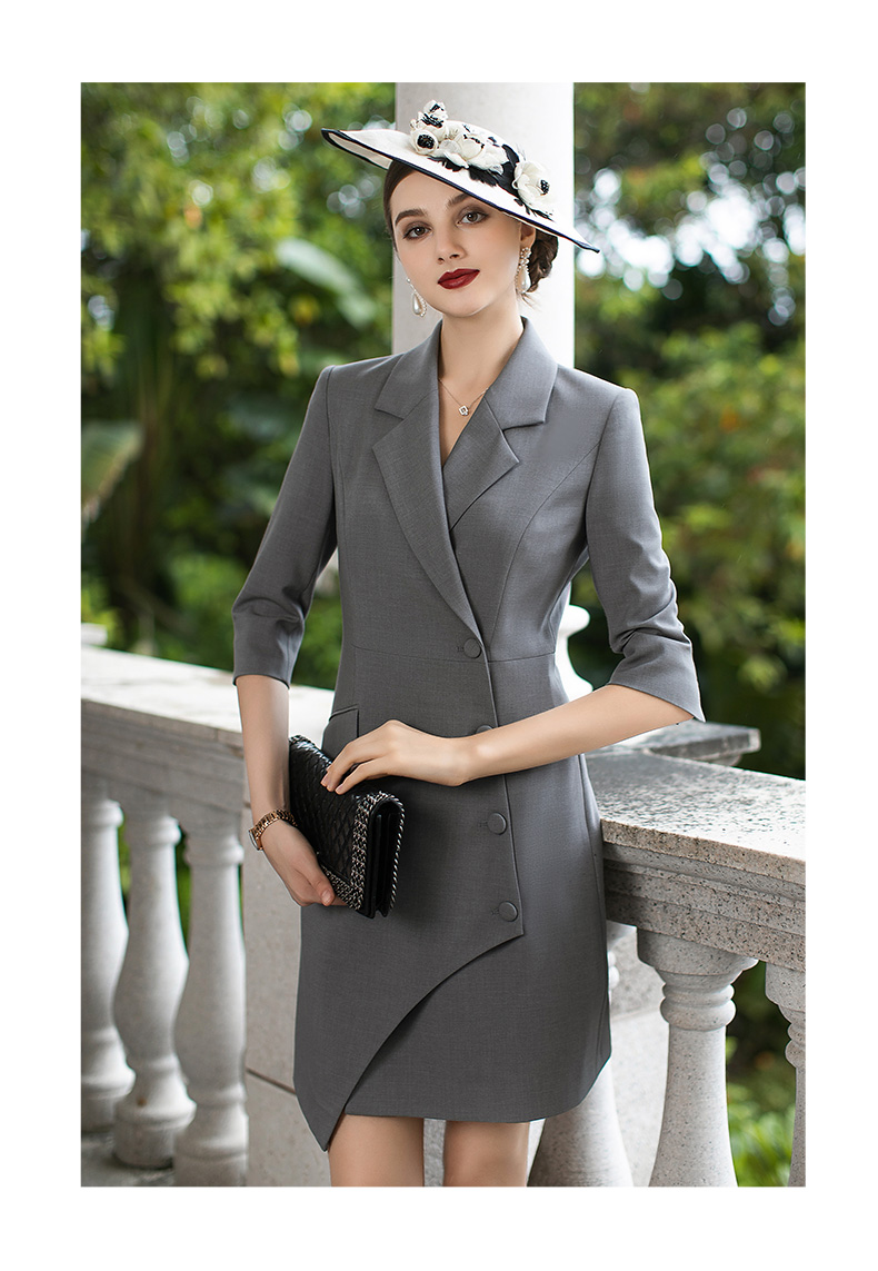 AD高级感灰色西装连衣裙女设计感小众不规则A字裙时尚垫肩西服裙
