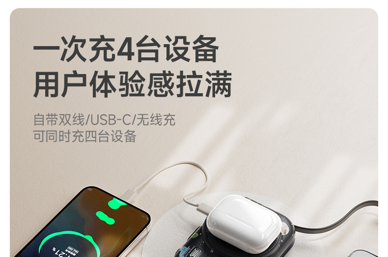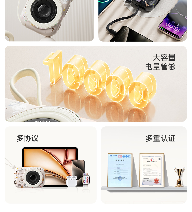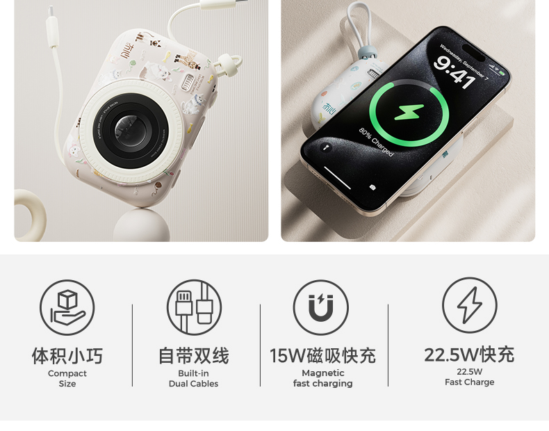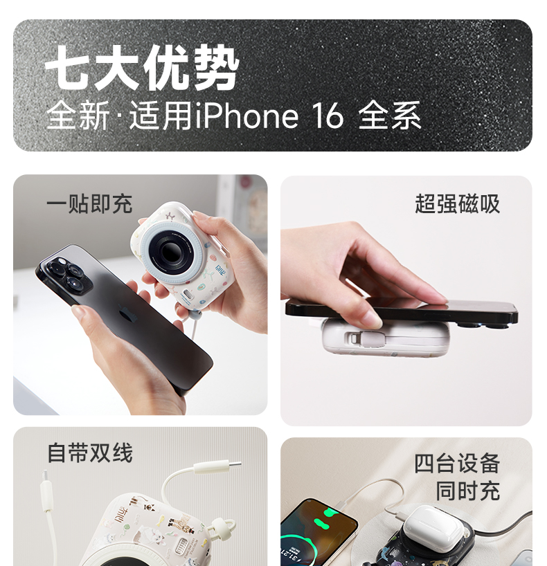 FXQ【3C认证充电宝10000mAh可上飞机】双线磁吸无线充电移动电源适用小米苹果17全系+安卓通用