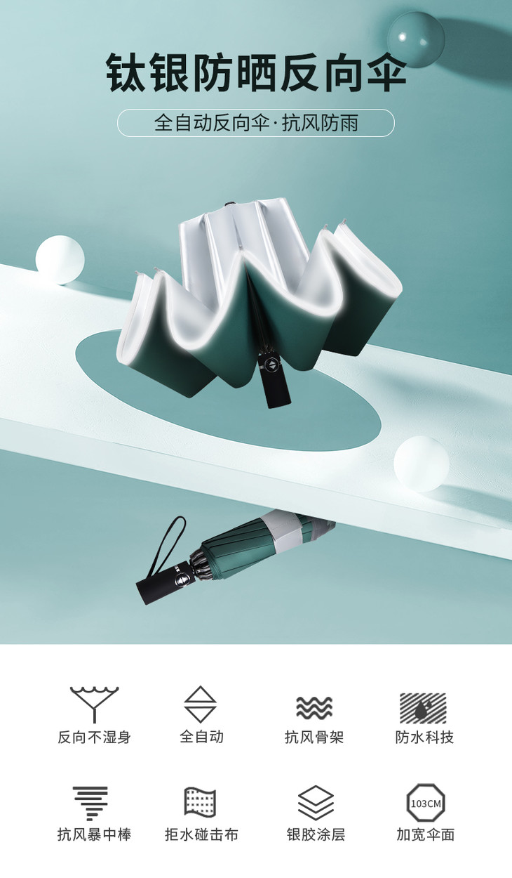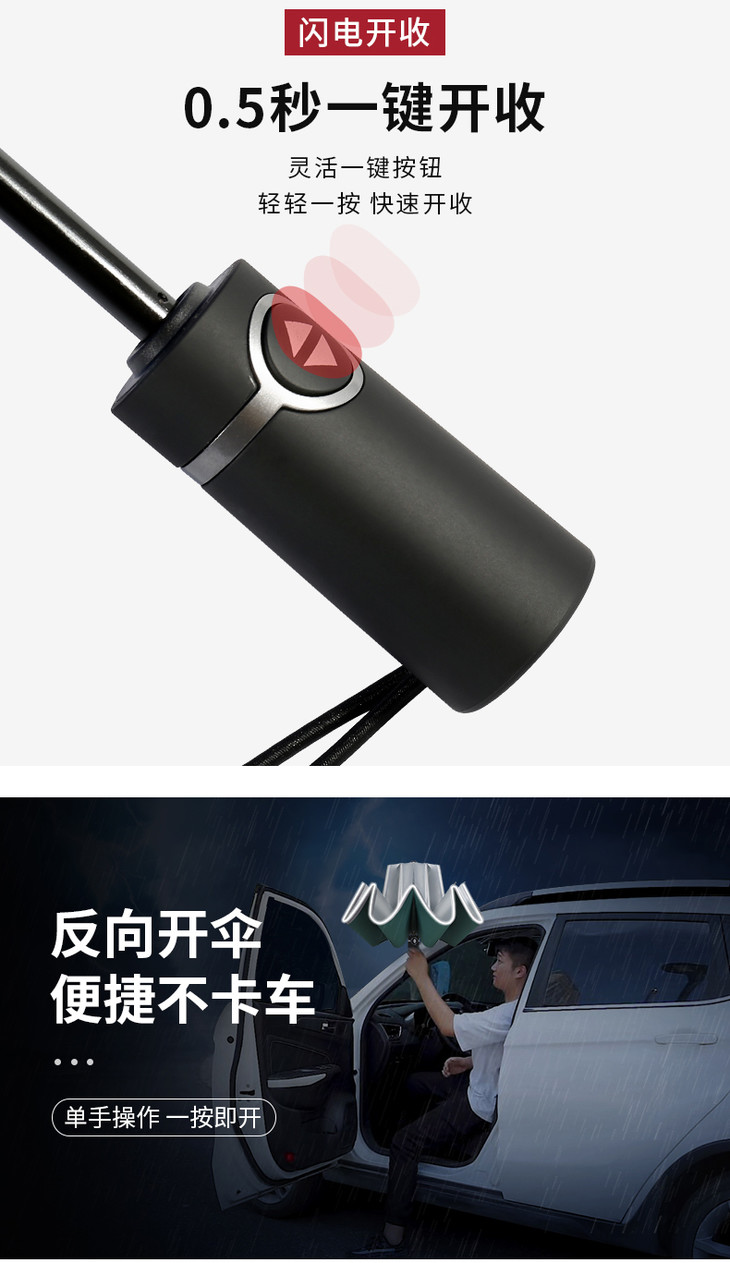 Ins全自动钛银胶太阳伞 车载反向款 晴雨两用科技涂层有效阻隔99%紫外线 热卖