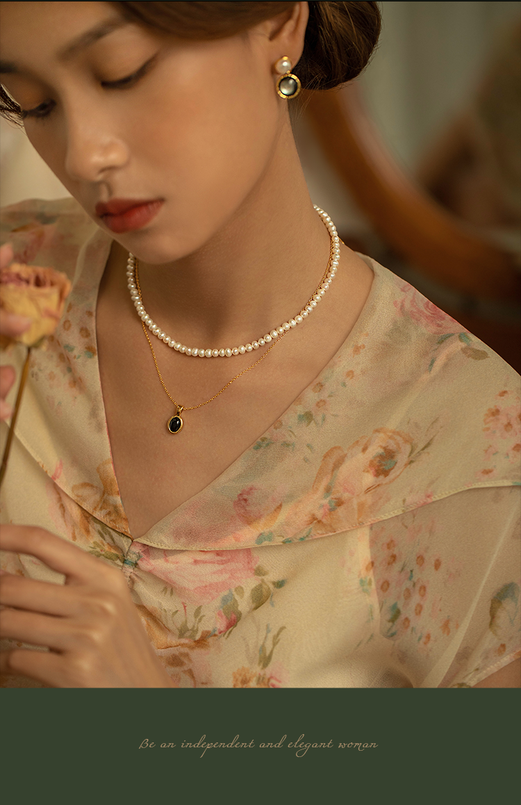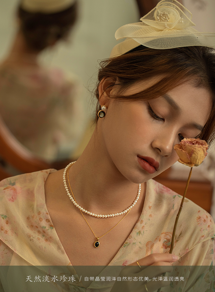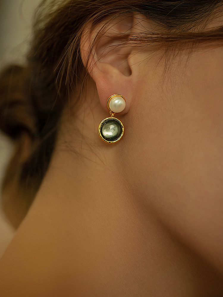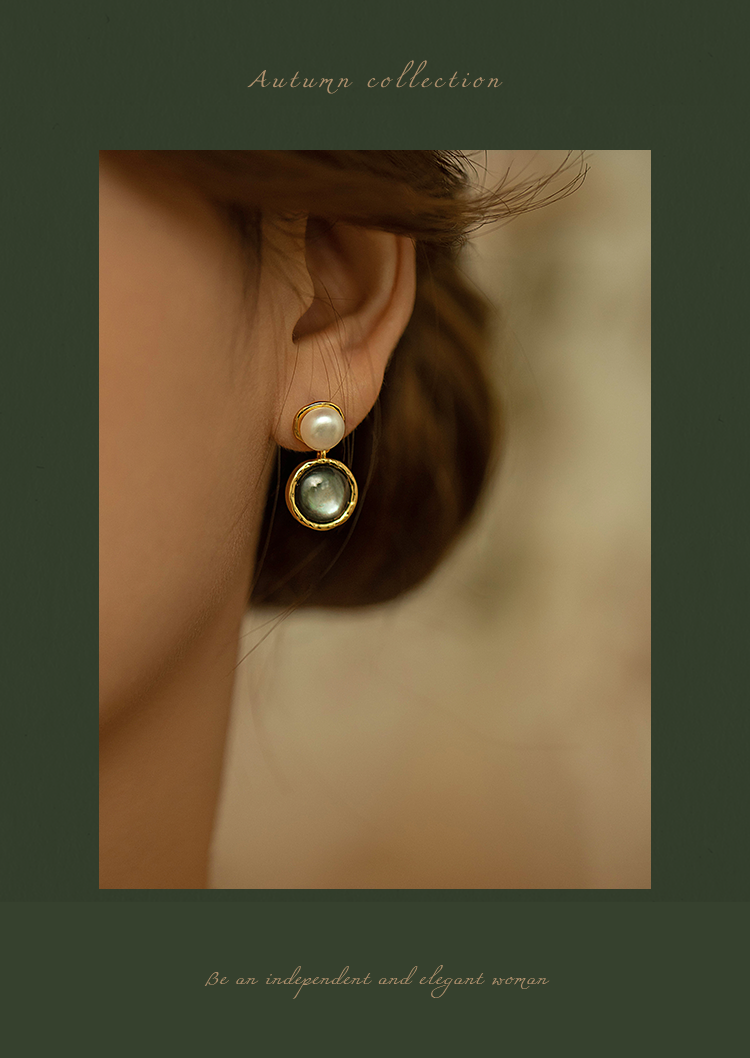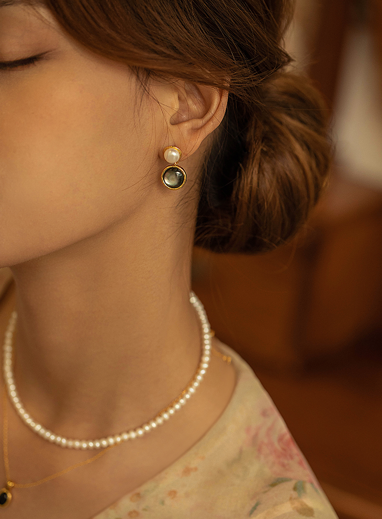 Oflye潮流饰品 气质猫眼石吊坠珍珠耳环小众复古轻奢耳钉新款饰品女潮