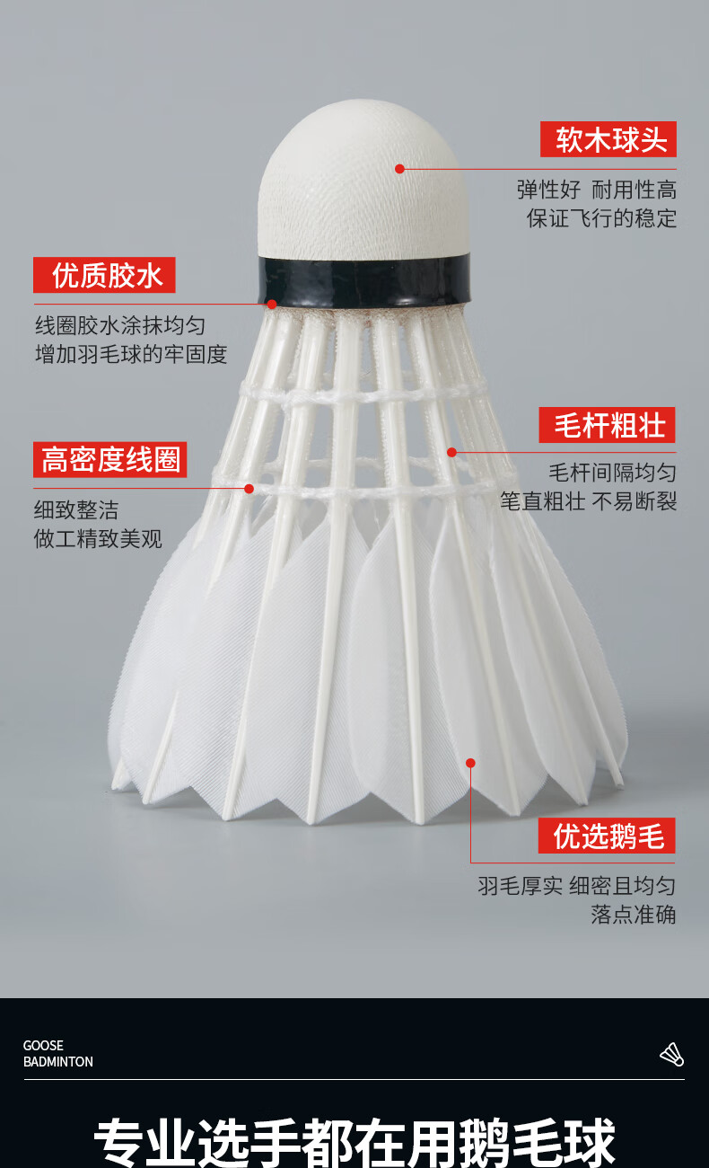 飞羽 羽毛球 比赛级 优质鹅毛 红羽-G2000