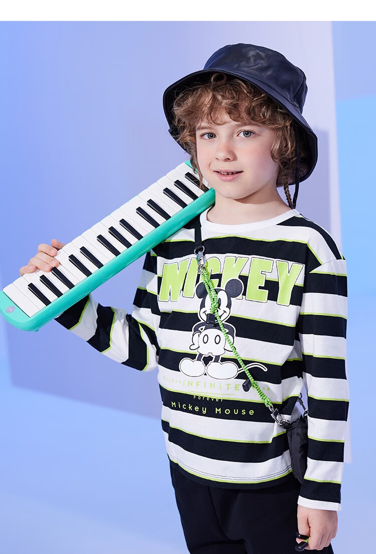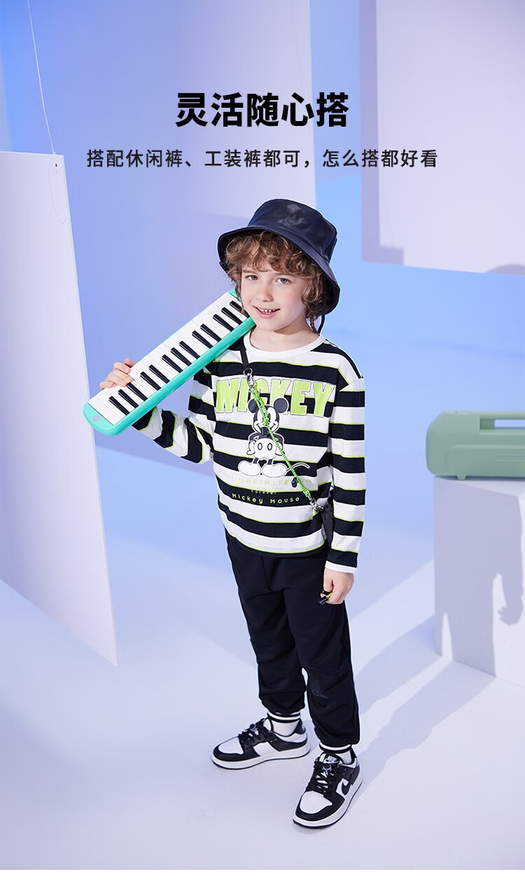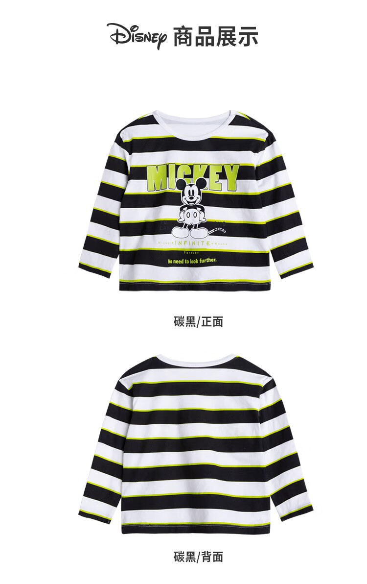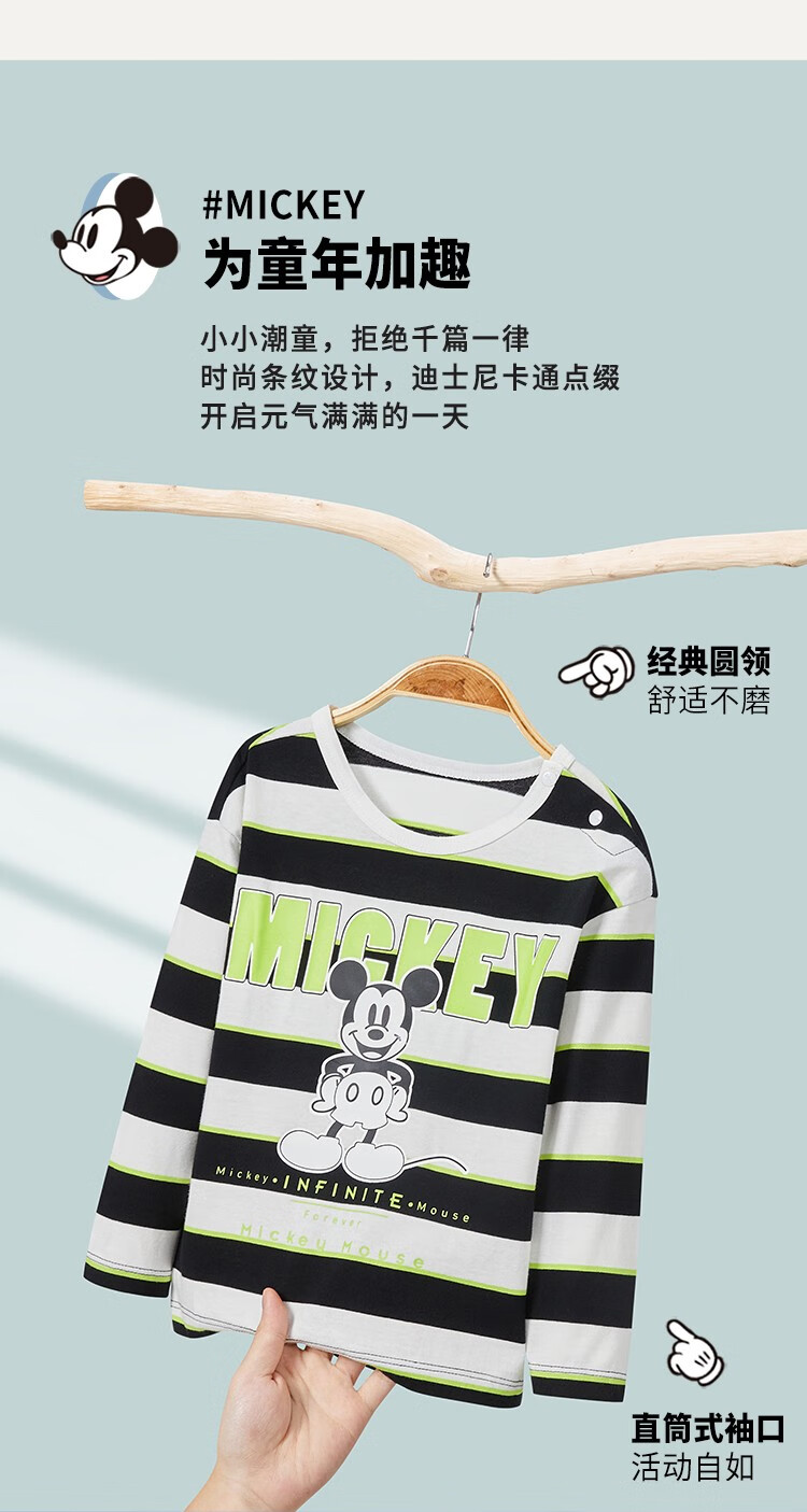 迪士尼童装秋季新品男童潮流条纹长袖儿童时尚内搭T恤