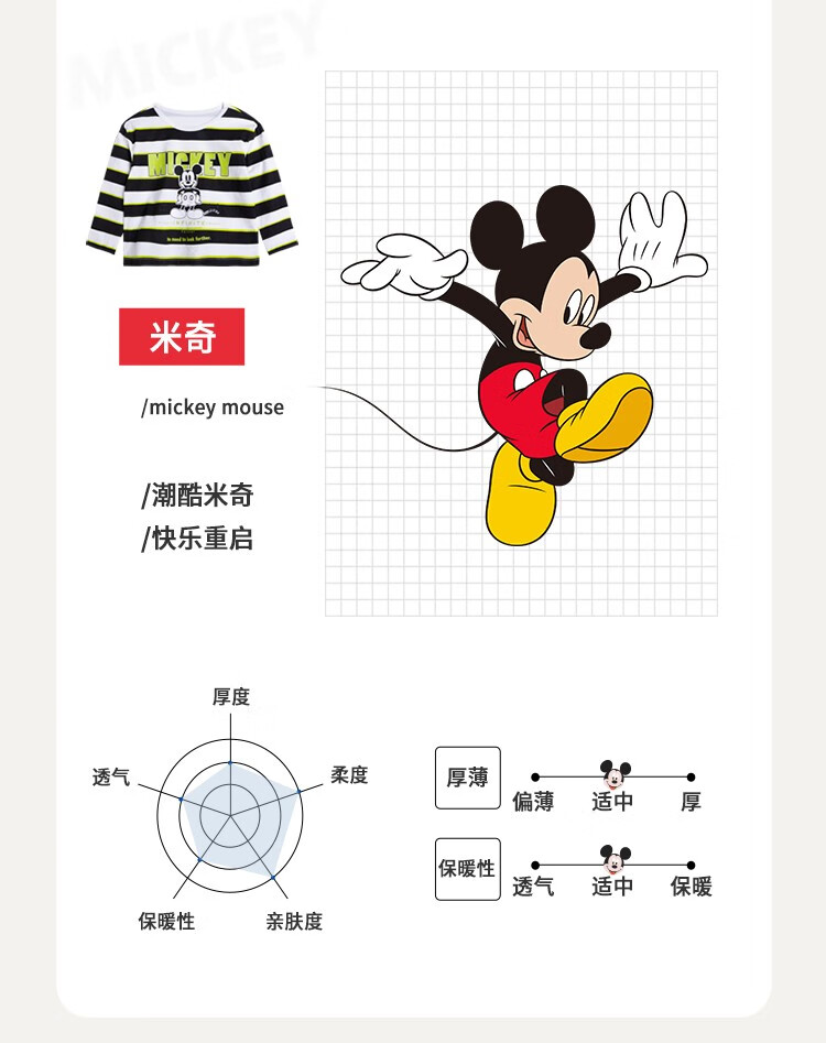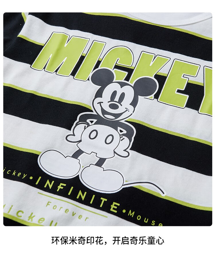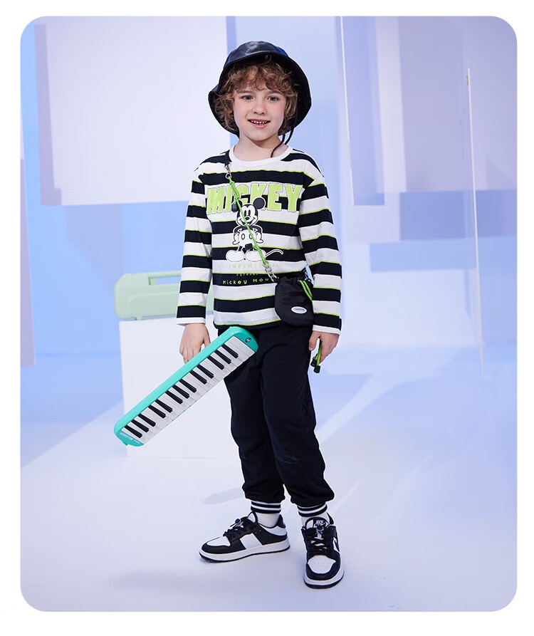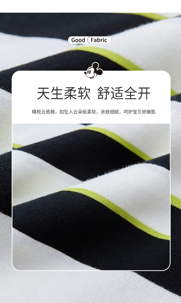 迪士尼童装秋季新品男童潮流条纹长袖儿童时尚内搭T恤