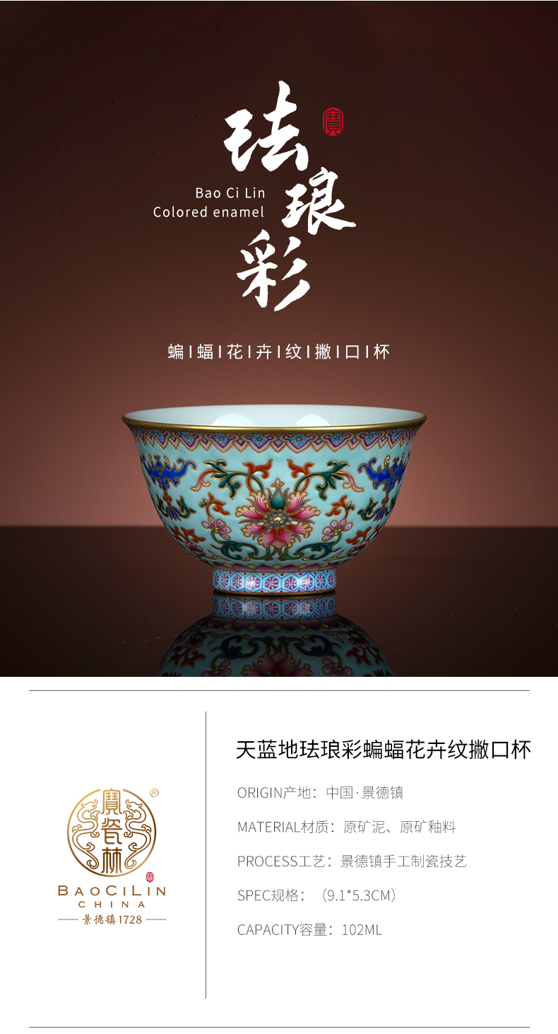 天蓝地珐琅彩蝙蝠花卉纹撇口杯