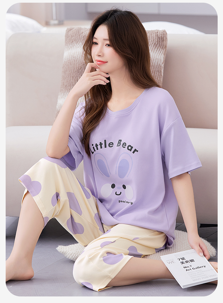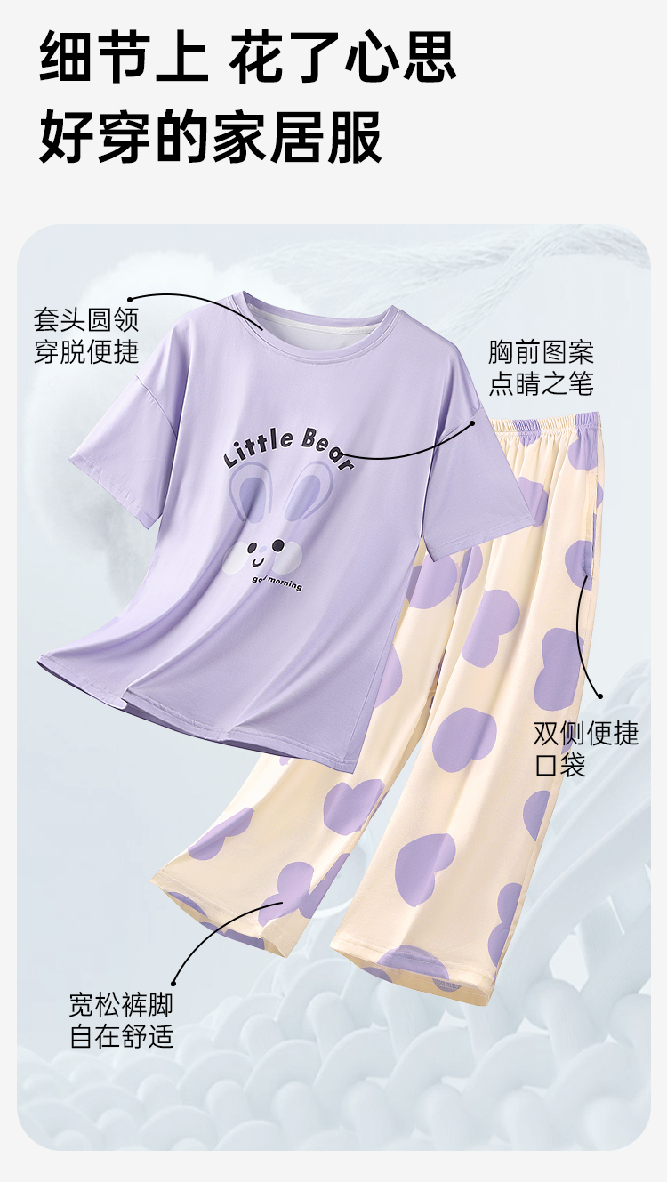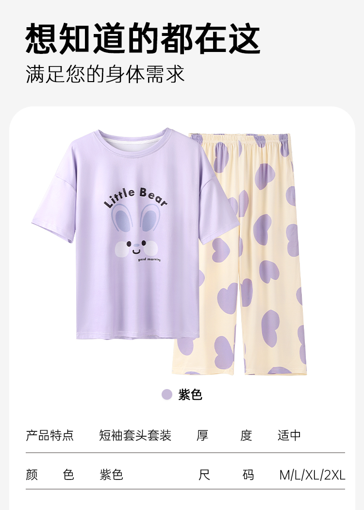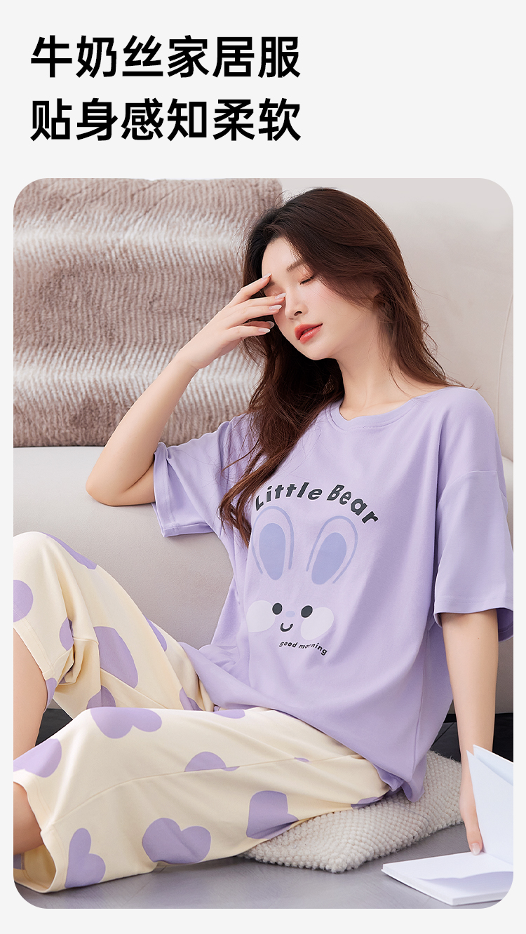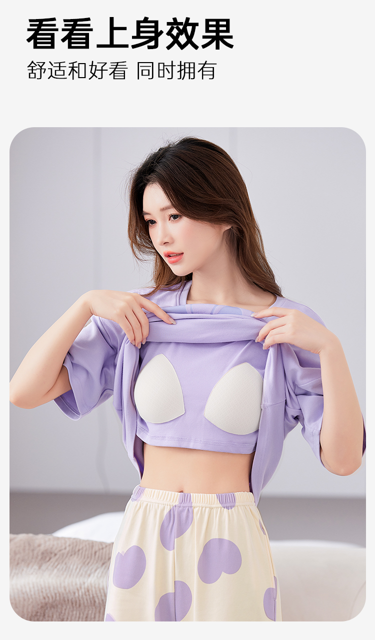 J1-【带胸垫 免穿文胸】防凸点夏季薄款牛奶丝女士睡衣家居服可外穿 忽然今夏