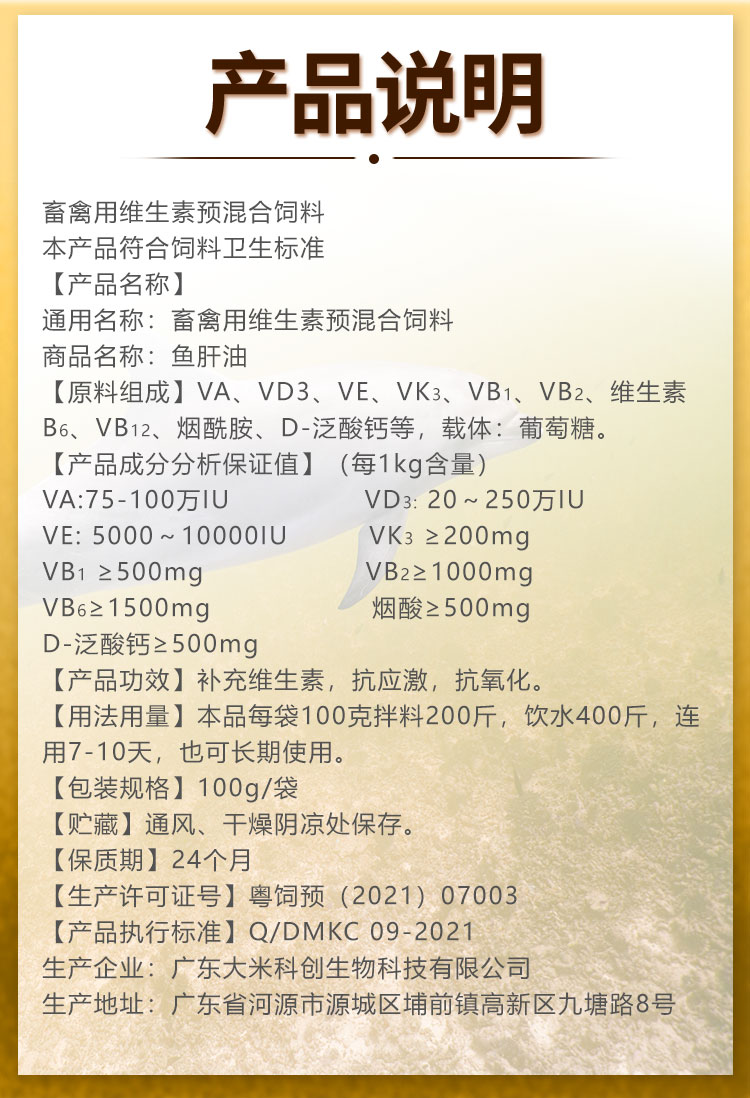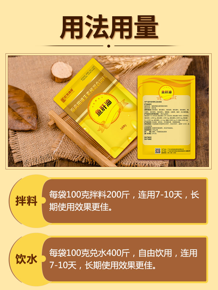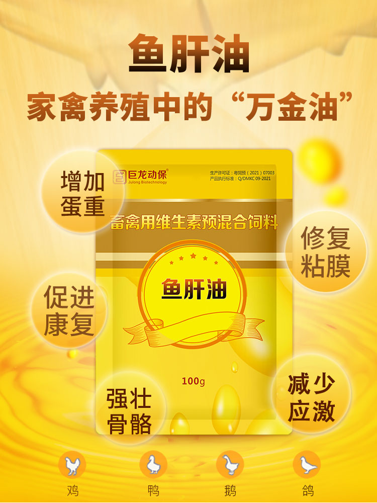 【鱼肝油】鸡鸭个鹅鸽禽用禽药家禽修复粘膜.促进康复.修复骨骼.抗应激增加蛋重100g/袋