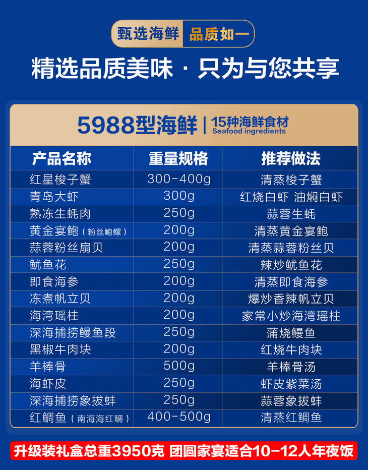 皇家船长国产海鲜礼盒15种食材5988型3950g(T)