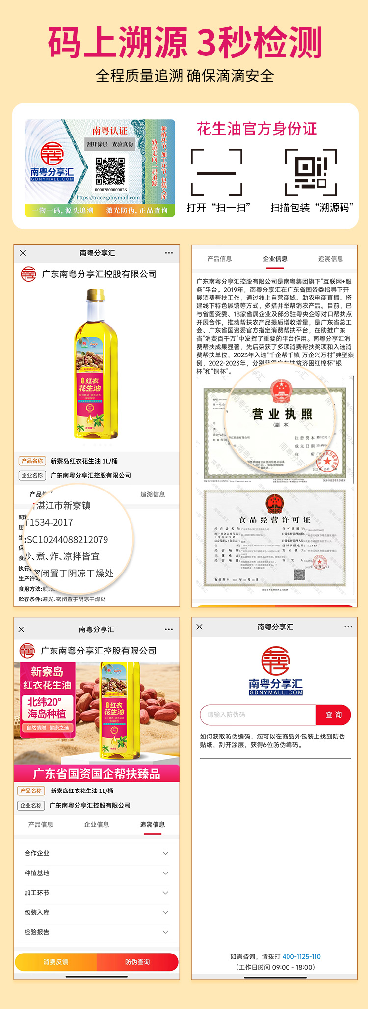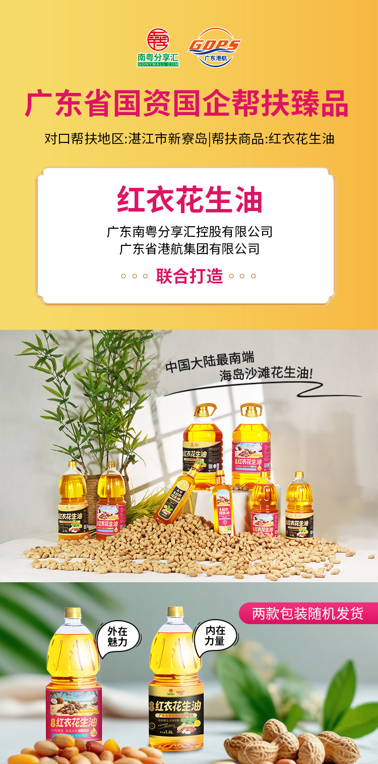 广东省国资国企帮扶臻品 徐闻县新寮岛红衣花生油 1L装