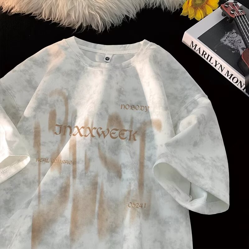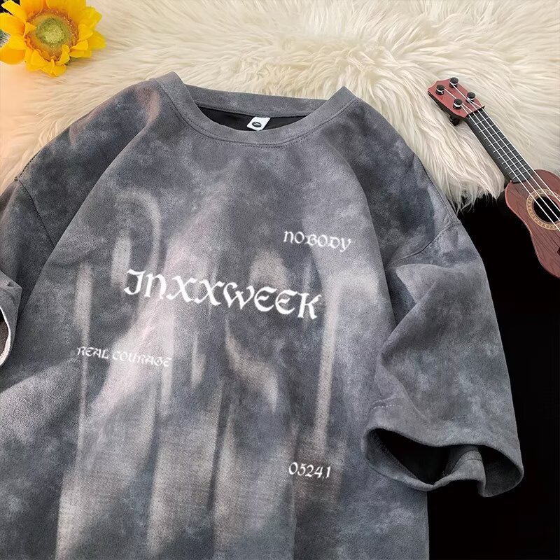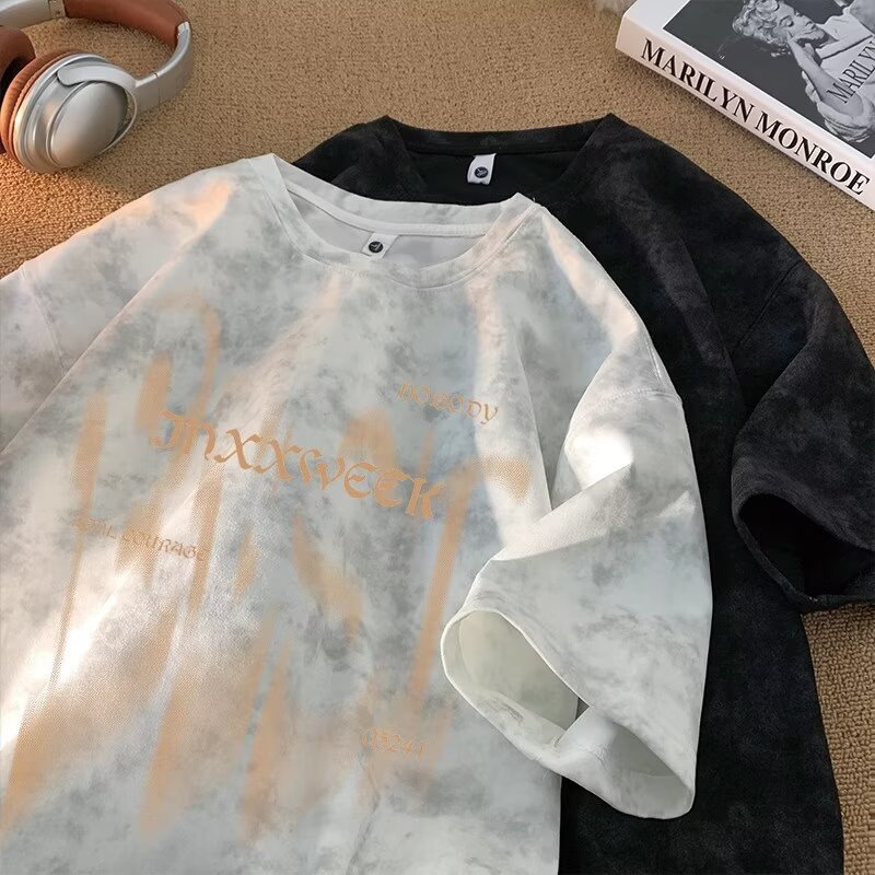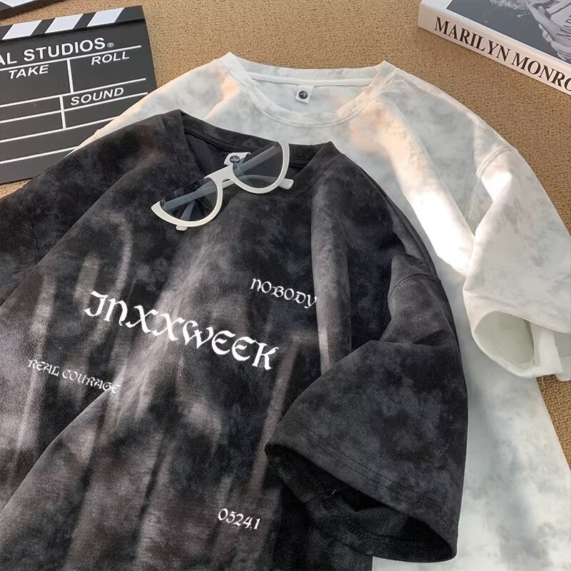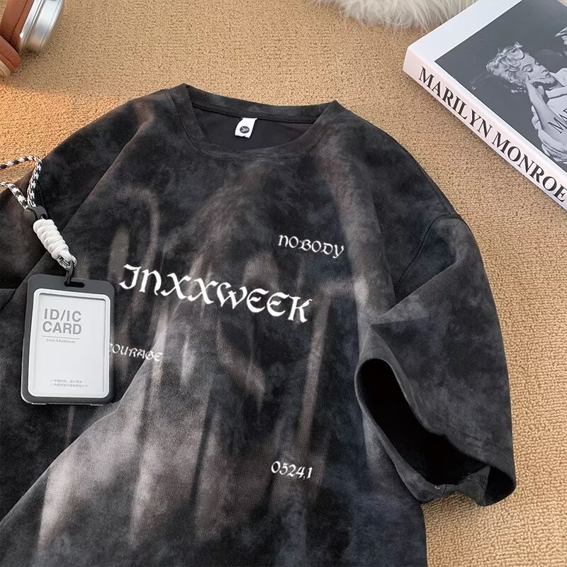 【潮人衣橱❗️高街扎染T恤】手工晕染黑灰渐变,自带做旧滤镜,街头感拉满,上身有型不软塌,男女宽松大码半袖水洗做旧体恤打底衫L