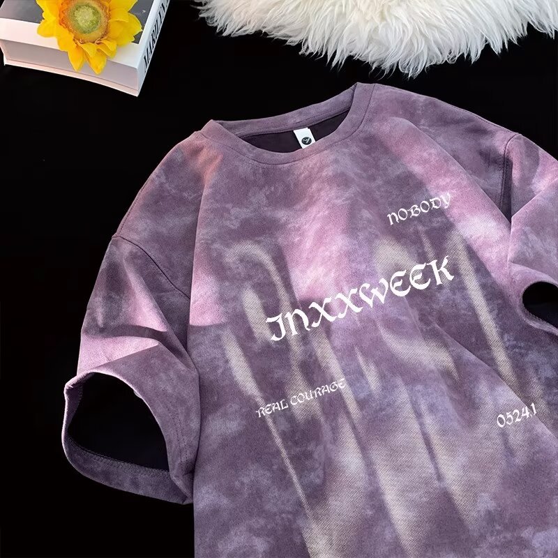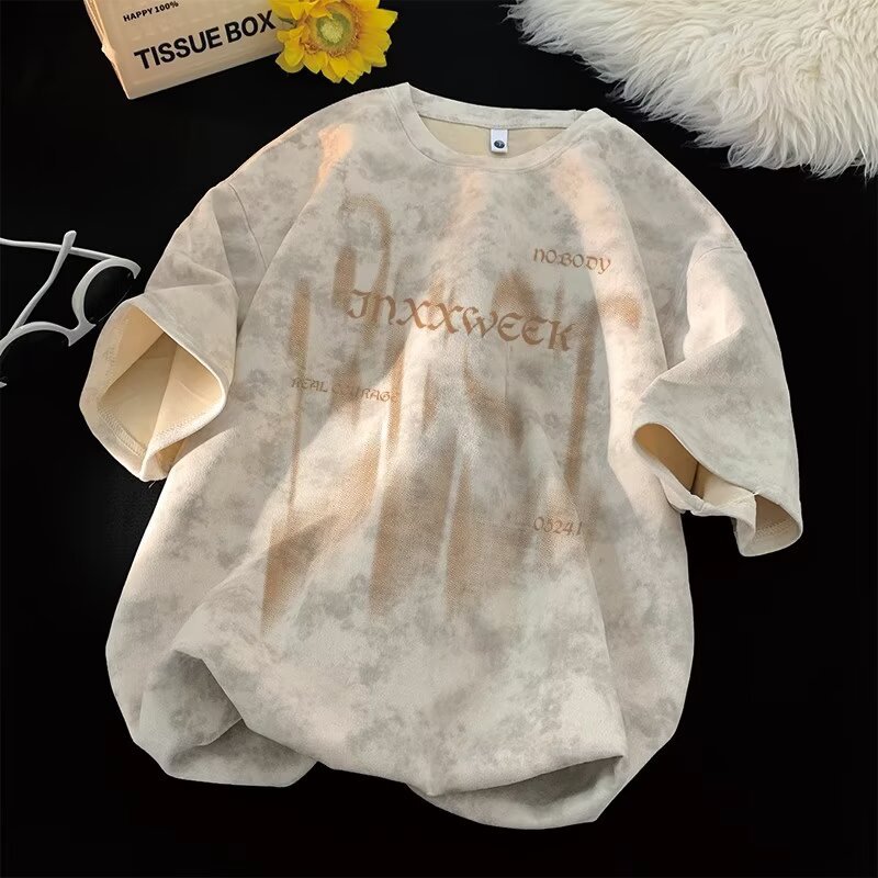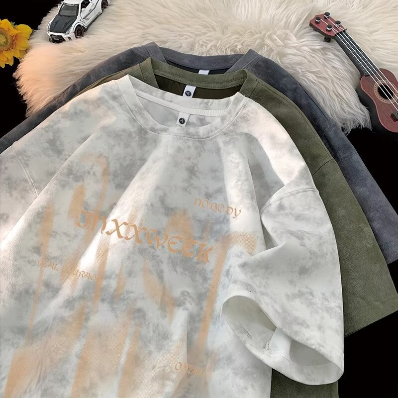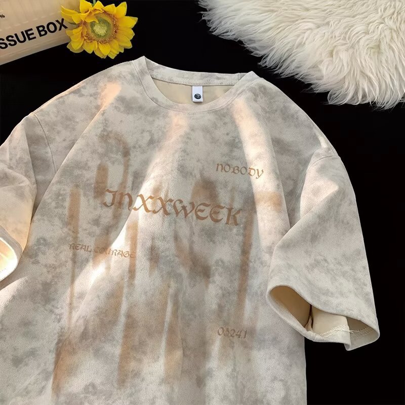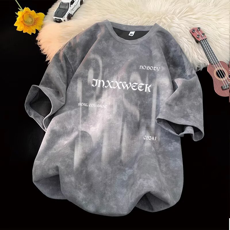【潮人衣橱❗️高街扎染T恤】手工晕染黑灰渐变,自带做旧滤镜,街头感拉满,上身有型不软塌,男女宽松大码半袖水洗做旧体恤打底衫L