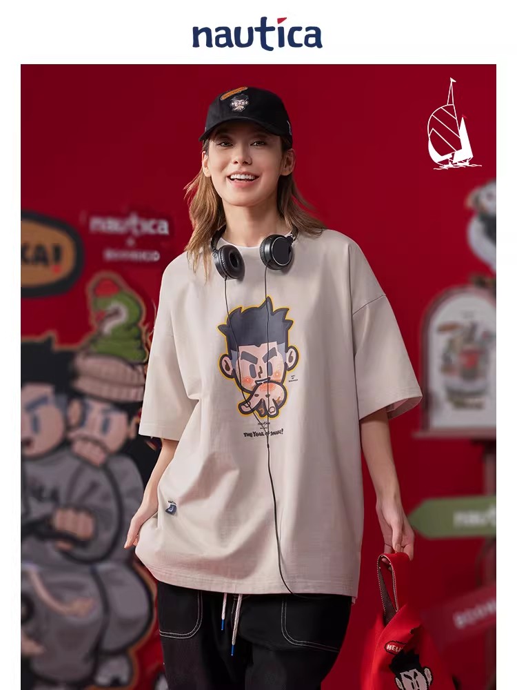 复古大印花tee,面料是真的棒。街头美式圆领正肩宽松t恤E013188