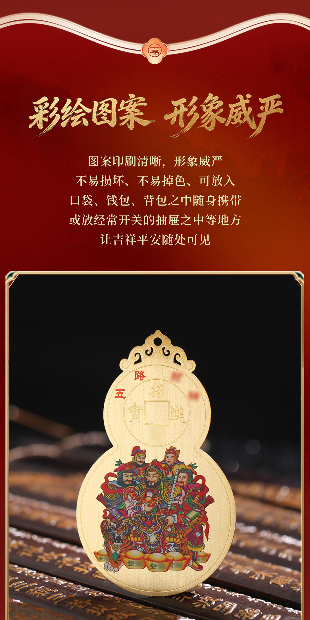 【祈愿吉品】2026马年「五路财神」葫芦金卡手机贴幸运物招米赵公明