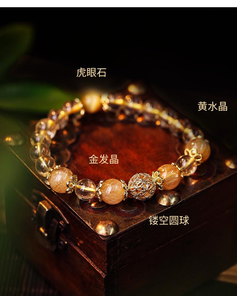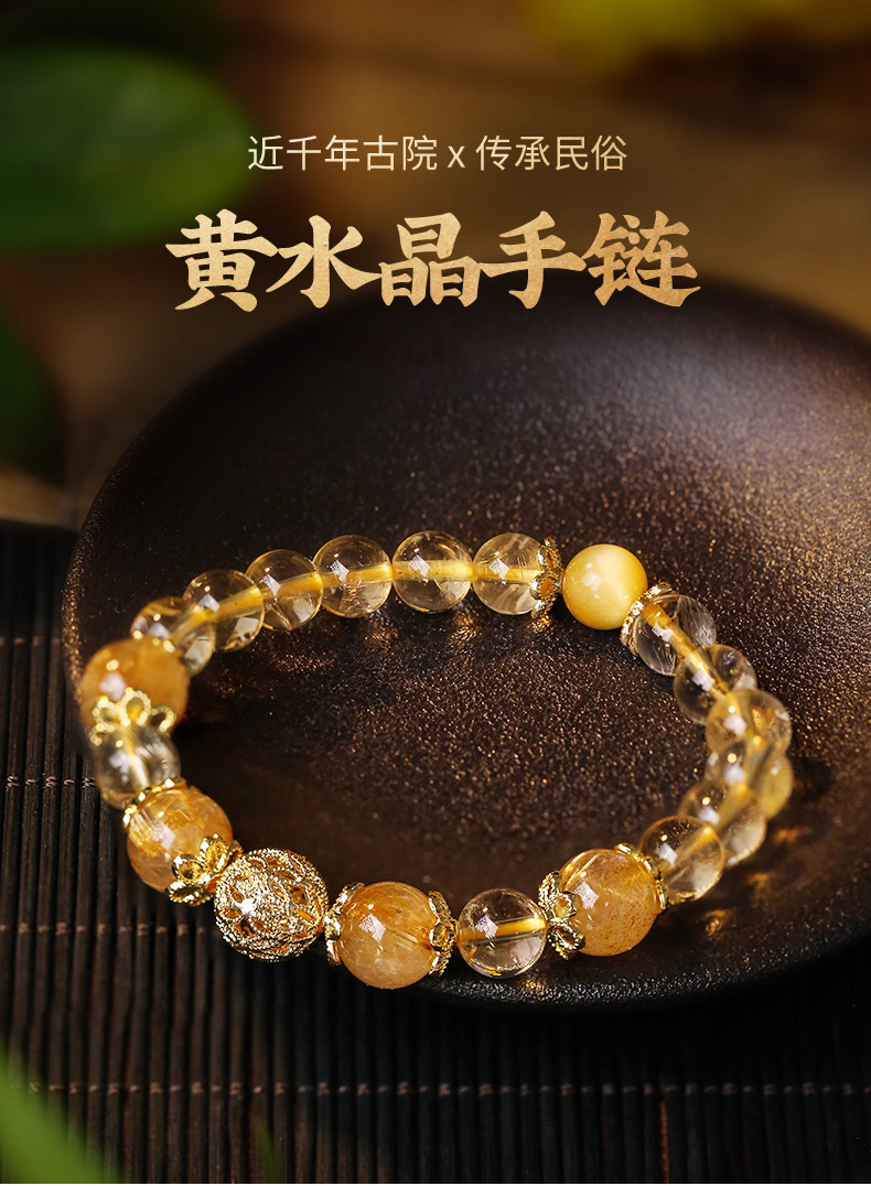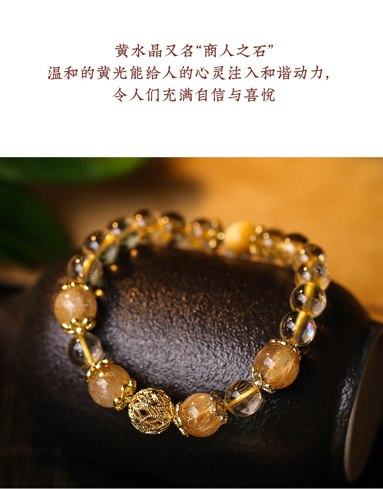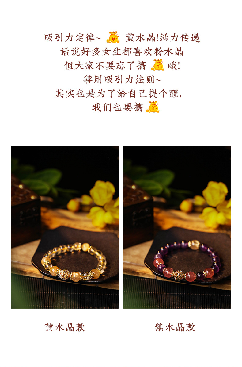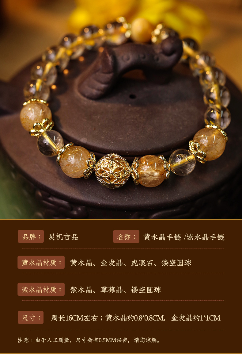 灵机生活馆 黄水晶手链 金发晶紫水晶手串 职场上班