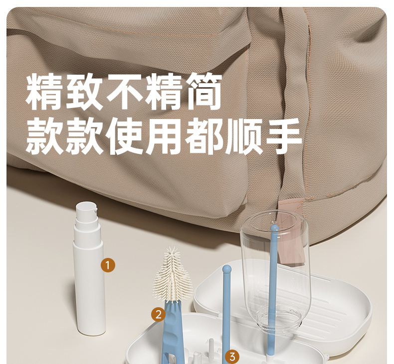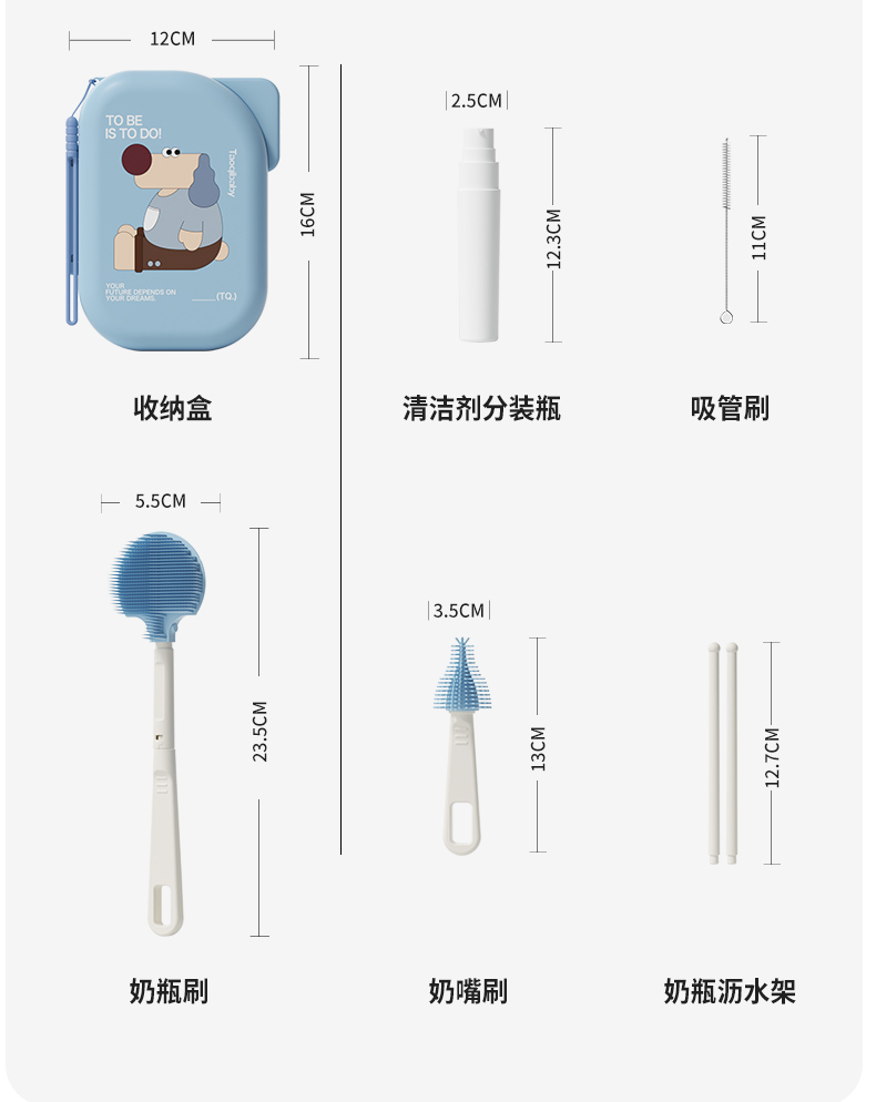 [屁侠推荐]taoqibaby淘气宝贝婴儿硅胶便携奶瓶刷套装宝宝清洗刷清洁刷旅行装沥水架