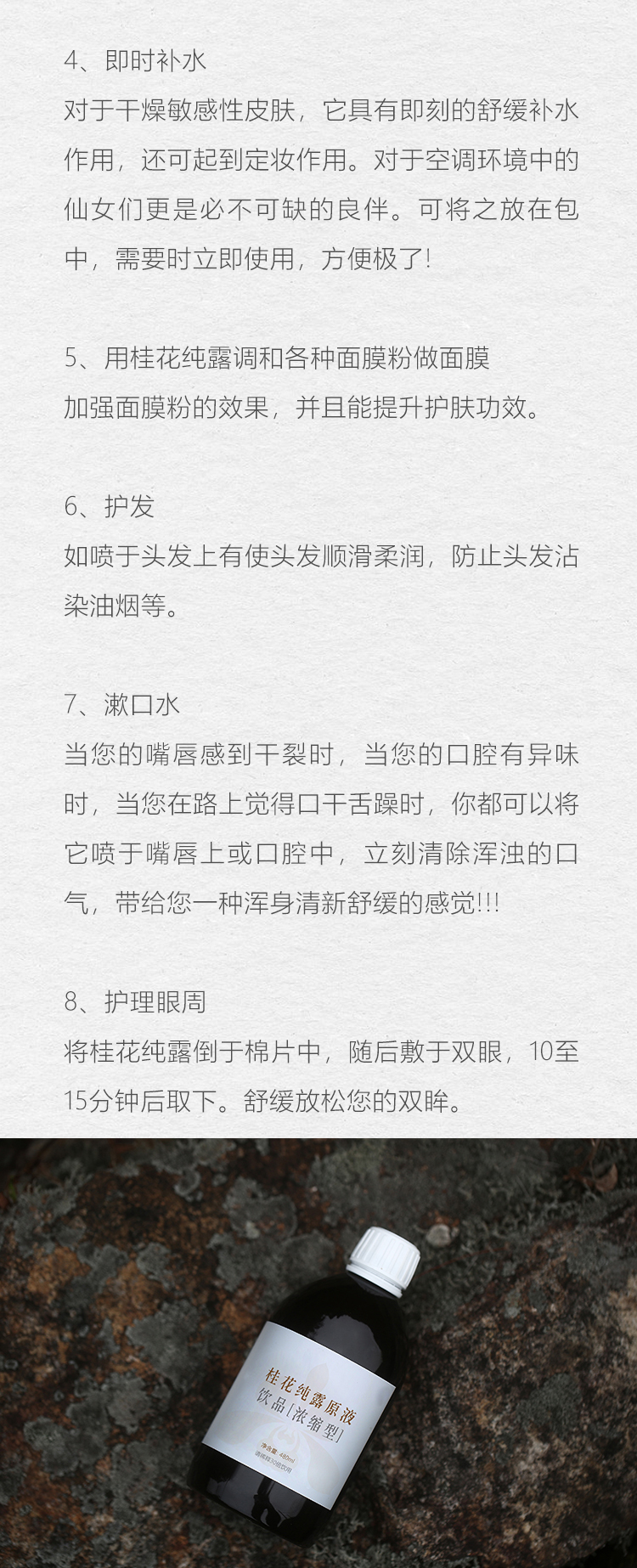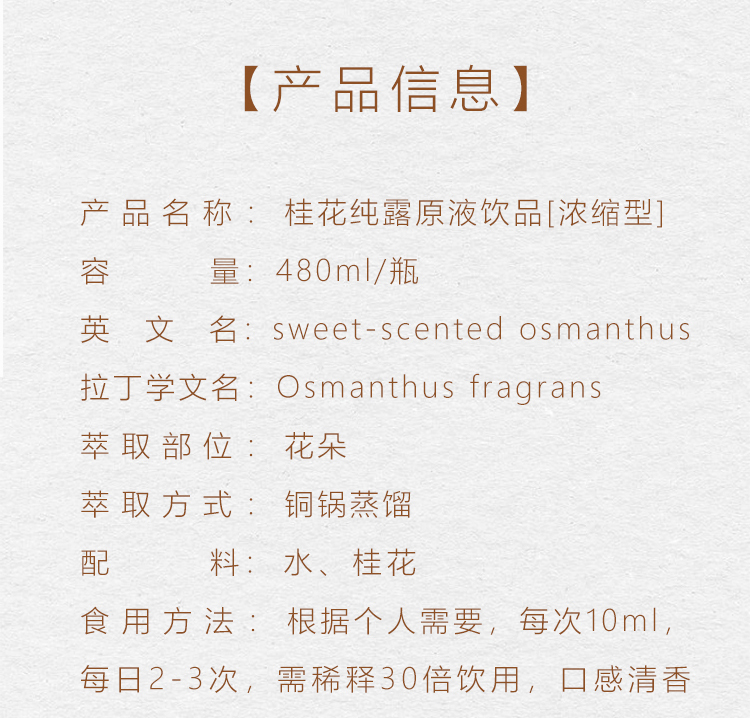 3、桂花露开盖后可置于冰箱冷藏,建议尽快使用。