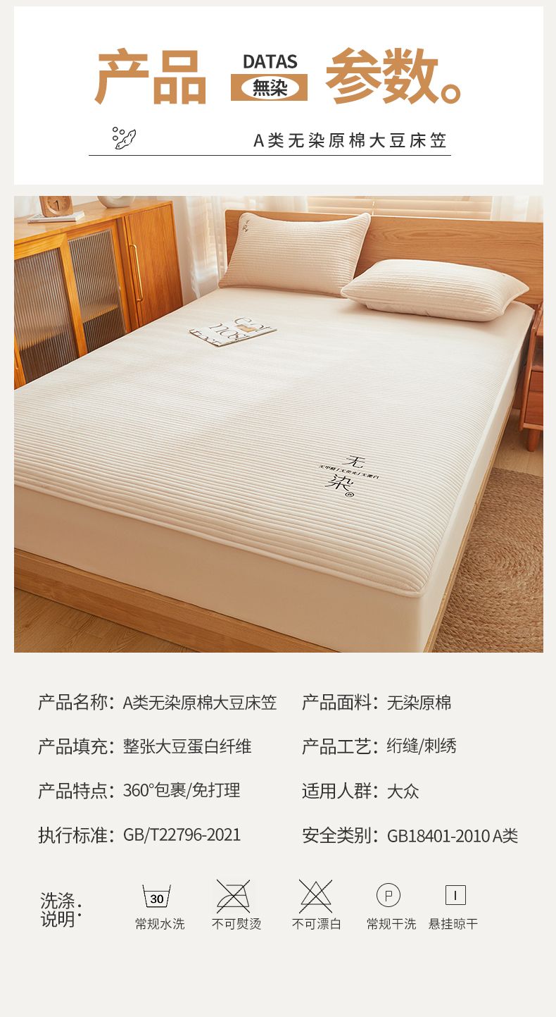 觉先生a类大豆夹棉床笠单件床罩席梦思床垫保护套防尘罩床单防滑3
