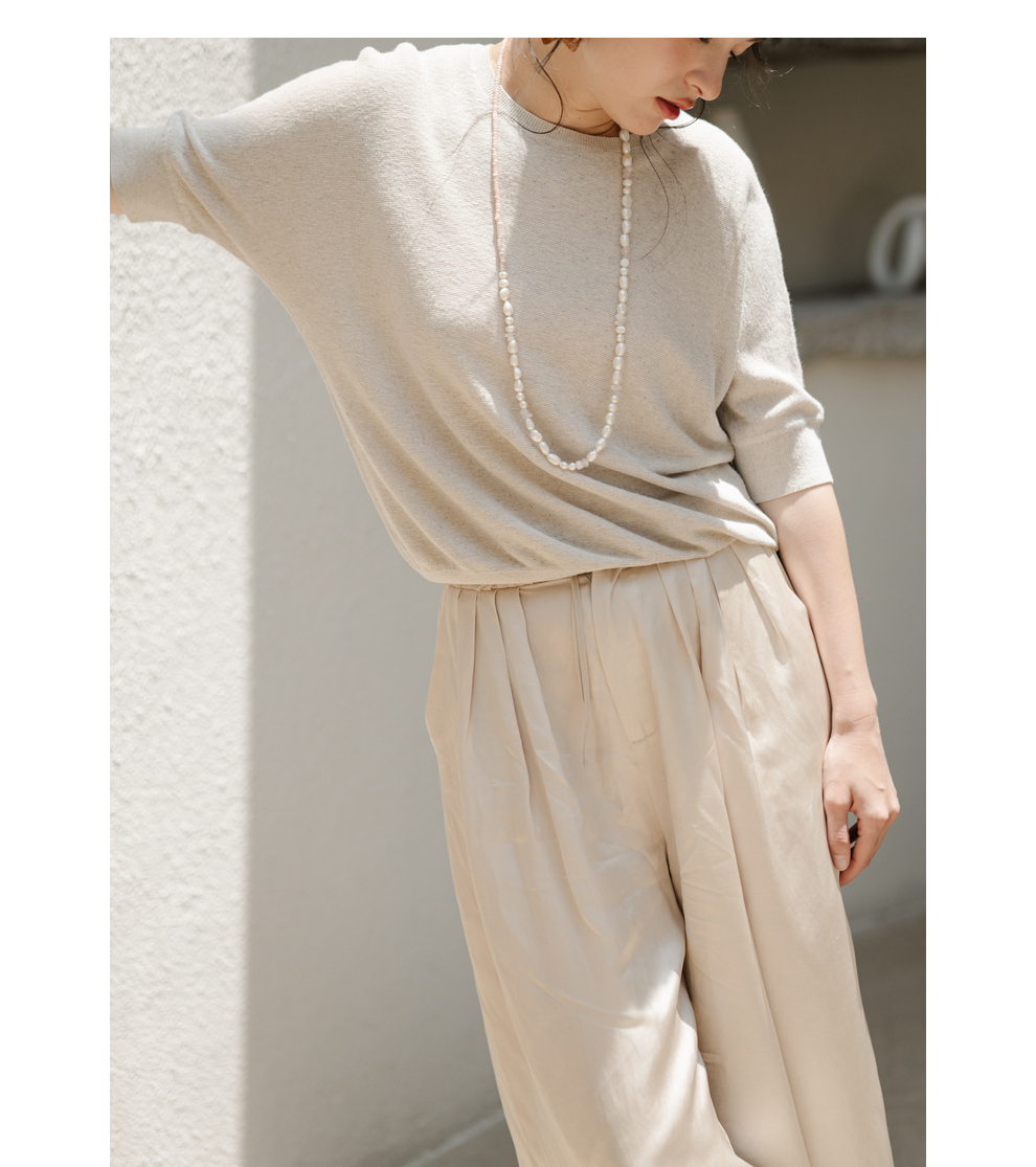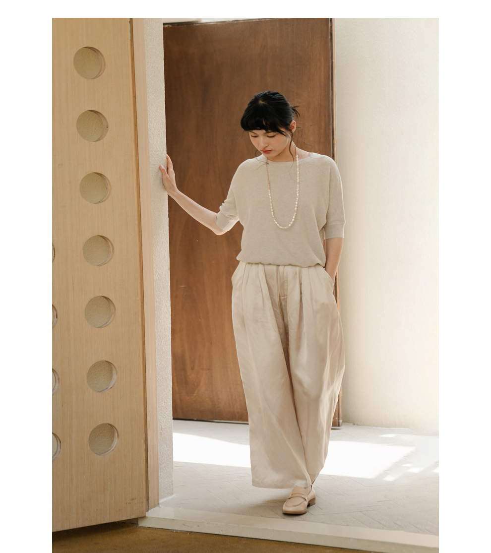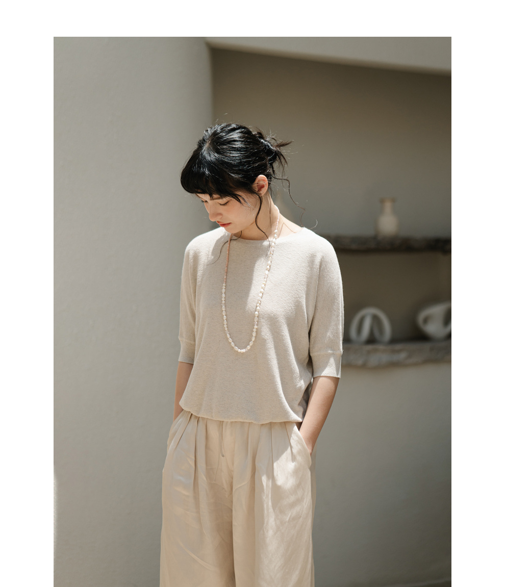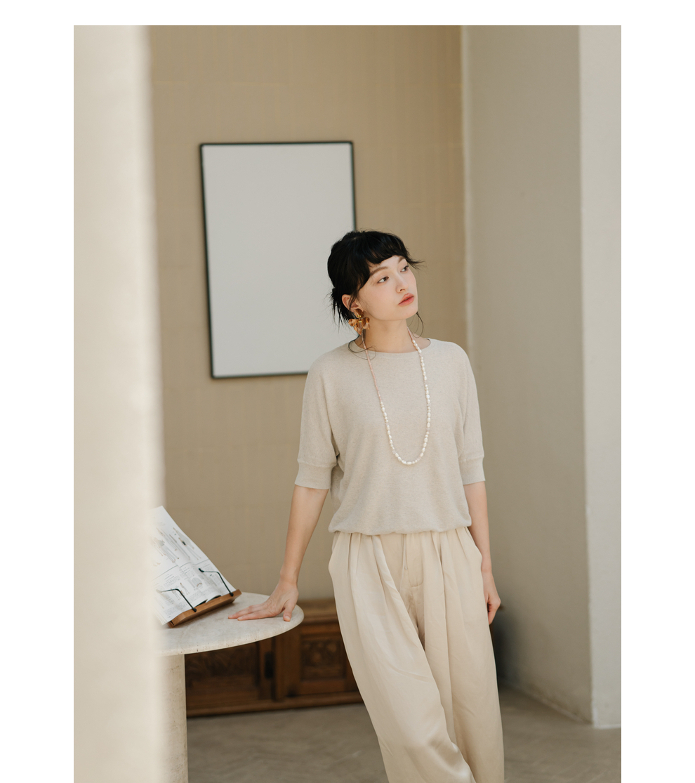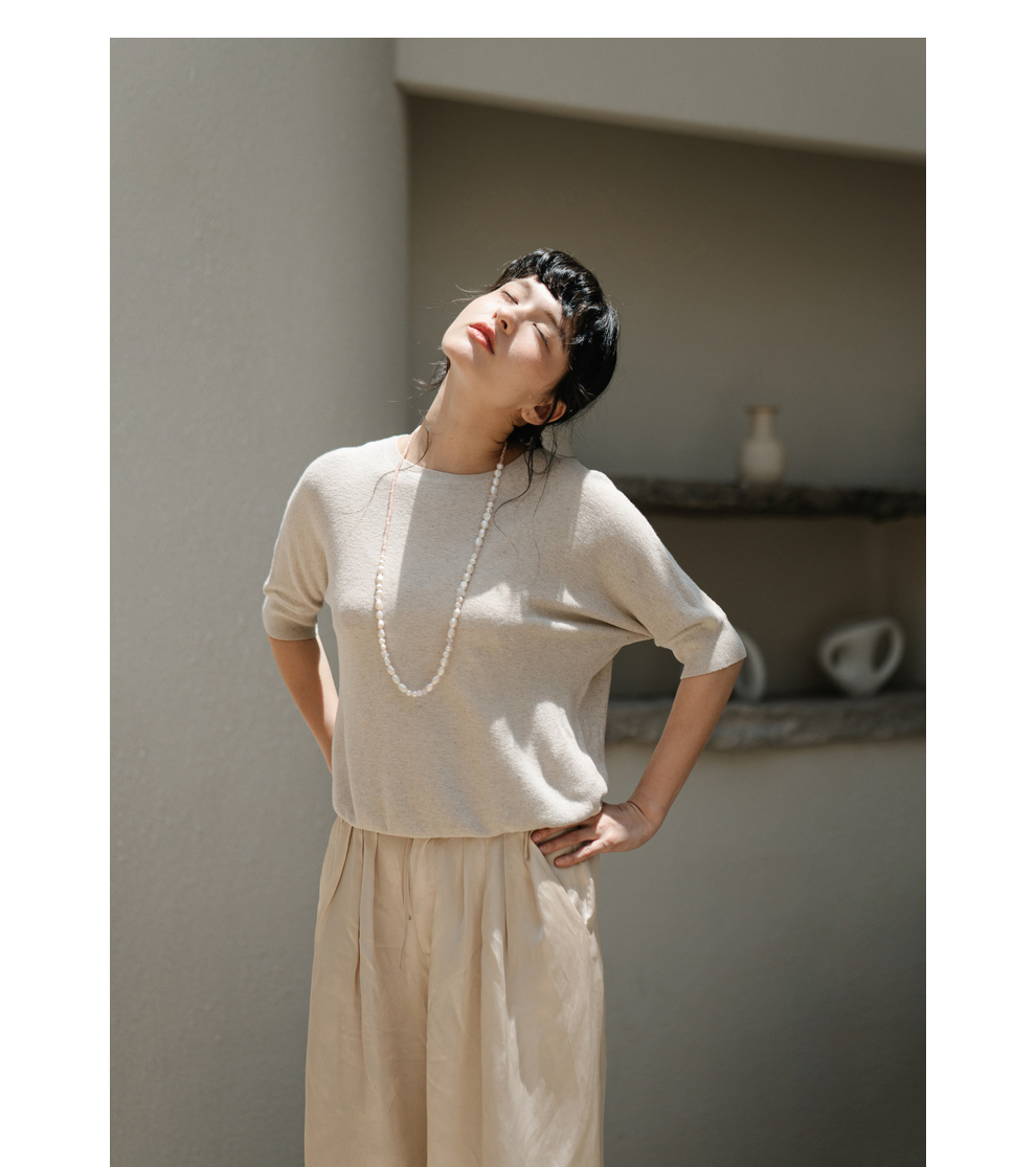 绽放282朵[限量]/燕麦色丝落棉螺纹收口2024夏新款棉麻休闲T恤