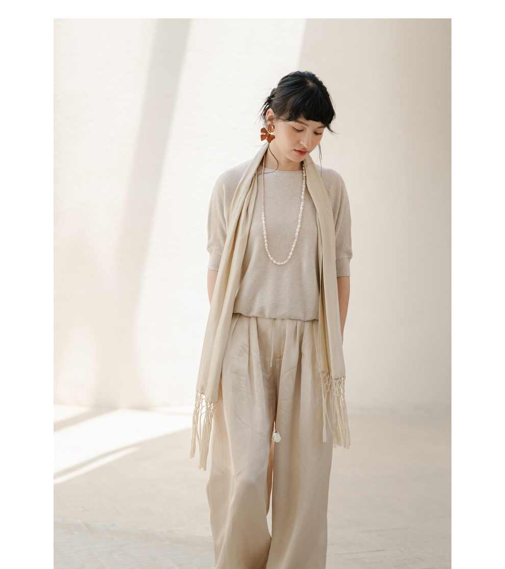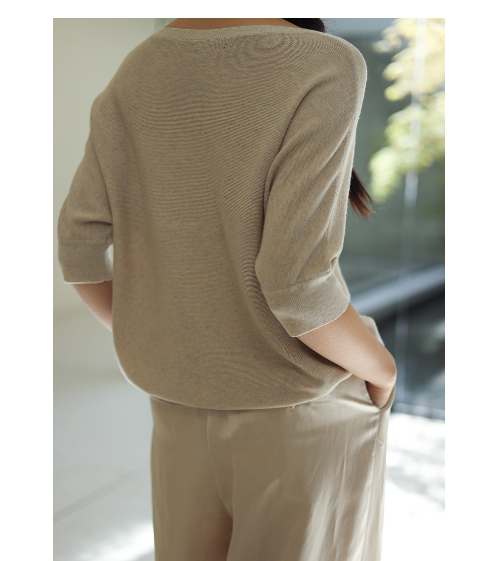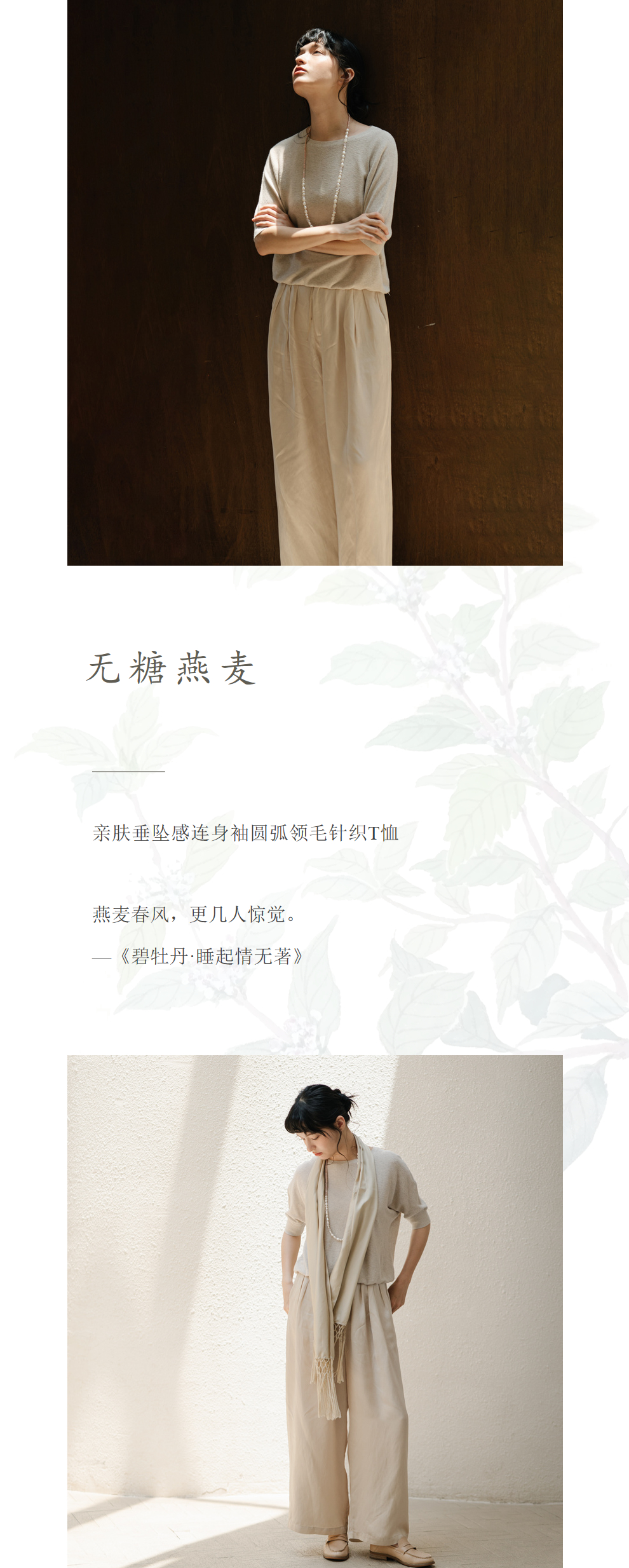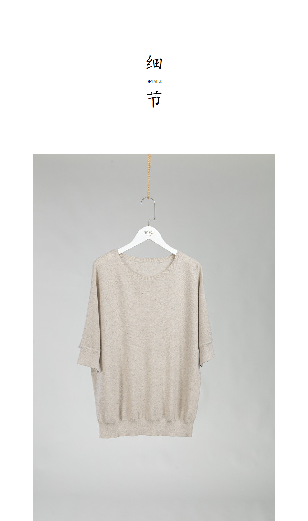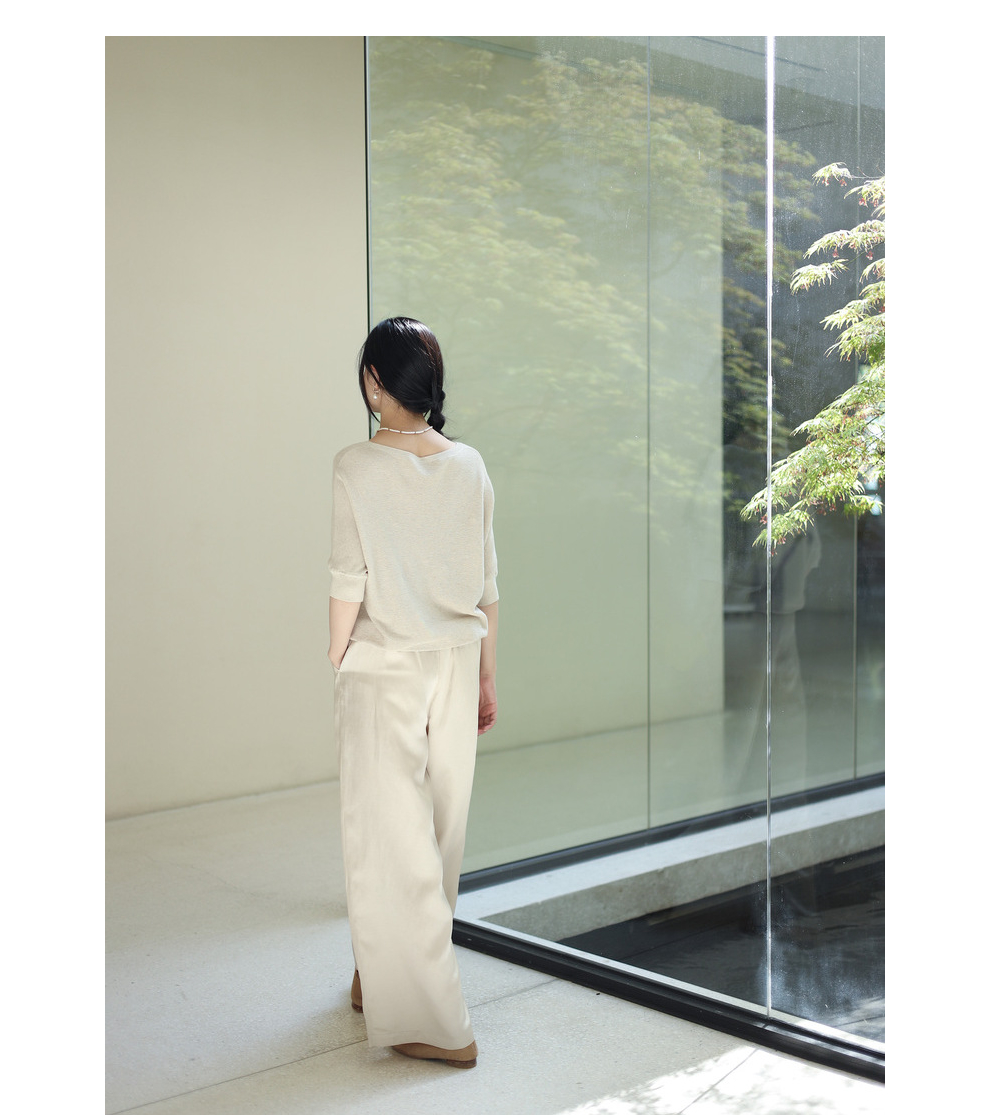 绽放282朵[限量]/燕麦色丝落棉螺纹收口2024夏新款棉麻休闲T恤