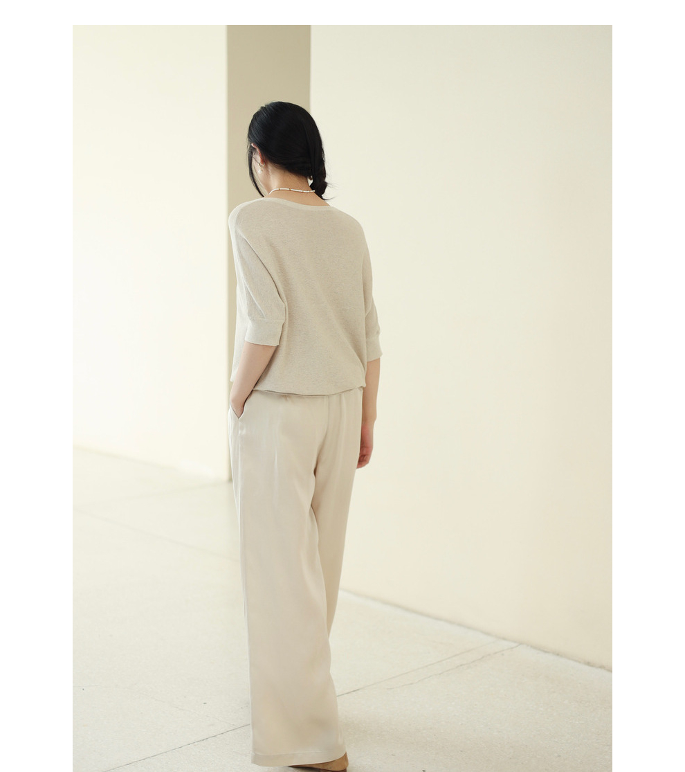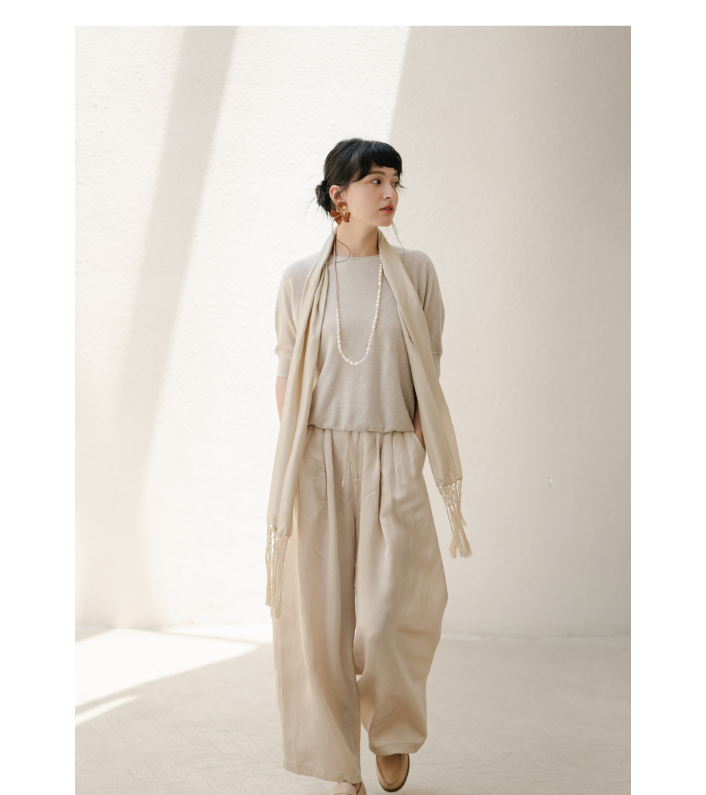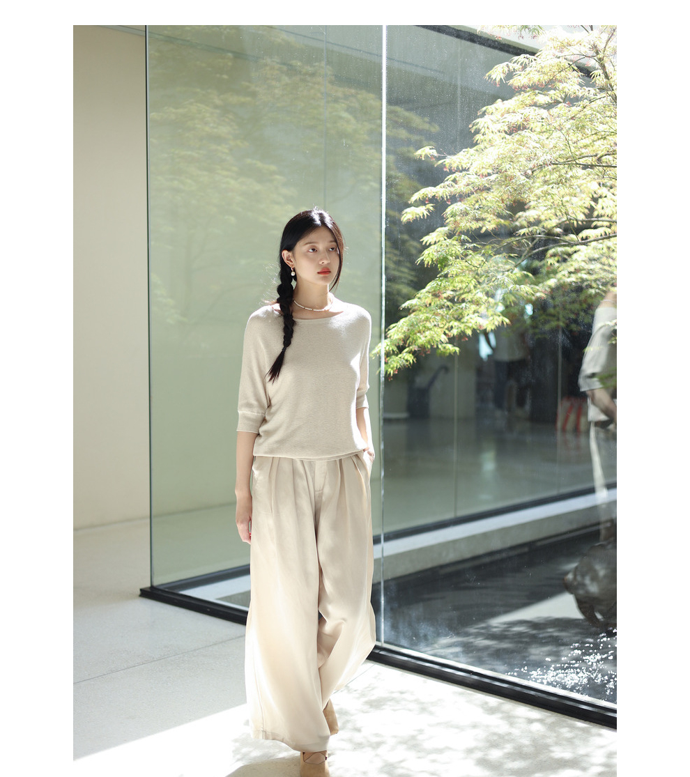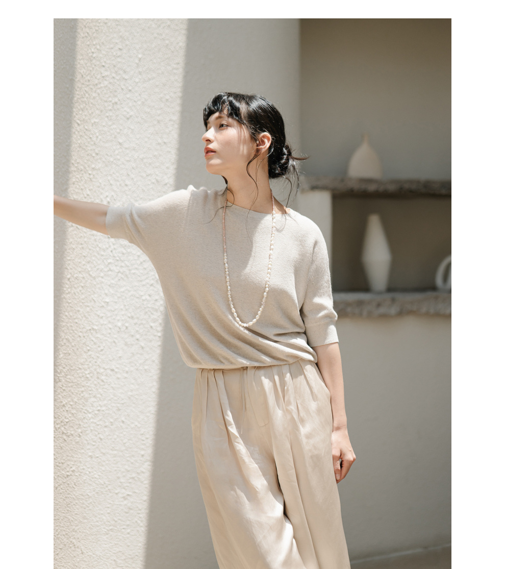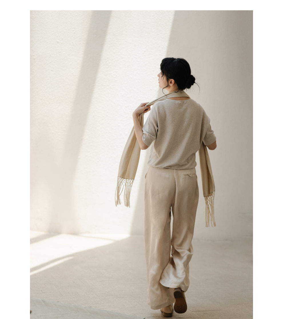 绽放282朵[限量]/燕麦色丝落棉螺纹收口2024夏新款棉麻休闲T恤