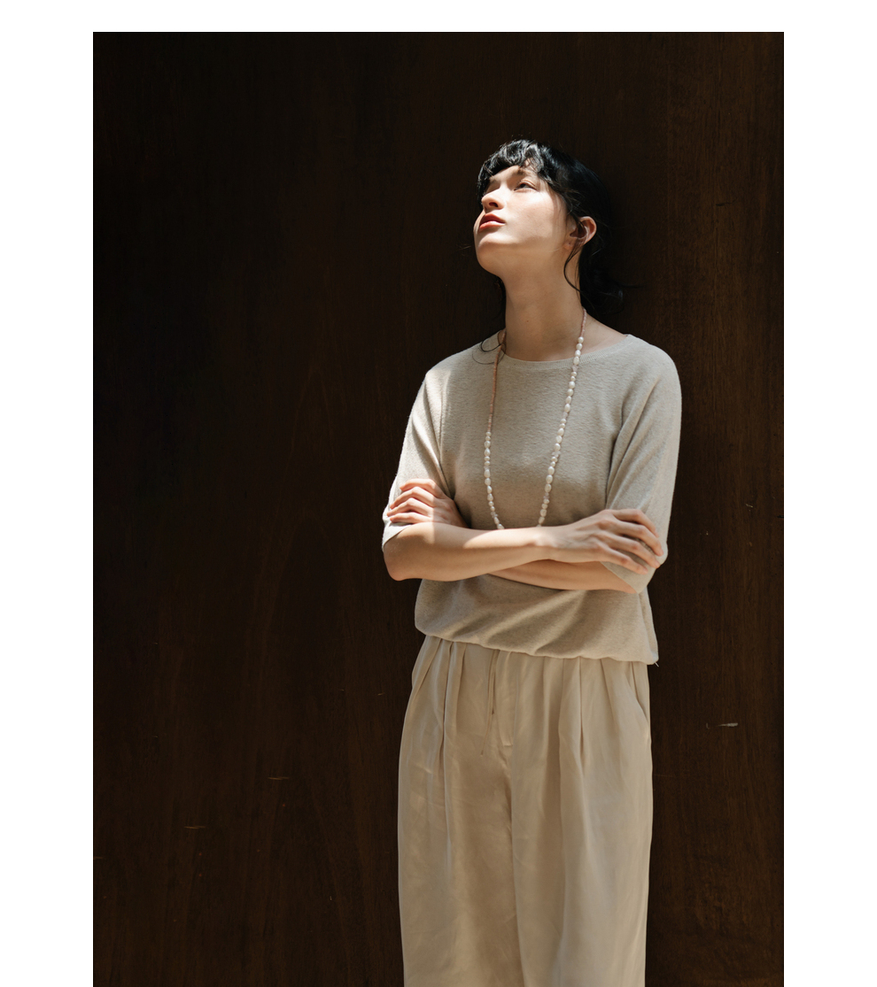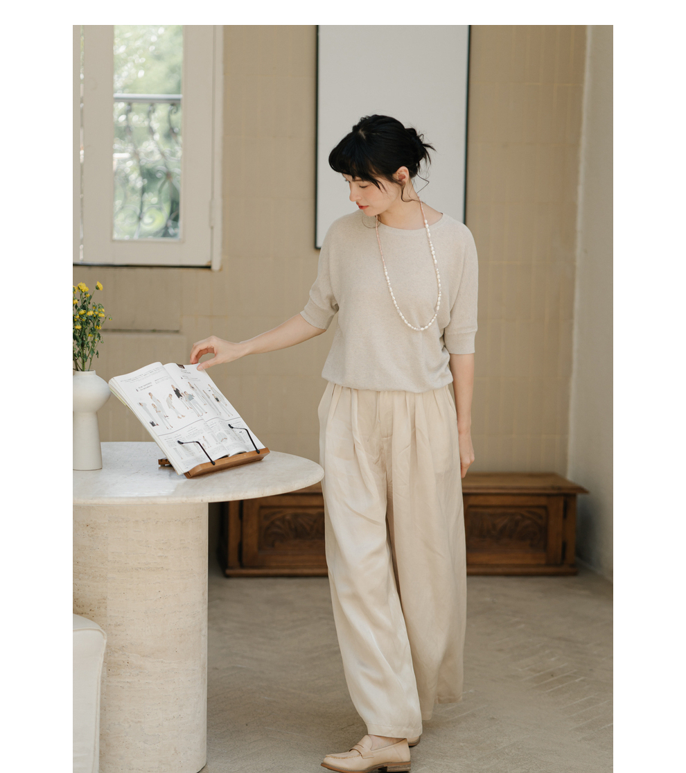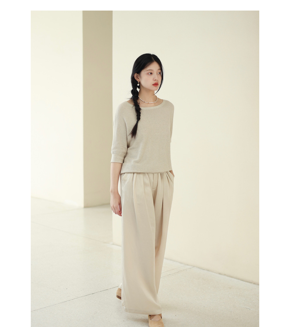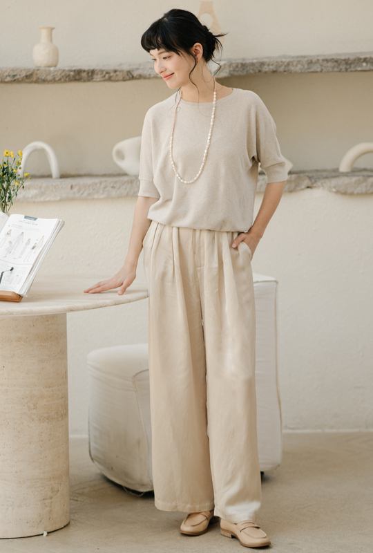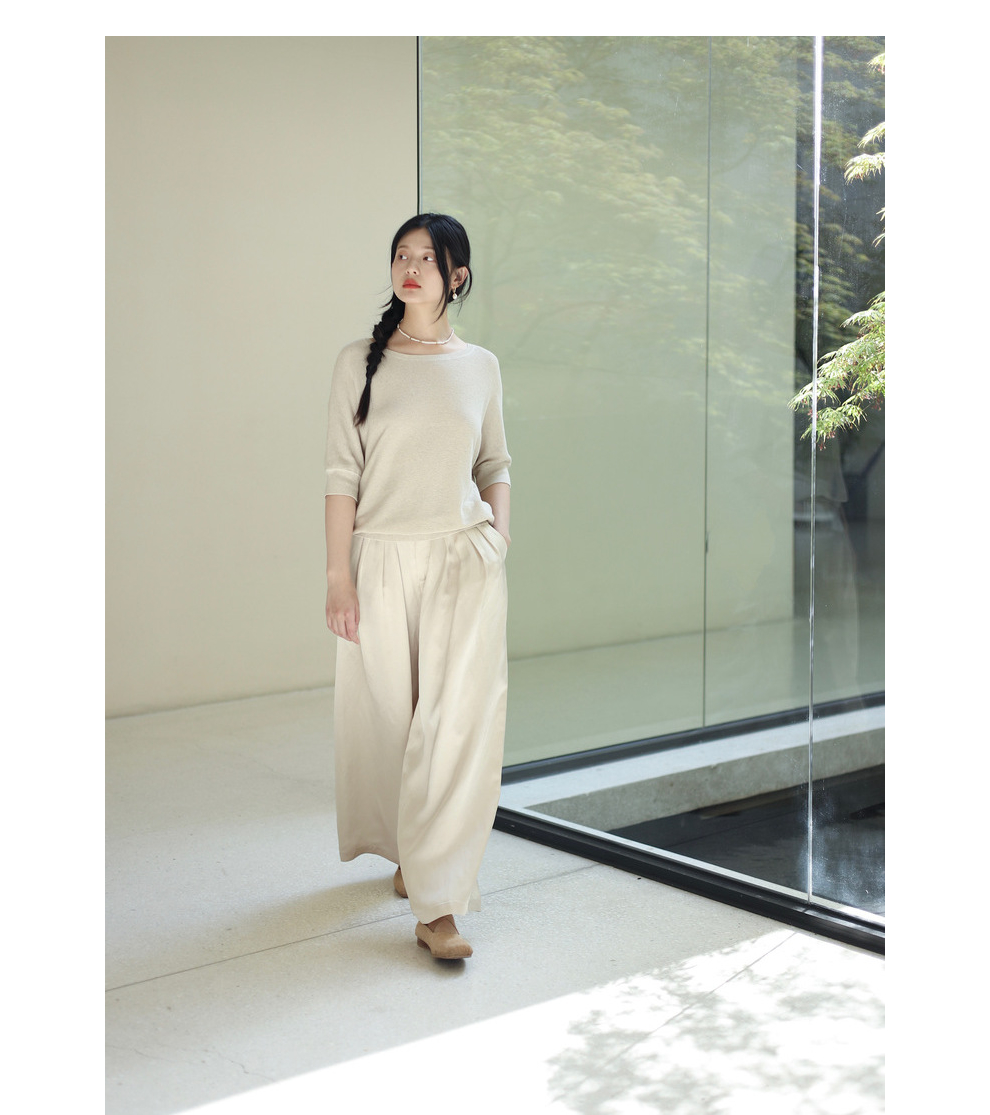 绽放282朵[限量]/燕麦色丝落棉螺纹收口2024夏新款棉麻休闲T恤