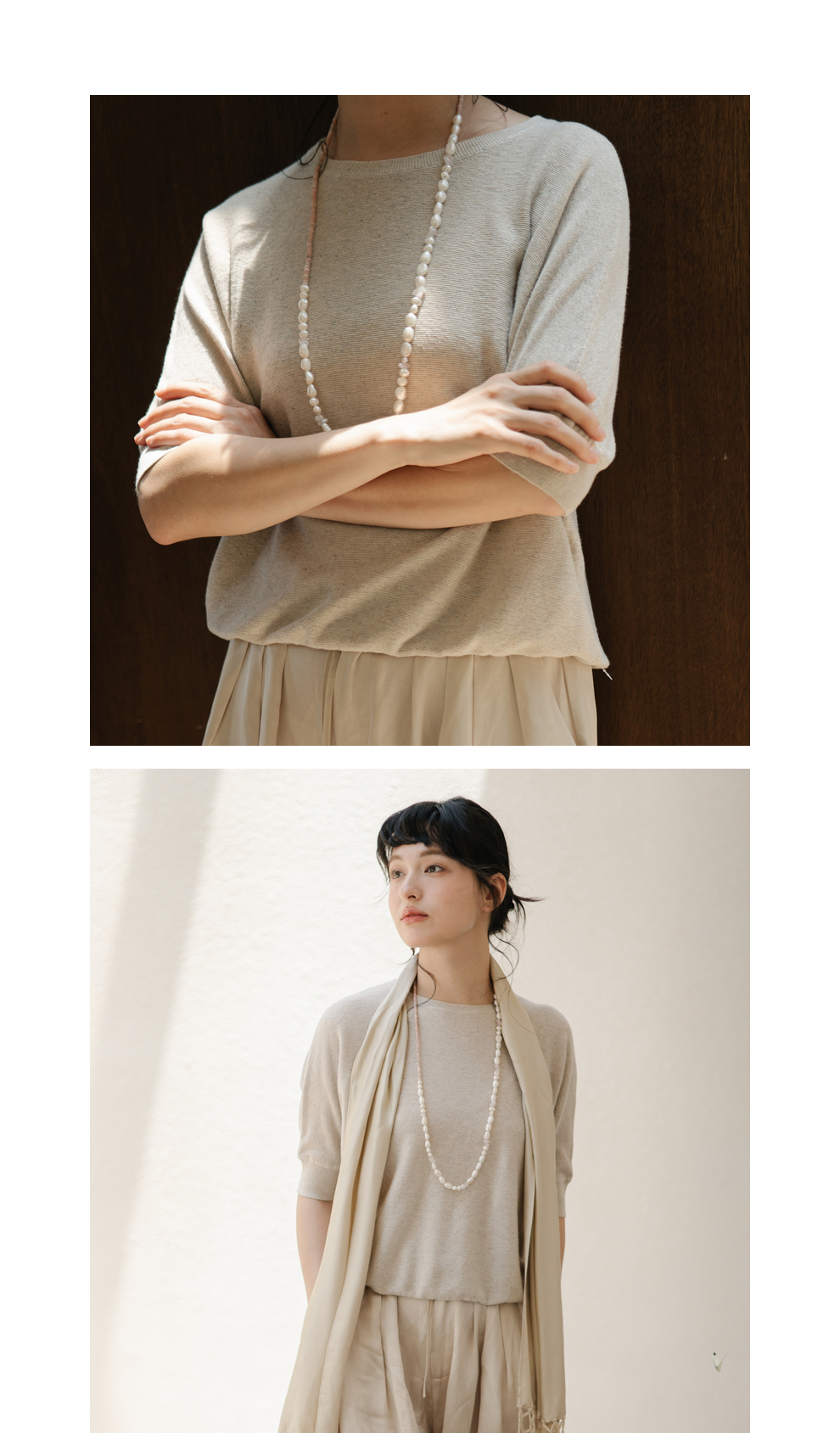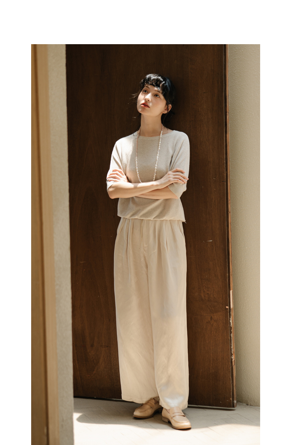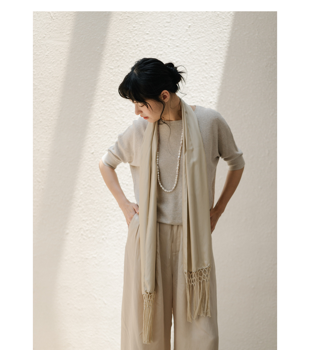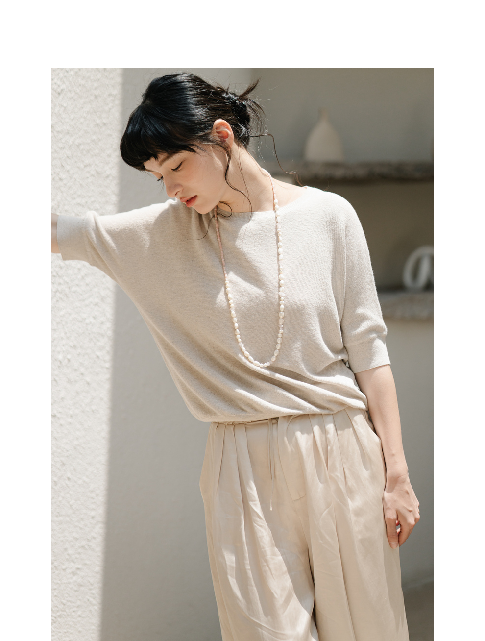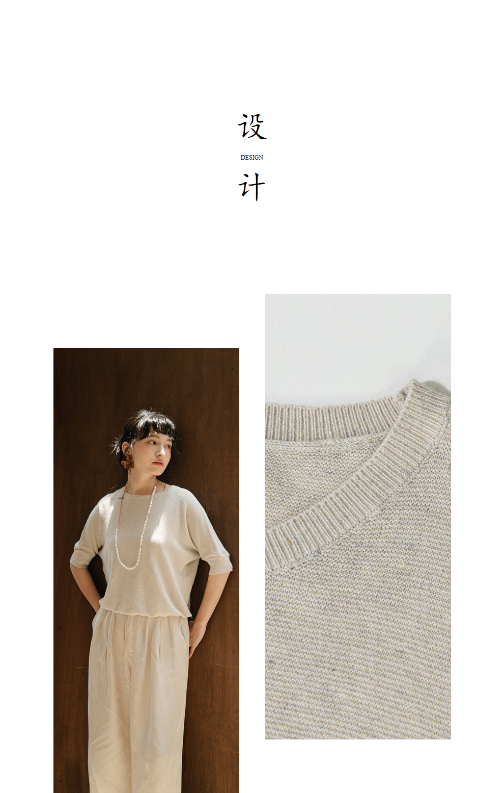 绽放282朵[限量]/燕麦色丝落棉螺纹收口2024夏新款棉麻休闲T恤