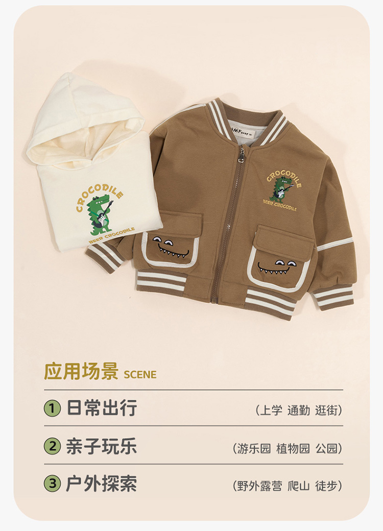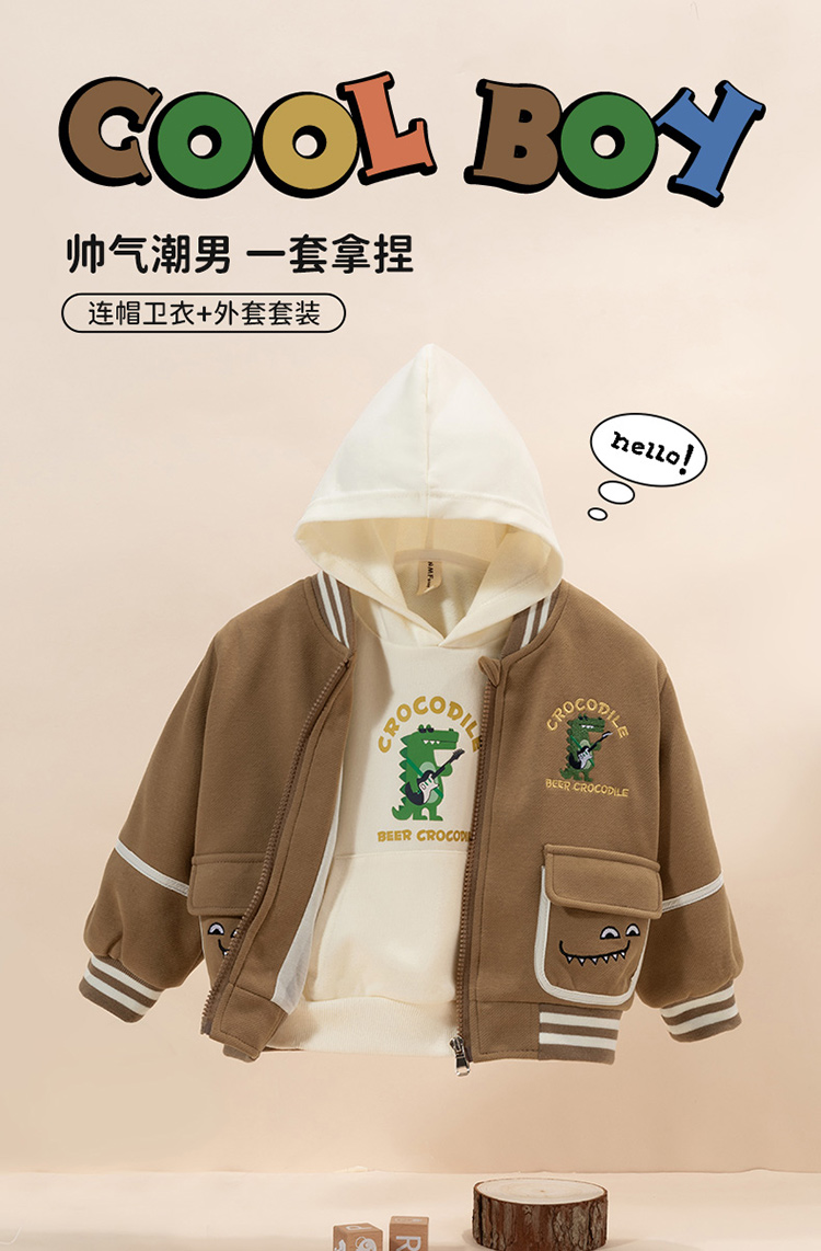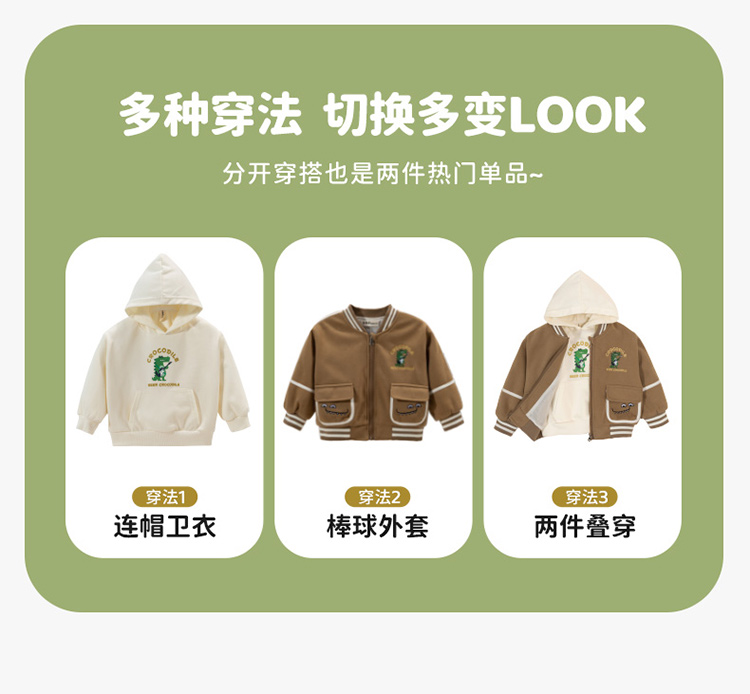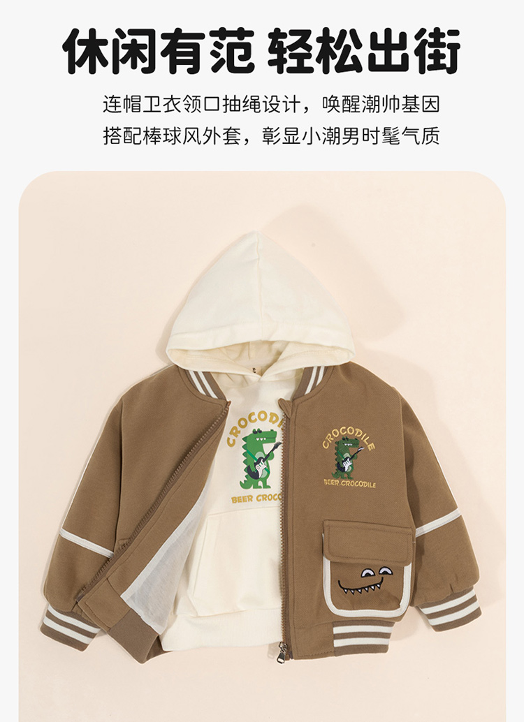 贝贝怡童装男童外套连帽卫衣2件套2024秋新款潮酷帅气夹克棒球服ZB3DS045
