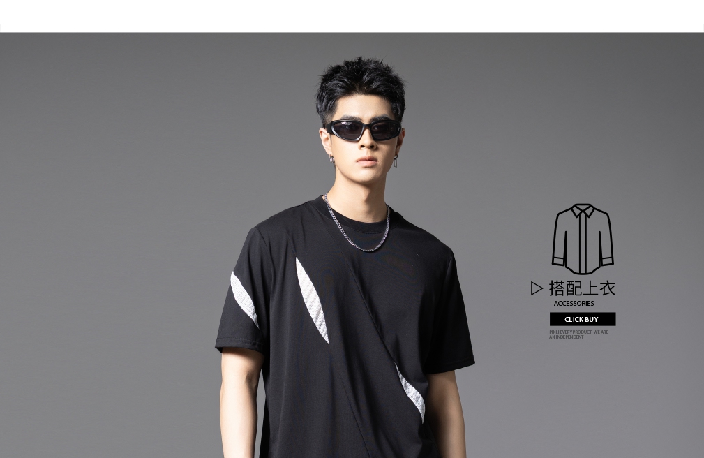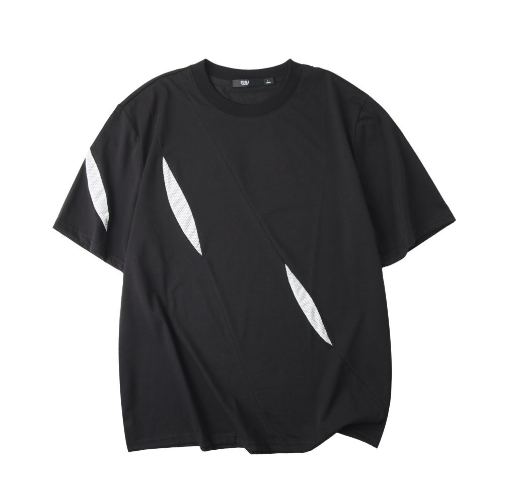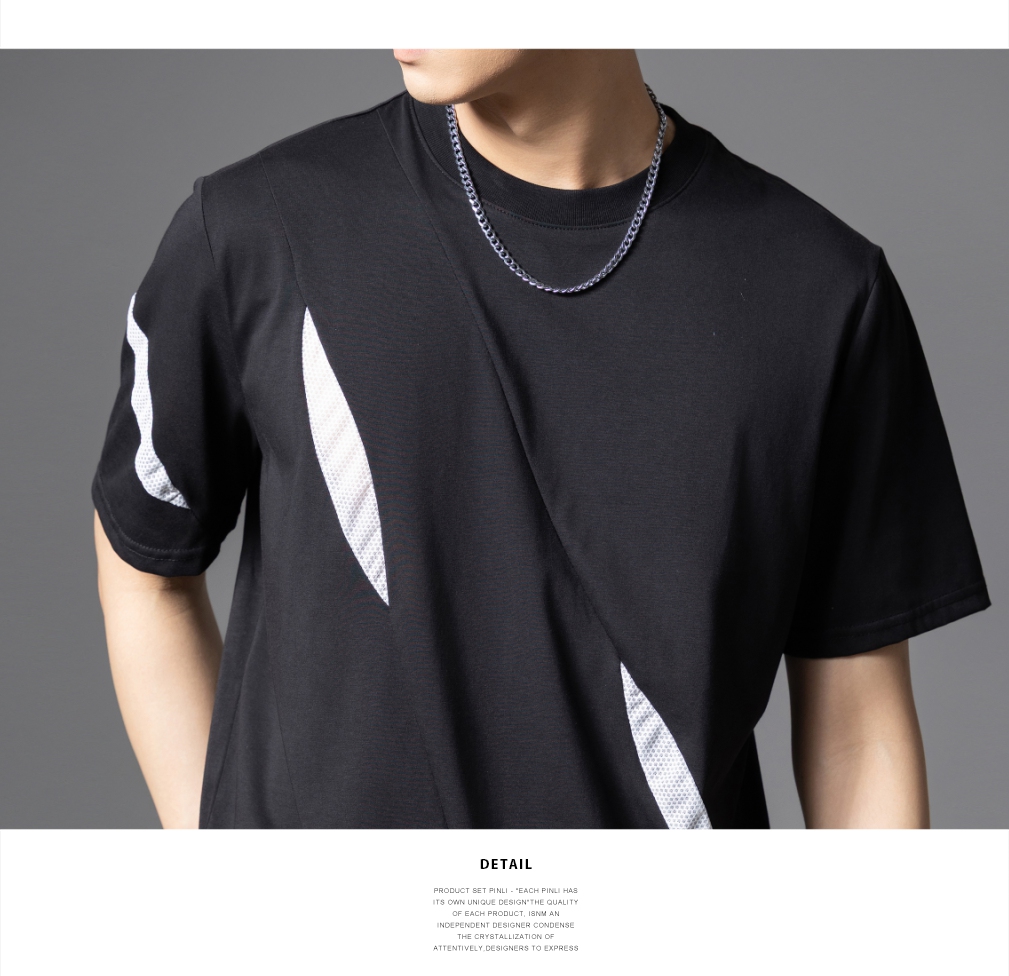 PINLI品立夏季新款潮牌撞色拼接短袖T恤简约宽松休闲男士体恤B252111071