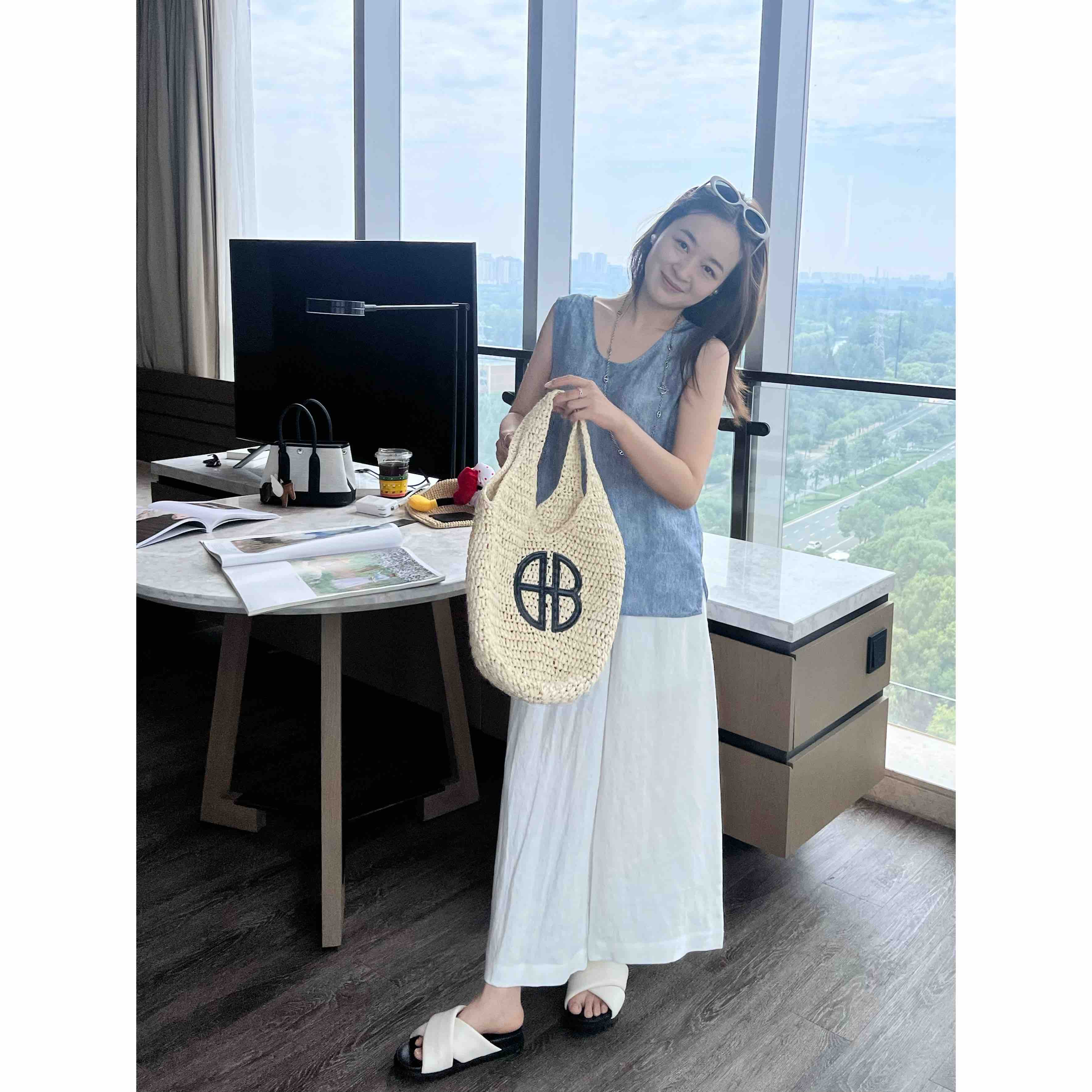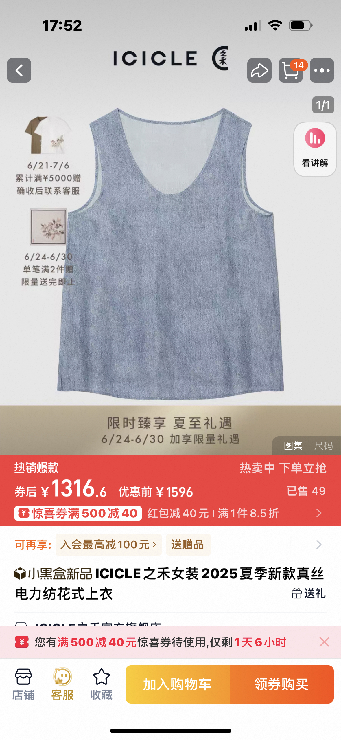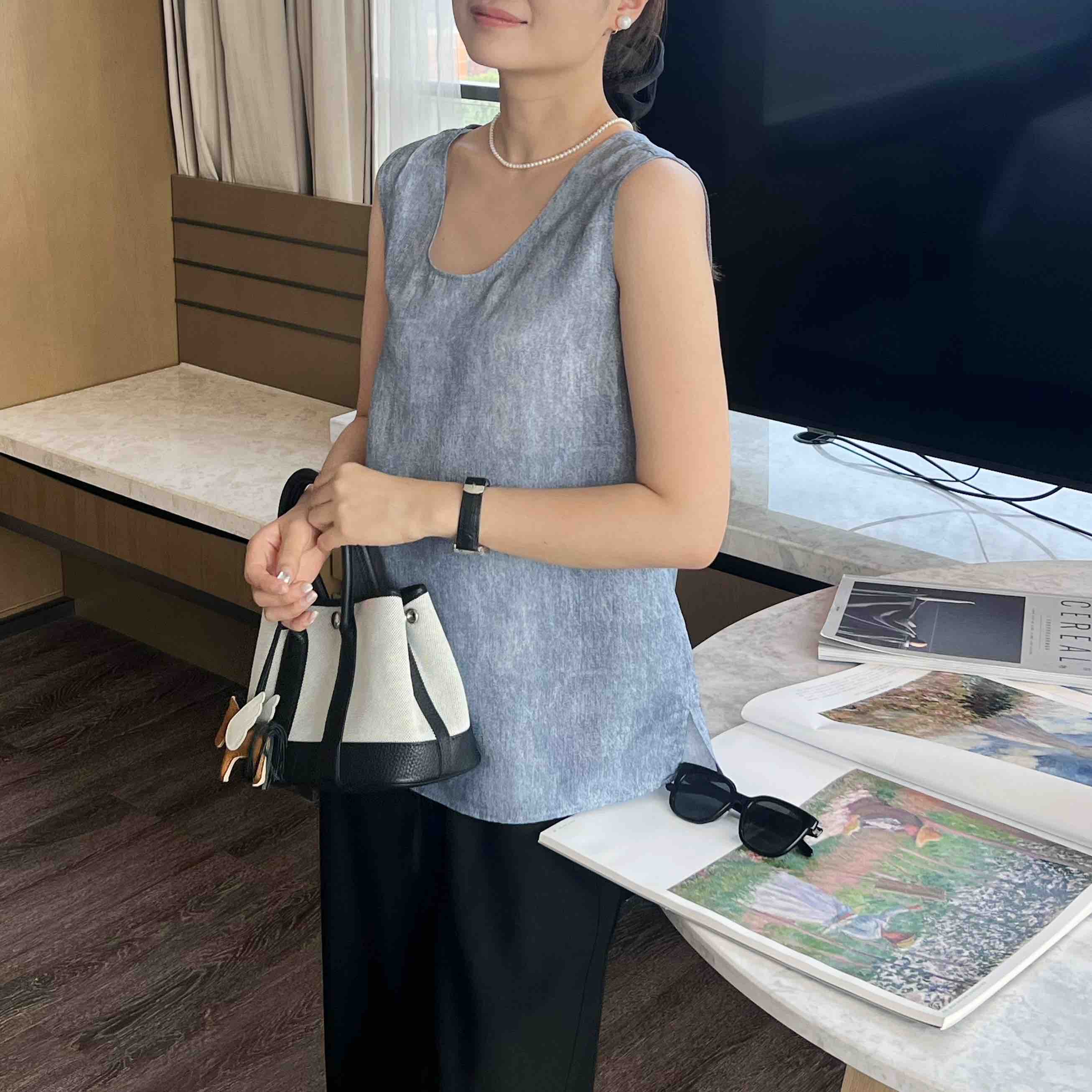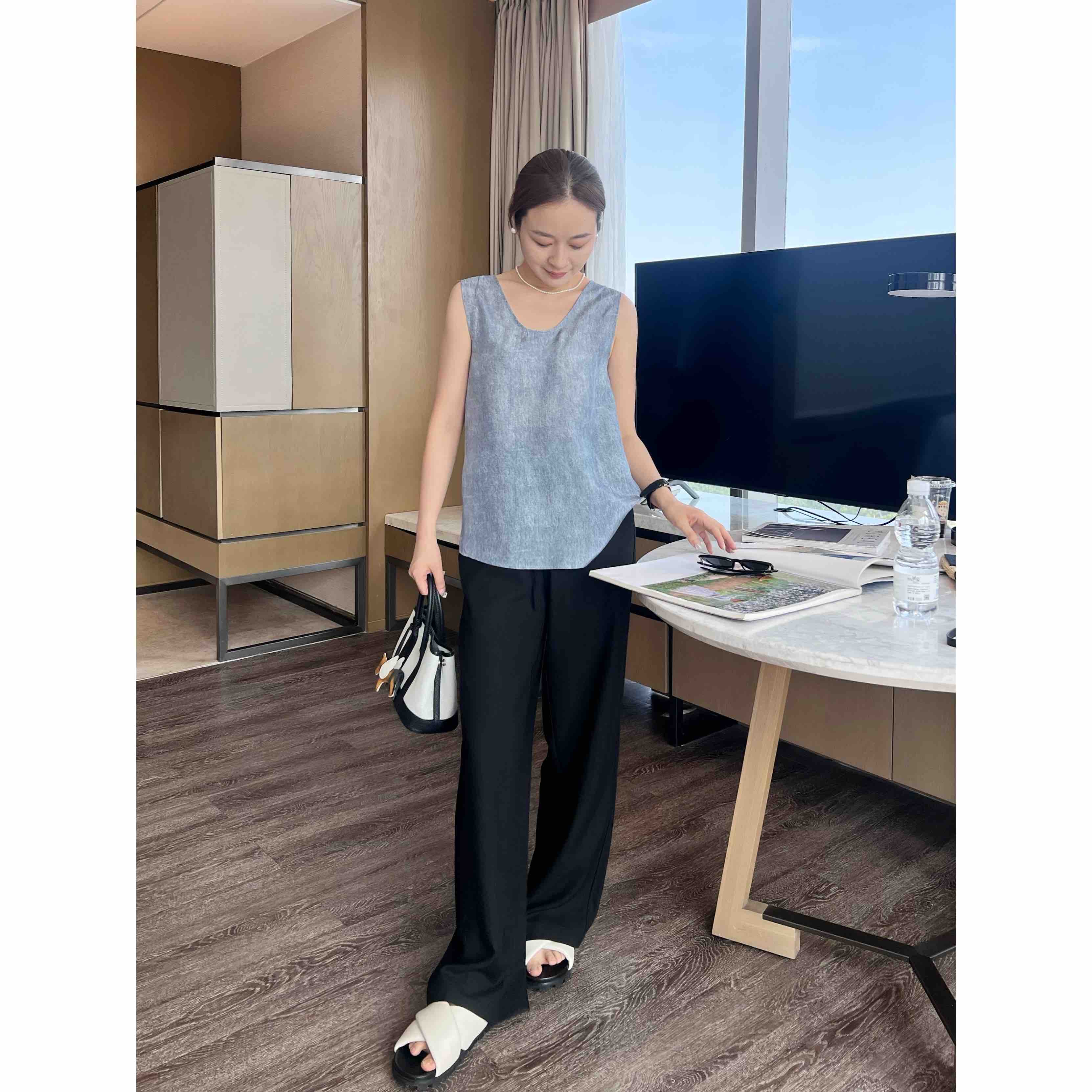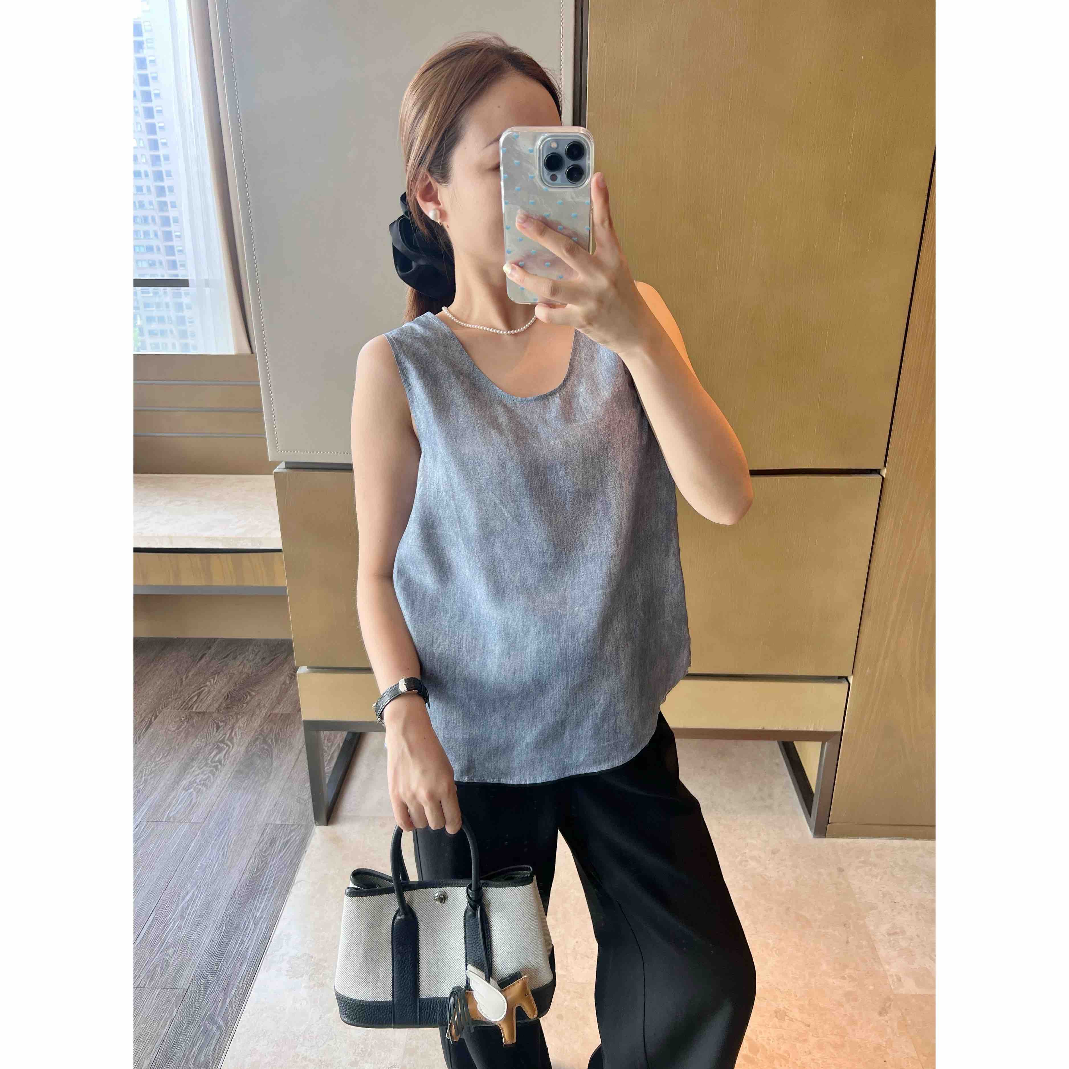 2506512 之禾 真丝背心 电力纺蓝色