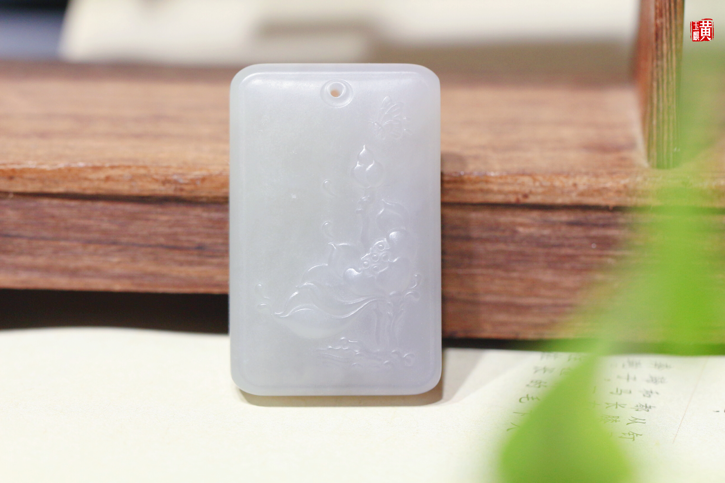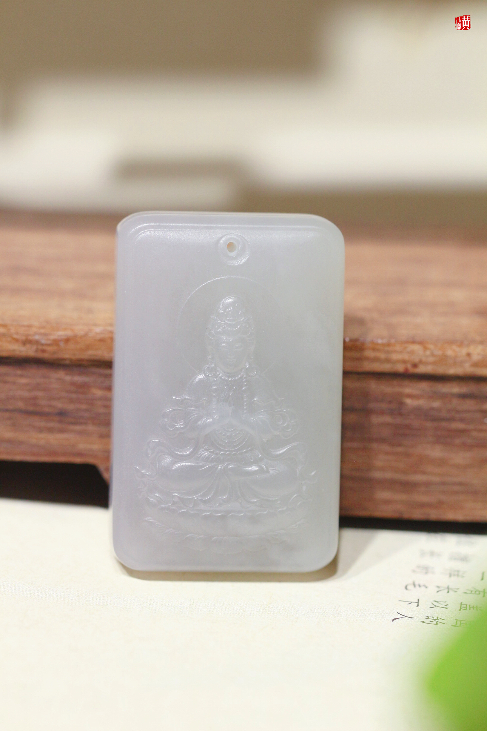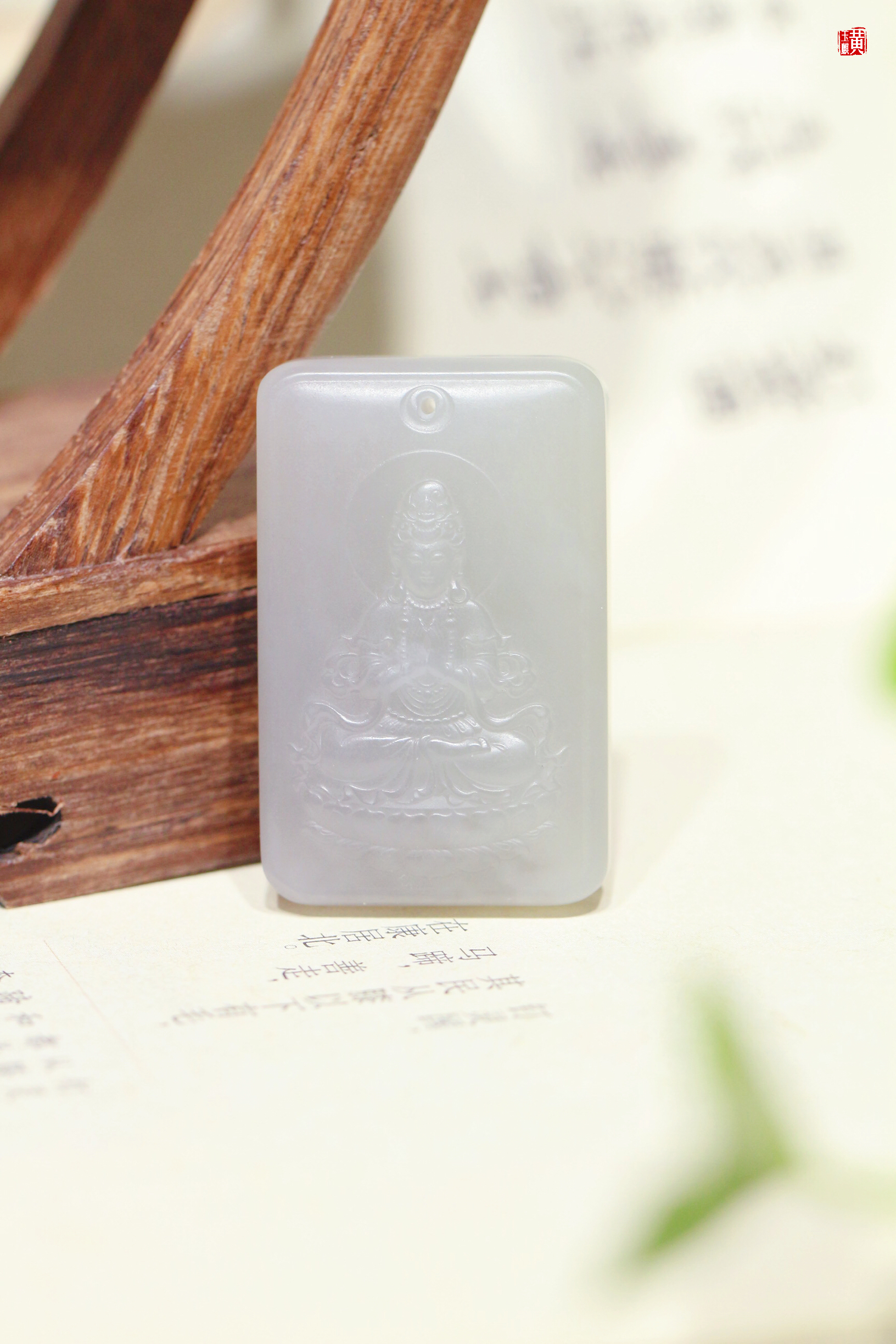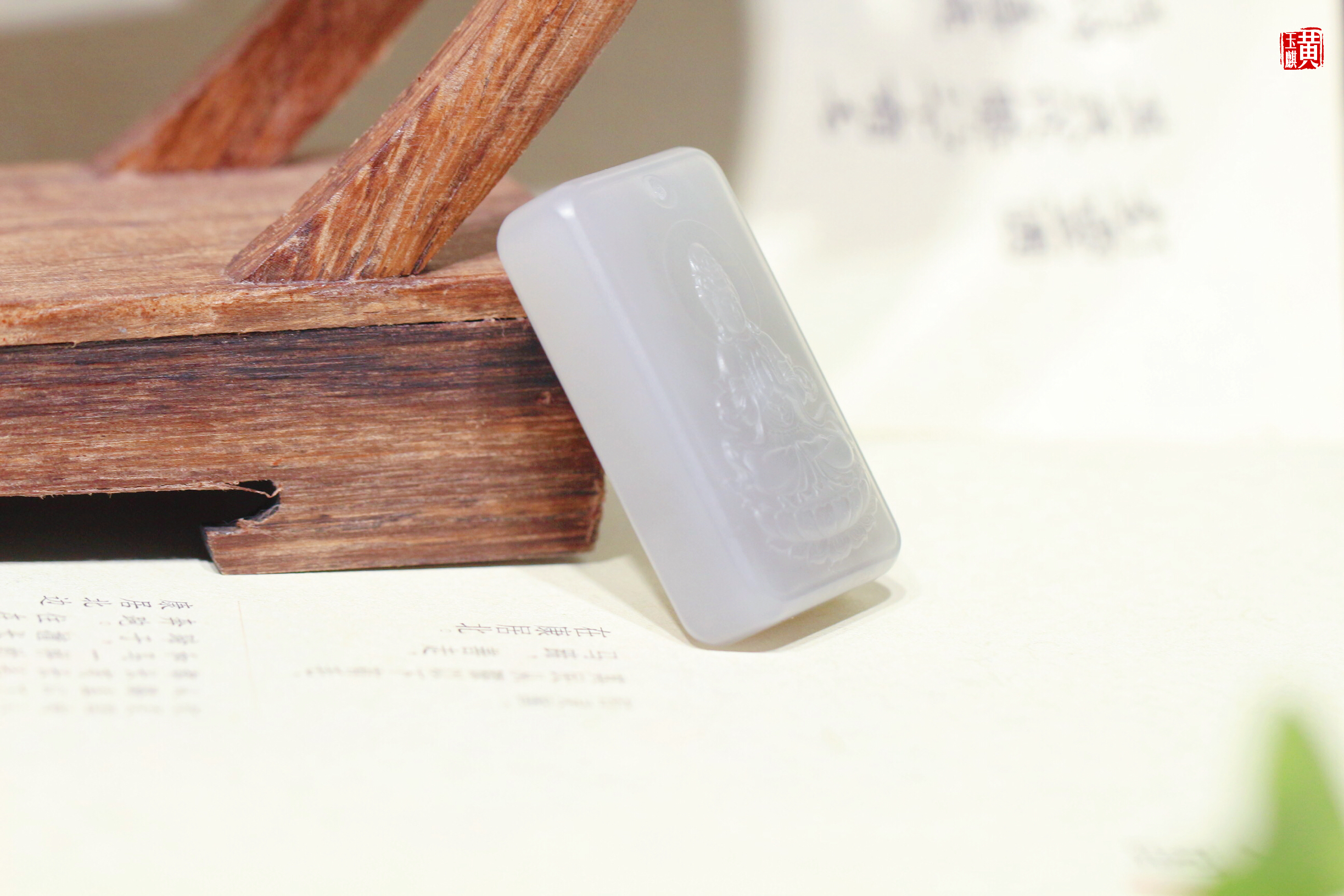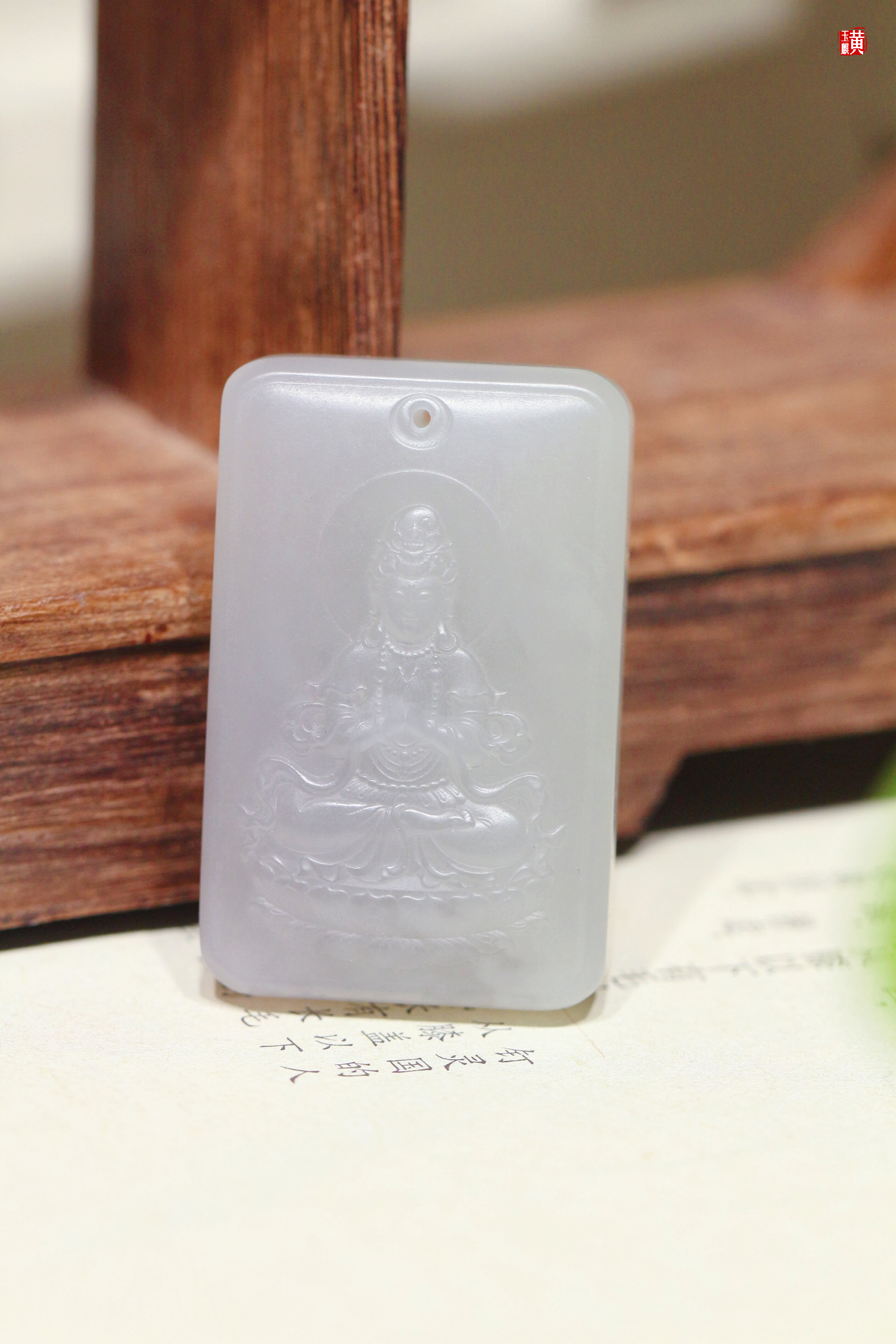 和田玉烟紫玉【观音】吊坠 配精美挂绳