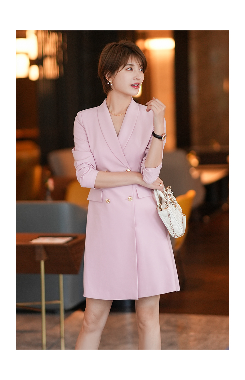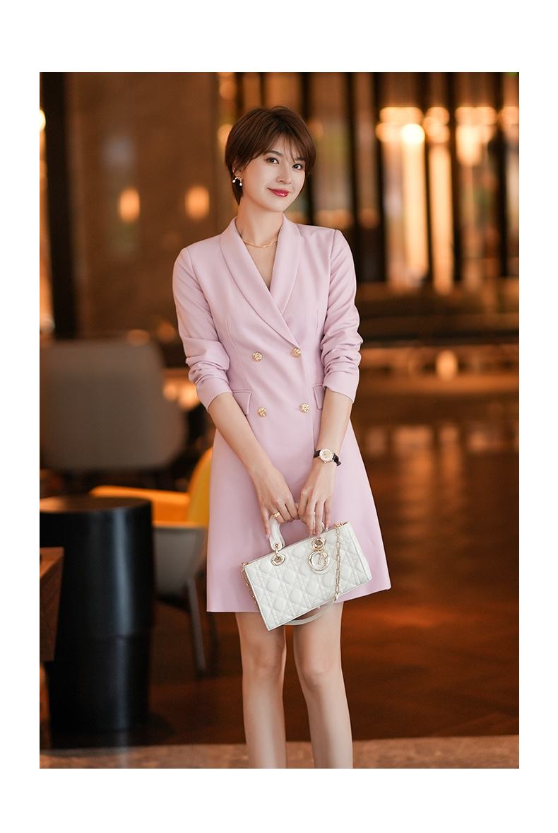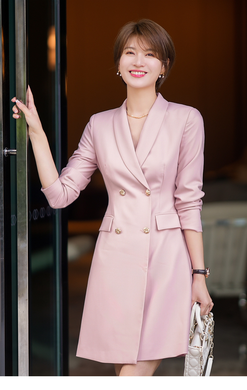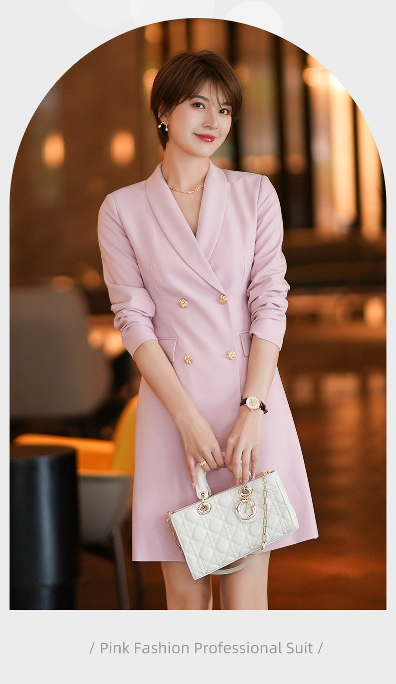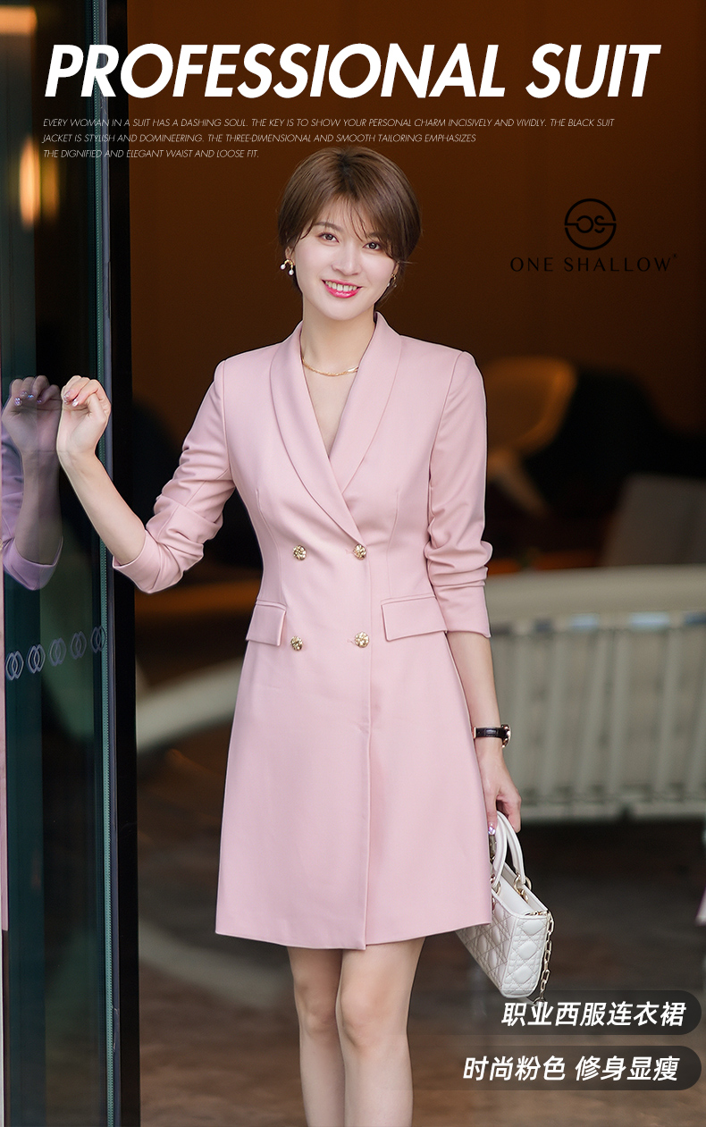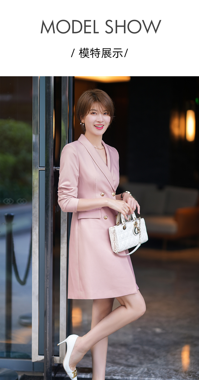粉色连衣裙长袖~新款气质通勤正式场合裙子