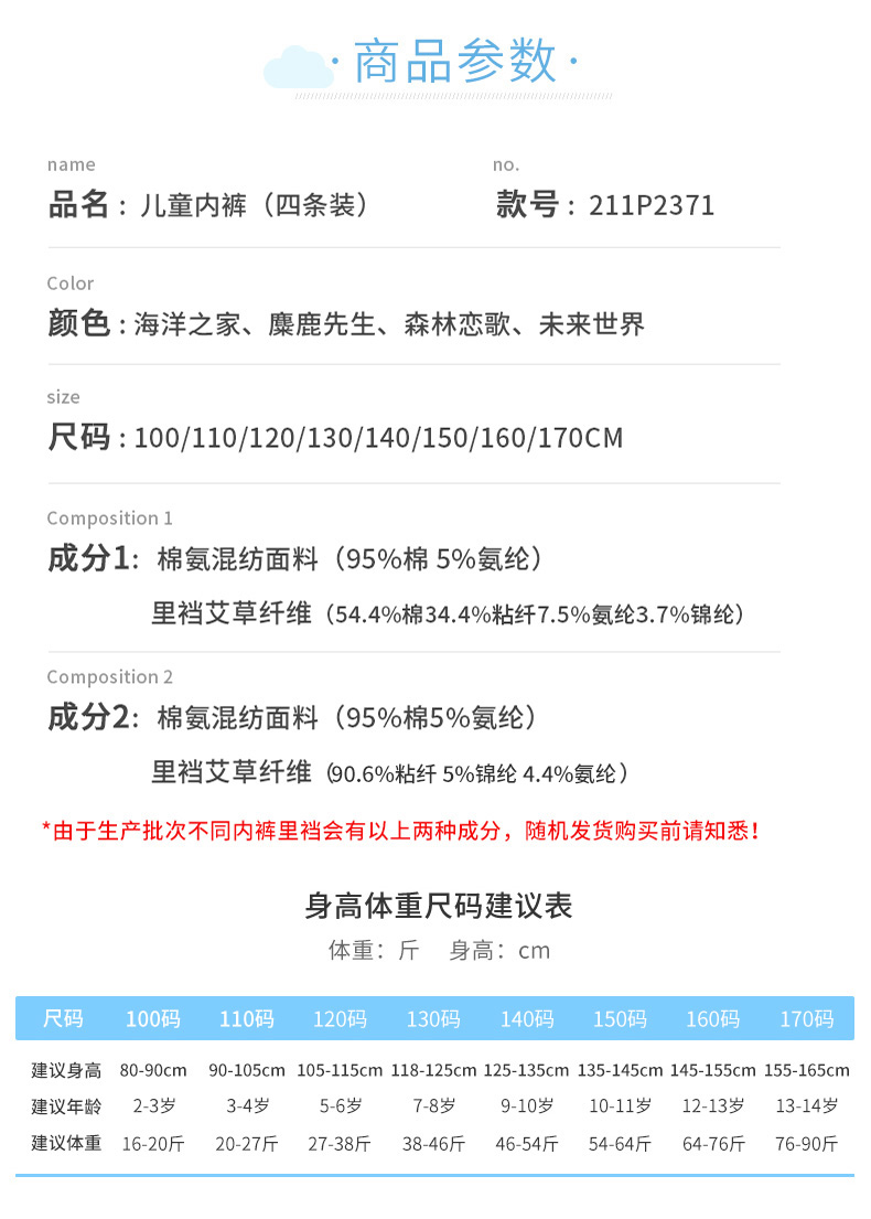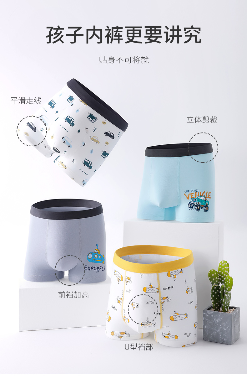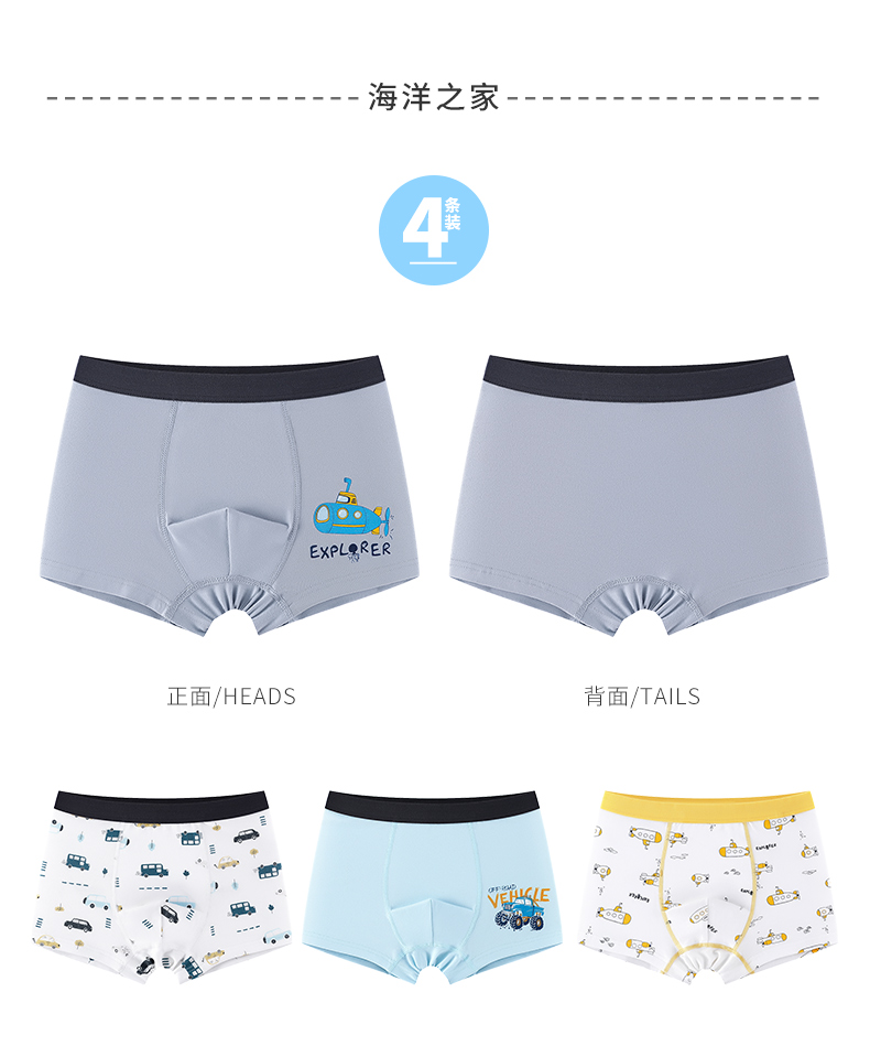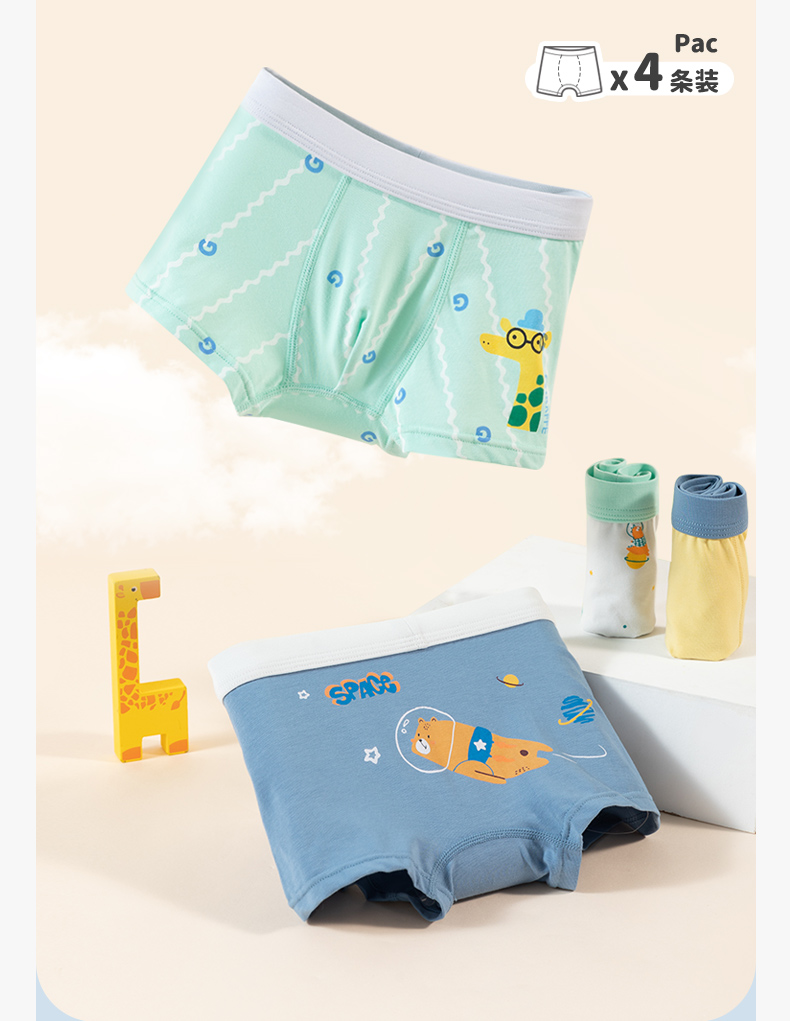 贝贝怡儿童内裤男童短裤中小童宝宝内裤平角内裤(四条装)