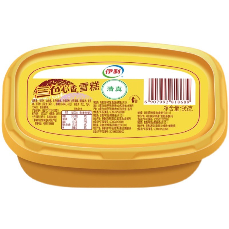 伊利三色杯心香巧克力草莓牛奶三合一怀旧冰淇淋95克/支雪糕冰糕批发