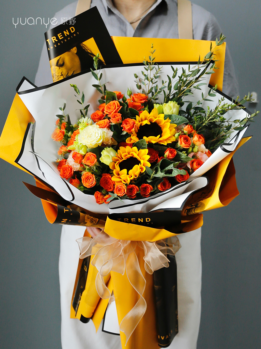 毕业高考花束【“橙”心如意】多头玫瑰向日葵花束
