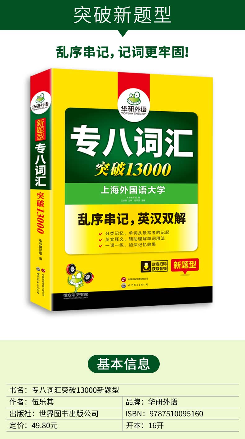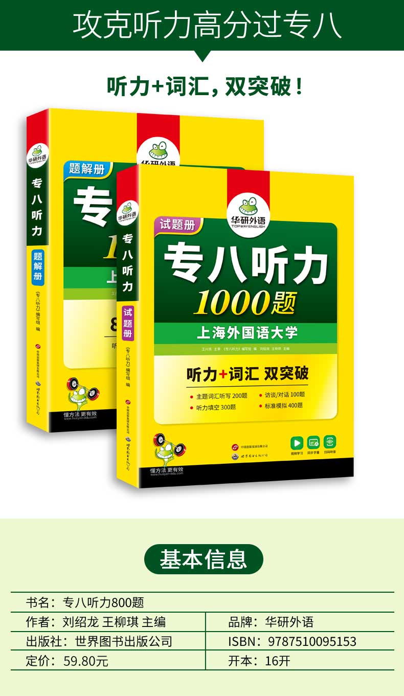 2. 根据专八新题型改革大纲编写,上海外国语大学名师审订,适用于专八听力新题型;