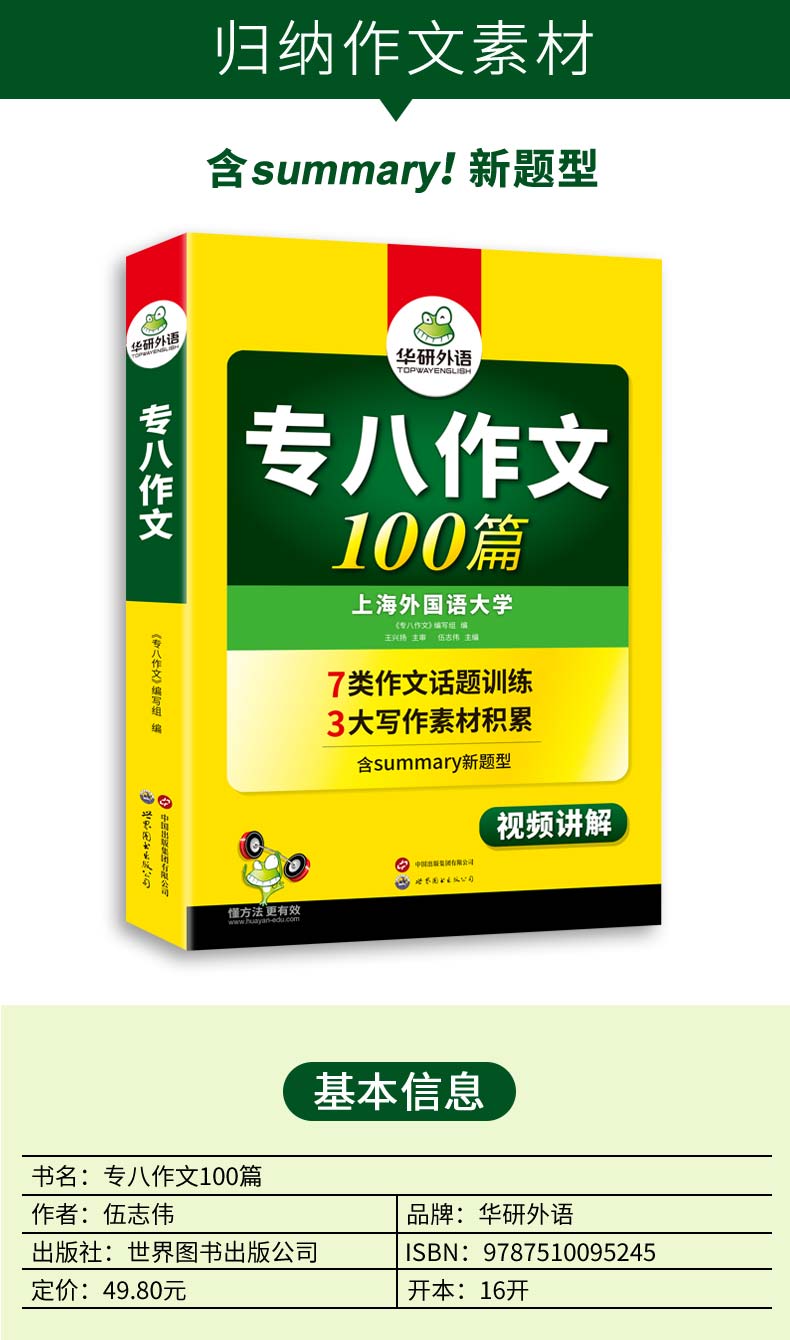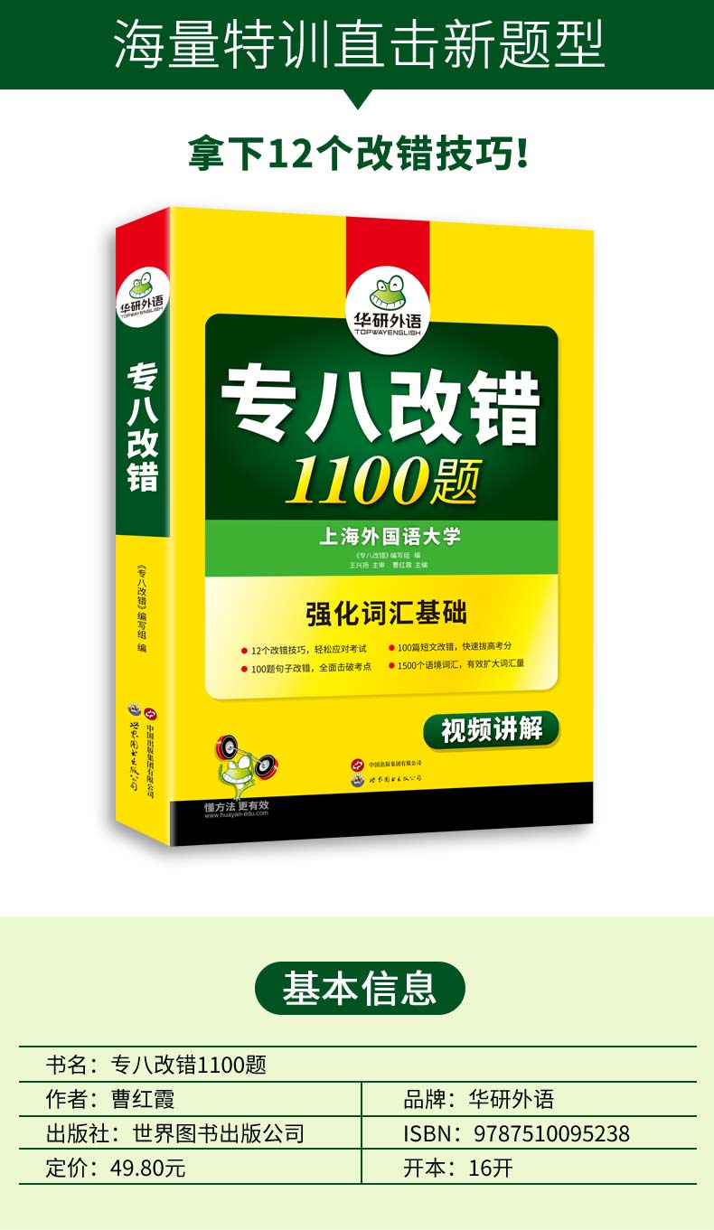 4. 100篇标准专八改错训练,选材与真题同源,题材多,考点丰富;
