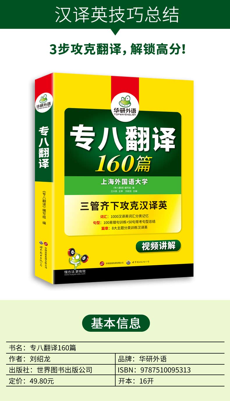 2.专八翻译160篇汉译英训练:20篇句句分析+50篇分类特训+90篇强化;