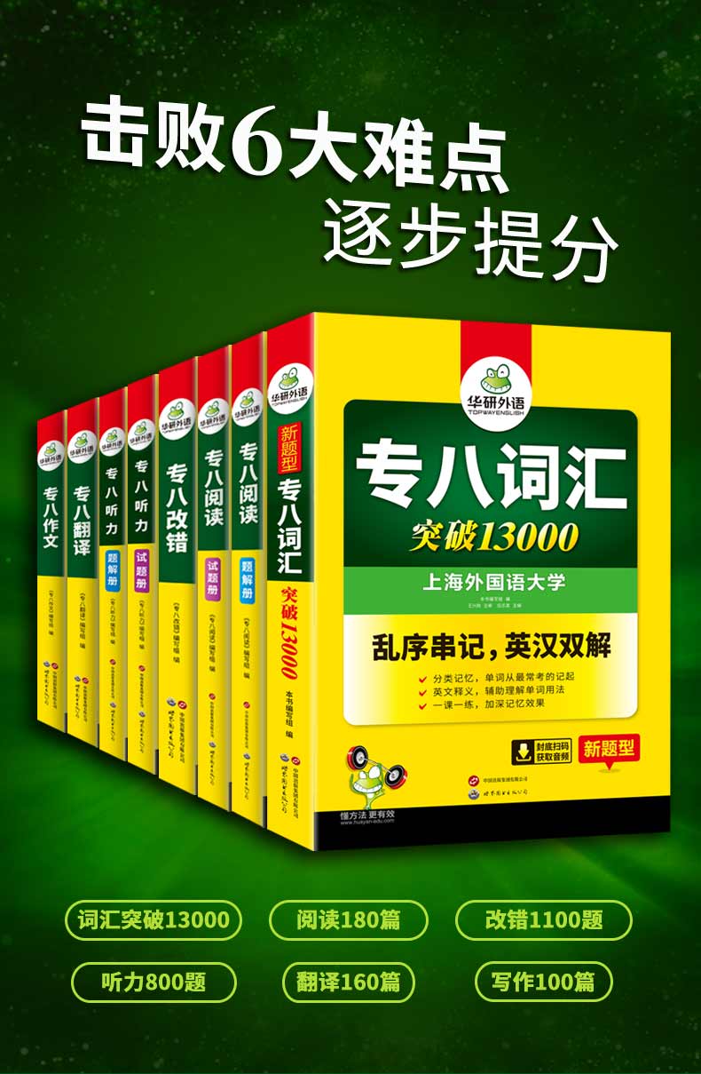 6.专八阅读题材分类训练+套题训练,熟悉各类阅读题材,系统备考。