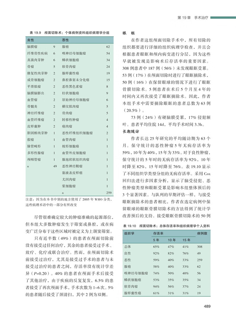 本书每一个独立的章节都是关于某种病理类型疾病最新信息的重要宝库,包括上皮性表皮样肿瘤、上皮性非表皮样肿瘤、间叶组织肿瘤、血管样肿瘤、软骨源性肿瘤、牙源性肿瘤、骨源性肿瘤、神经外胚层病变、生殖细胞肿瘤等。每个章节的格式都非常清晰:追溯了疾病的起源;列举了肿瘤或炎症发现过程中其他常见的命名;讨论了肿瘤的发病原因和病理生理;回顾了诊断过程,特别是影像学检查;之后是治疗、并发症和结局;最后引用了世界文献库中有关生存率的报道。关于并发症和生存率,作者们也从自己及其他人大量的经验中为本书贡献良多。