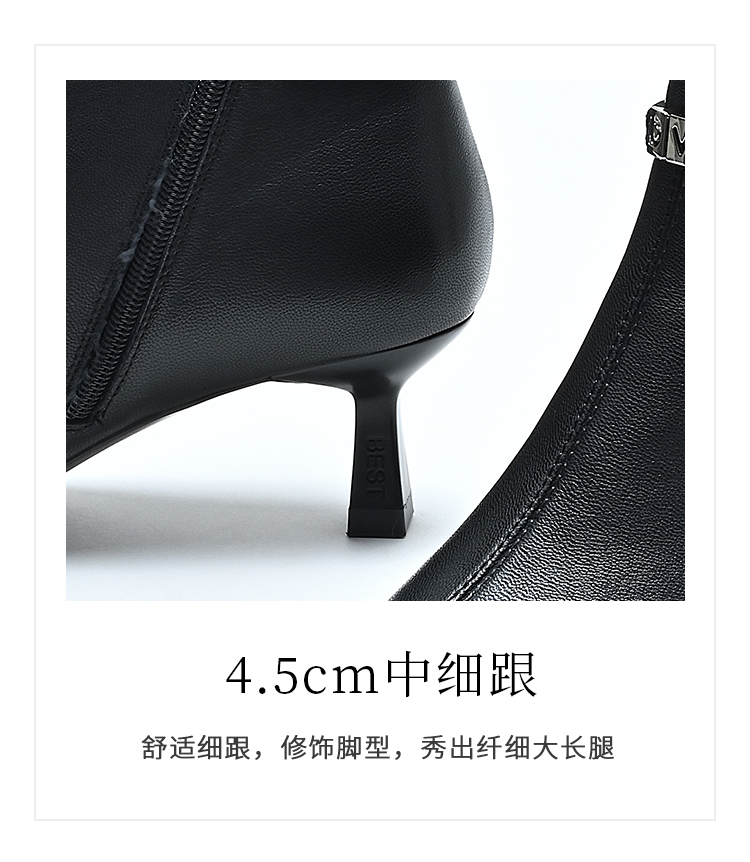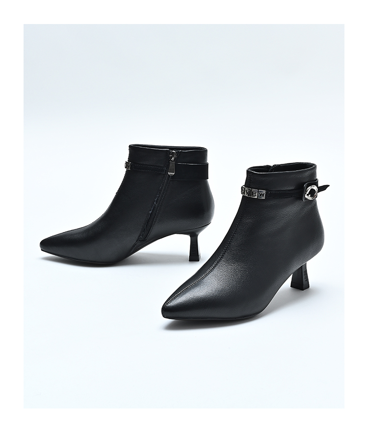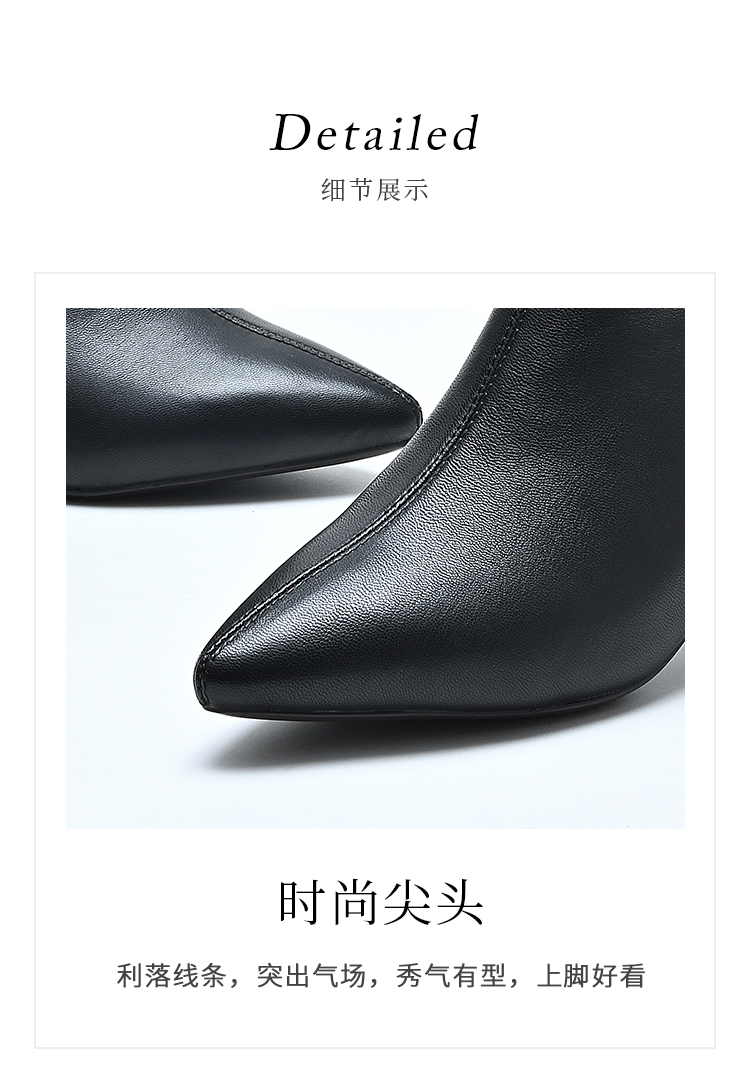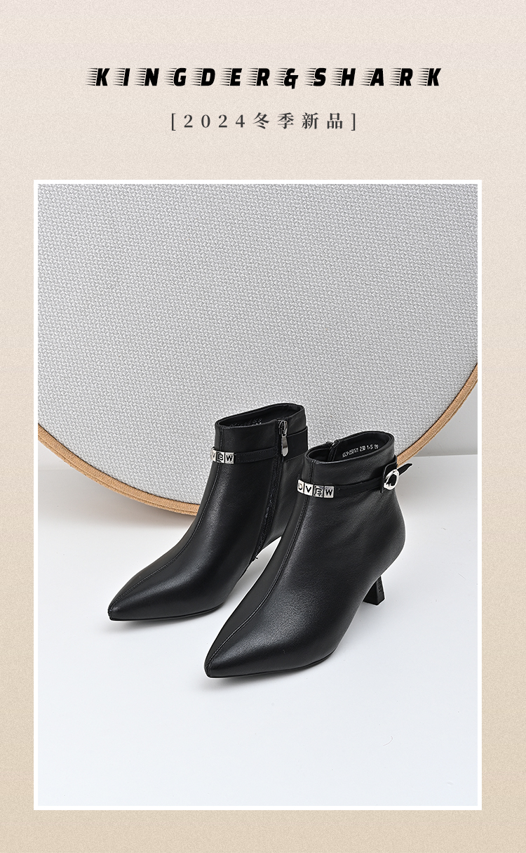 经典鲨2024冬季款优雅尖头加绒保暖侧拉链气质细跟时装靴女KD29-D58101