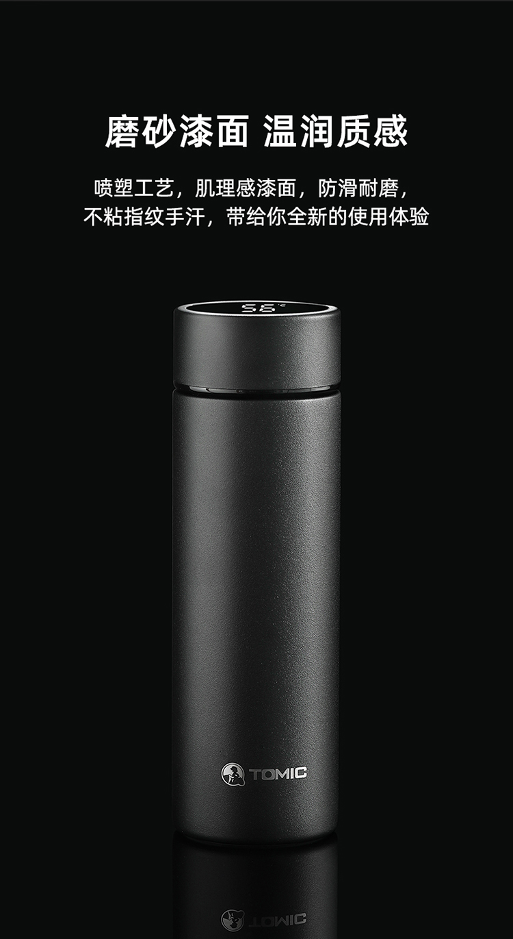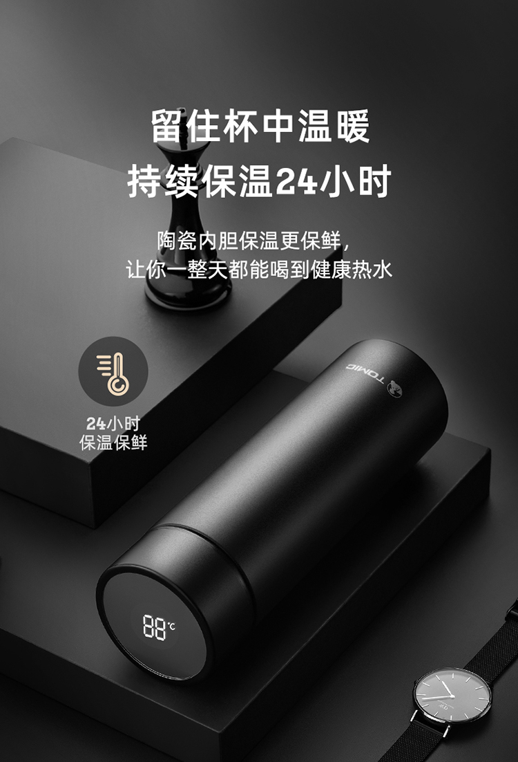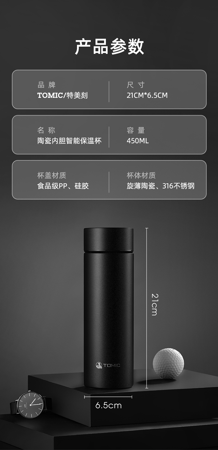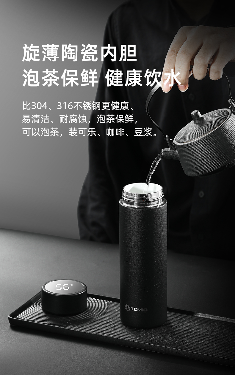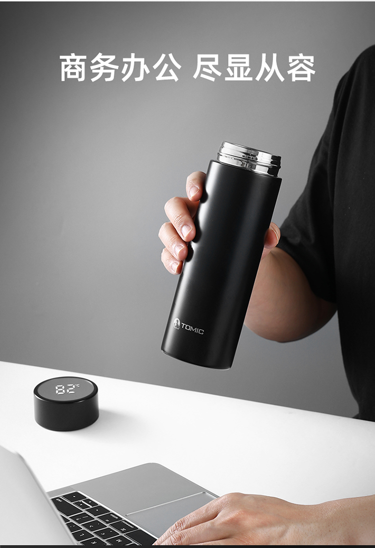 特美刻(TOMIC)智能保温杯男士高档商务水杯大容量陶瓷内胆茶杯子 TW00041 黑色 450ML