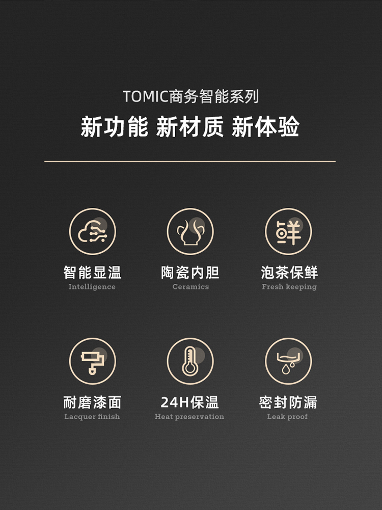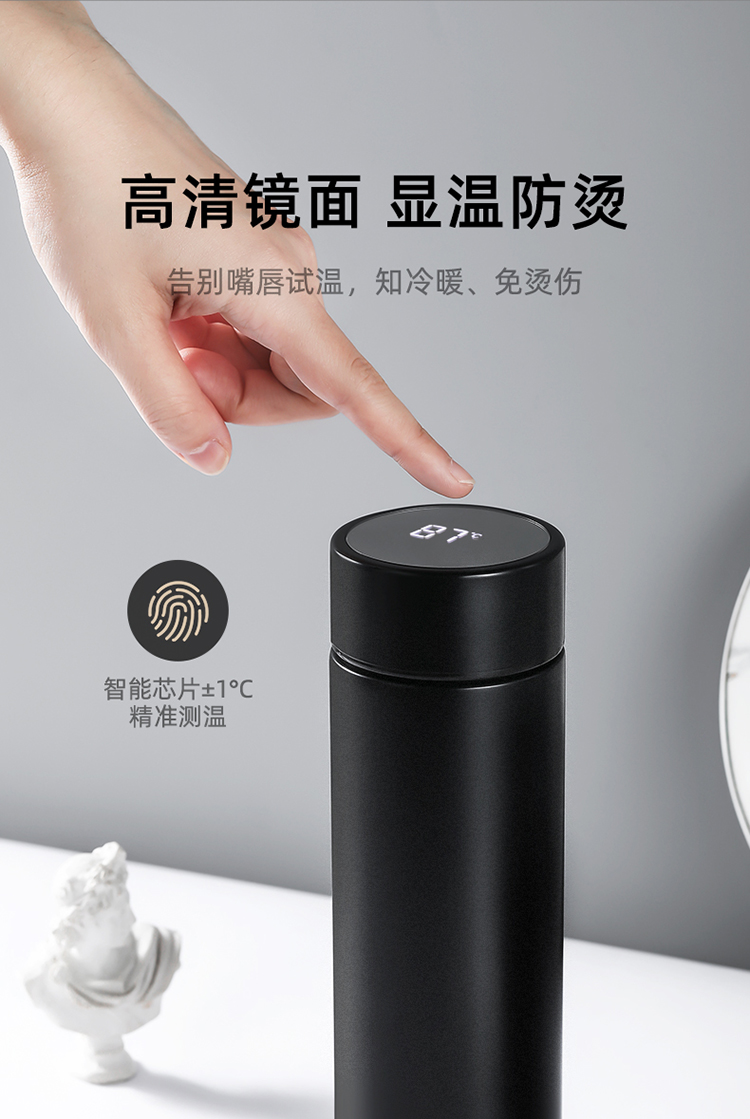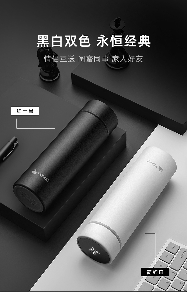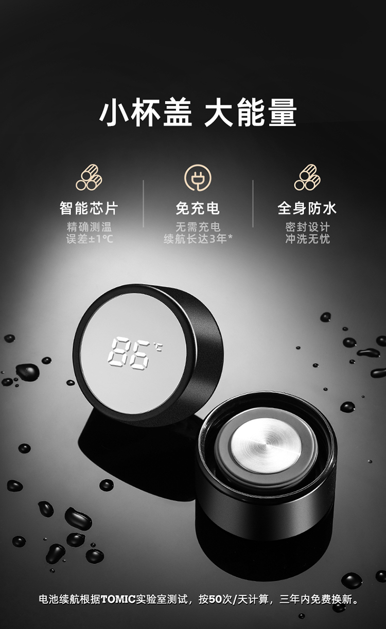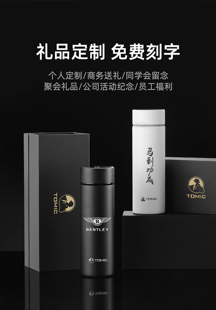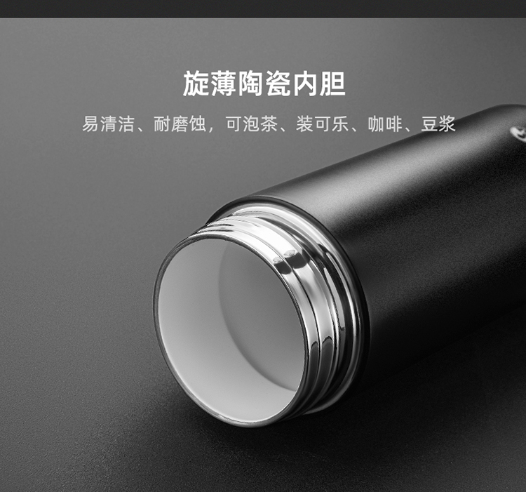 特美刻(TOMIC)智能保温杯男士高档商务水杯大容量陶瓷内胆茶杯子 TW00041 黑色 450ML
