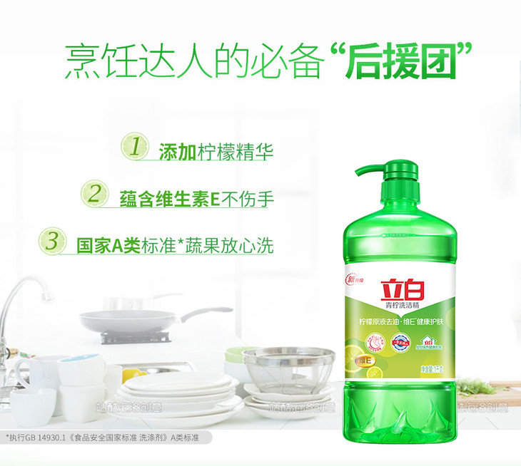 立白洗洁精 青柠洗洁精1KG*瓶 柠檬原液 维E护肤 去油食品用
