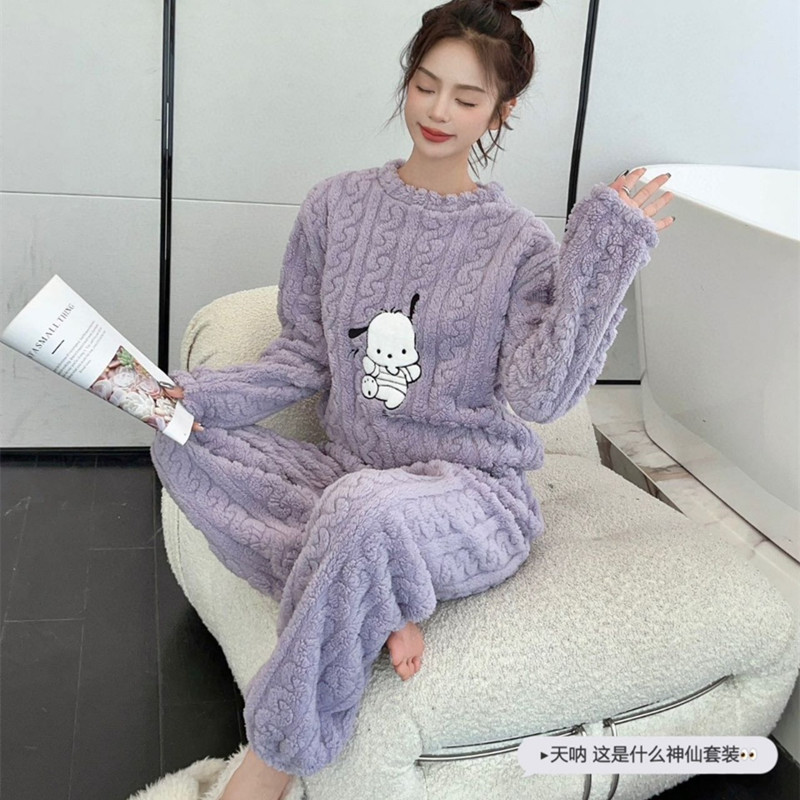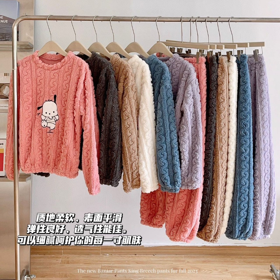 【加绒纯棉保暖!哈帕狗保暖加厚两件套】秋冬款哈帕狗纯色提花舒棉绒暖暖套装睡衣家居服女保暖加厚两件套