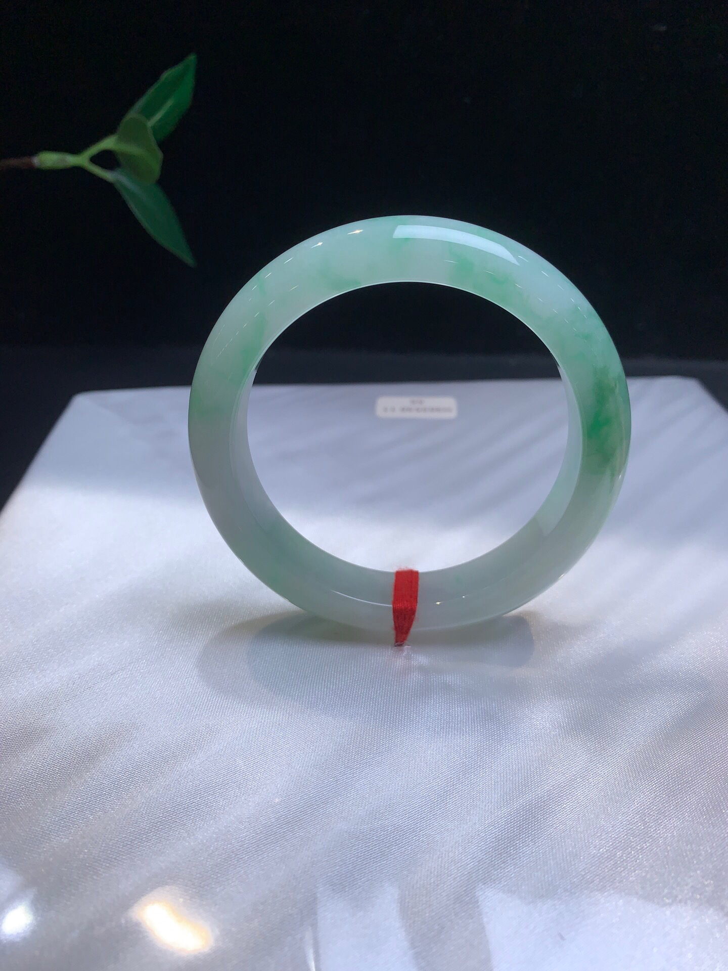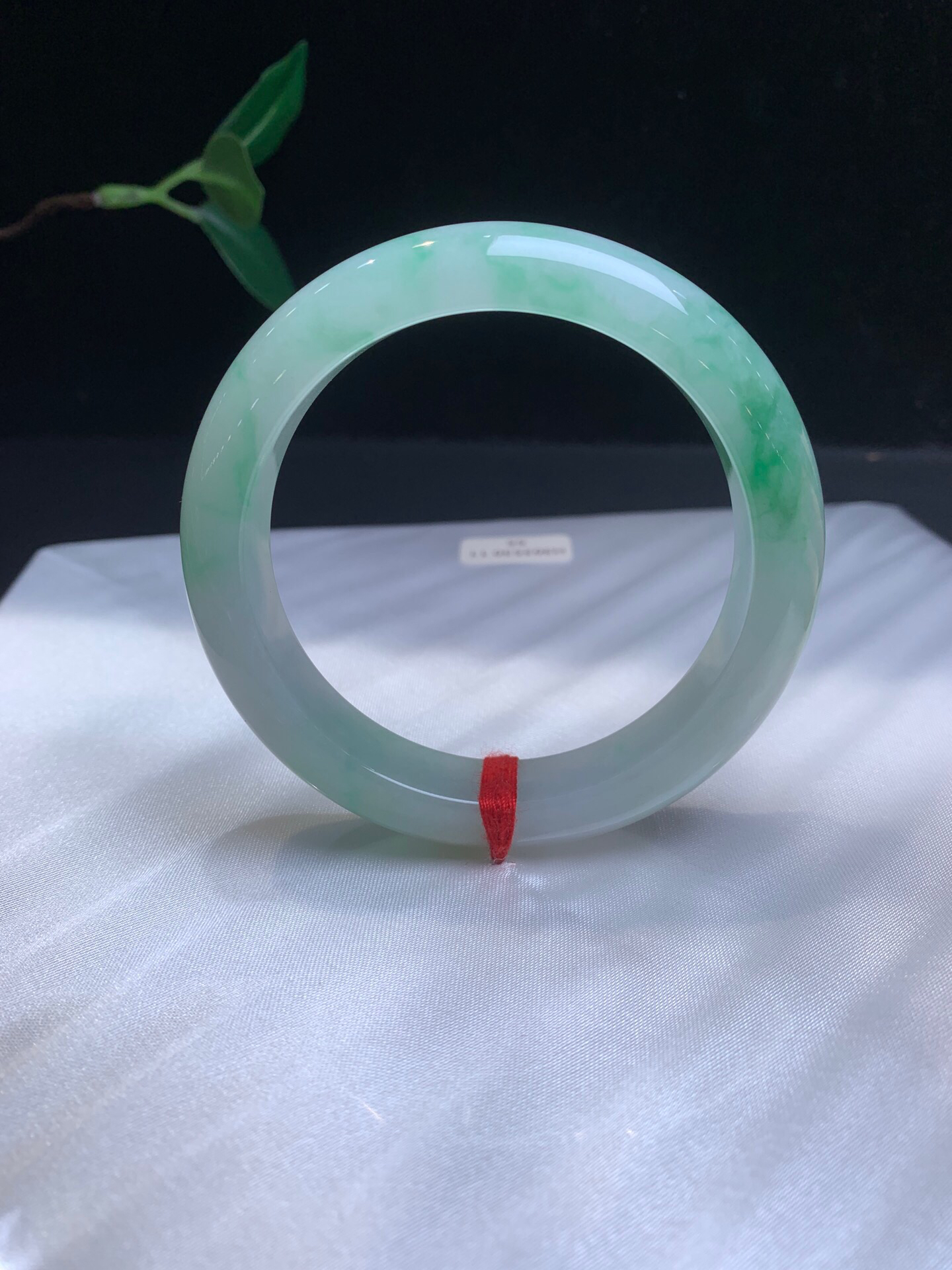 620271,55飘绿手镯,整体飘清新绿花,清爽秀气,局部有点黄翡