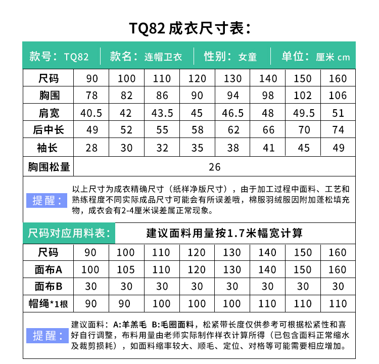 裁缝学苑TQ82 女童卫衣纸样羊羔毛外套上衣新款童装服装衣服样板