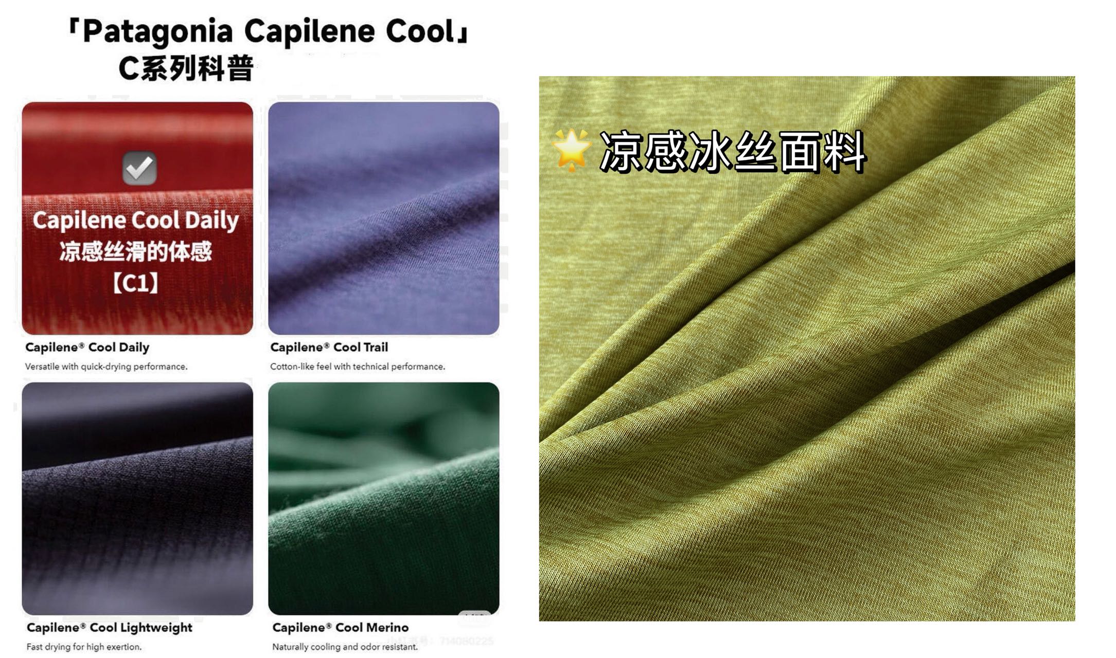C1凉感冰丝面料:再生聚酯纤维+吸湿速干技术,高温高湿环境下都能保持干爽。HeiQ® Mint抑味科技加持,汗渍无异味,贴身柔软不黏腻,弹性支撑一触即知;