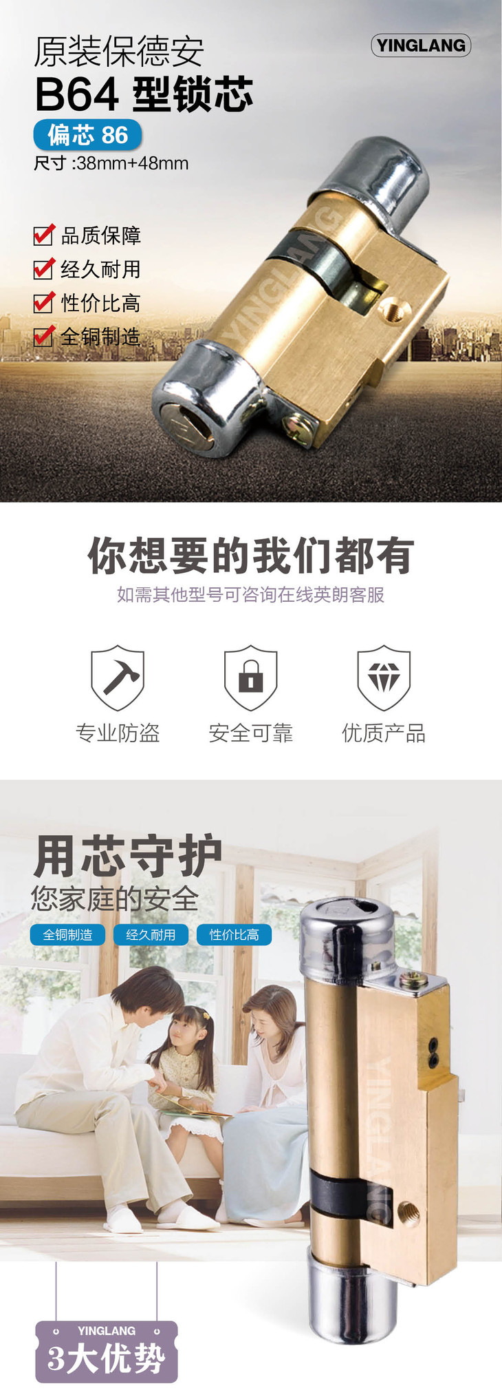 〖B121〗适用保德安锁芯B64型38+48=86偏